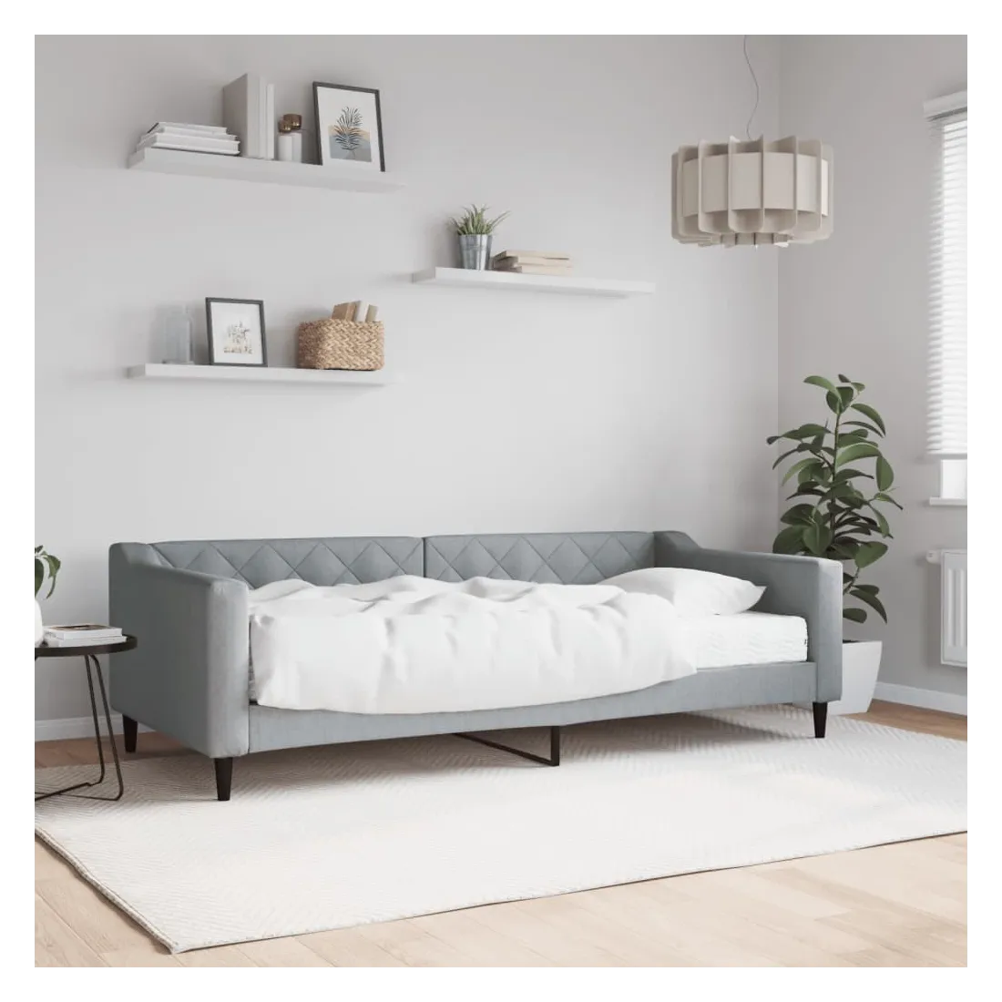 Ce lit de repos 2 en 1 avec matelas, servant à la fois de canapé et de lit, constitue un supplément pratique et accrocheur à votre salon ou votre chambre à coucher. Lit de jour polyvalent : le canapé-lit peut être utilisé comme canapé pendant la journée, ou comme lit pendant la nuit pour offrir une solution rapide pour accueillir des invités pour la nuit.Matelas en mousse confortable : ce lit est fourni avec un matelas en mousse pour un soutien maximal et un confort optimal.Tissu durable et construction solide : ce canapé-lit a une structure robuste en bois et en métal et est recouvert d'un tissu durable et confortable.Design moderne : le canapé-lit a un design moderne qui présente des lignes épurées, un aspect minimaliste, et ajoutera un style moderne à votre intérieur !