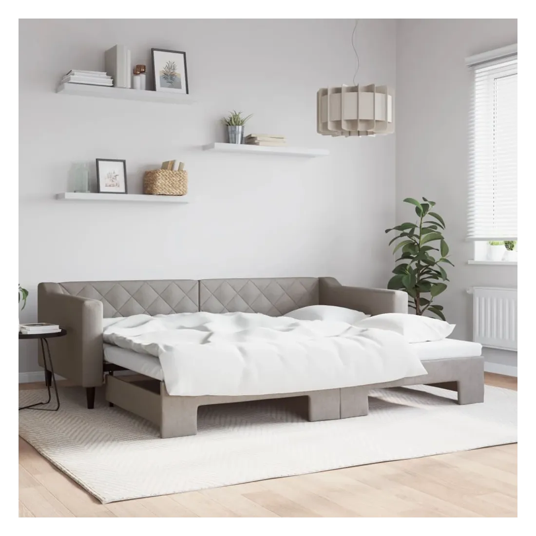 Ce lit de repos 2 en 1 avec lit gigogne, servant à la fois de canapé et de lit, constitue un supplément pratique et accrocheur à votre salon ou chambre à coucher. Lit de repos polyvalent : le canapé-lit fonctionne comme un canapé pendant la journée et se transforme facilement en lit double la nuit en retirant le lit gigogne, offrant une solution pratique pour accueillir des invités et maximiser l'espace.Tissu durable et construction solide : ce canapé-lit a une structure robuste en bois et en métal et est recouvert d'un tissu durable et confortable.Design moderne : le canapé-lit a un design moderne qui présente des lignes épurées, un aspect minimaliste, et ajoutera un style moderne à votre intérieur ! Bon à savoir :Les matelas ne sont pas inclus avec ce lit. Nous proposons une sélection variée de matelas. Vous pouvez consulter notre boutique pour trouver les matelas assortis.