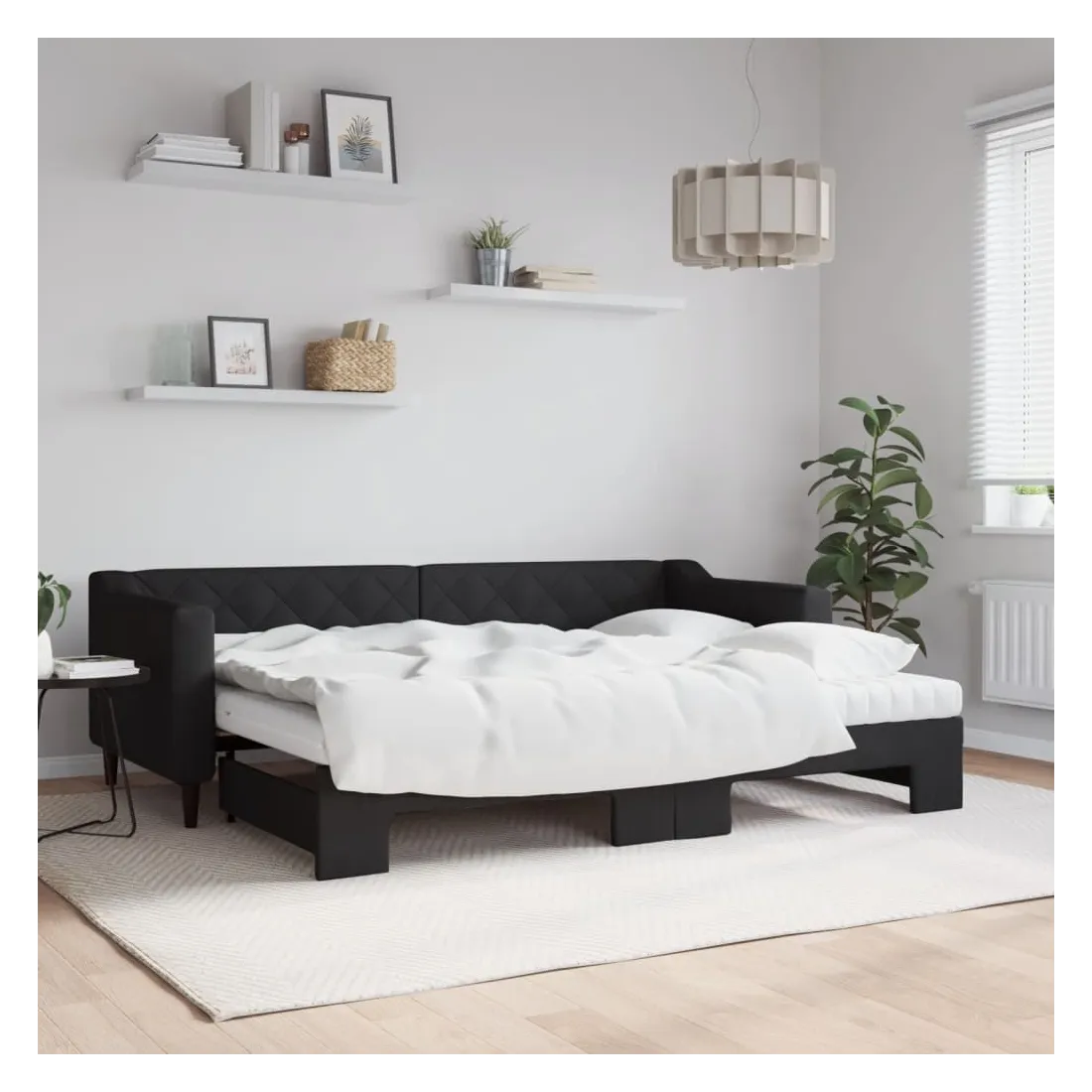 Ce lit de repos 2 en 1 avec lit gigogne, servant à la fois de canapé et de lit, constitue un supplément pratique et accrocheur à votre salon ou chambre à coucher. Lit de repos polyvalent : le canapé-lit fonctionne comme un canapé pendant la journée et se transforme facilement en lit double la nuit en retirant le lit gigogne, offrant une solution pratique pour accueillir des invités et maximiser l'espace.Matelas en mousse confortable : ce lit est fourni avec deux matelas en mousse pour un soutien maximal et un confort optimal.Tissu durable et construction solide : ce canapé-lit a une structure robuste en bois et en métal et est recouvert d'un tissu durable et confortable.Design moderne : le canapé-lit a un design moderne qui présente des lignes épurées, un aspect minimaliste, et ajoutera un style moderne à votre intérieur !