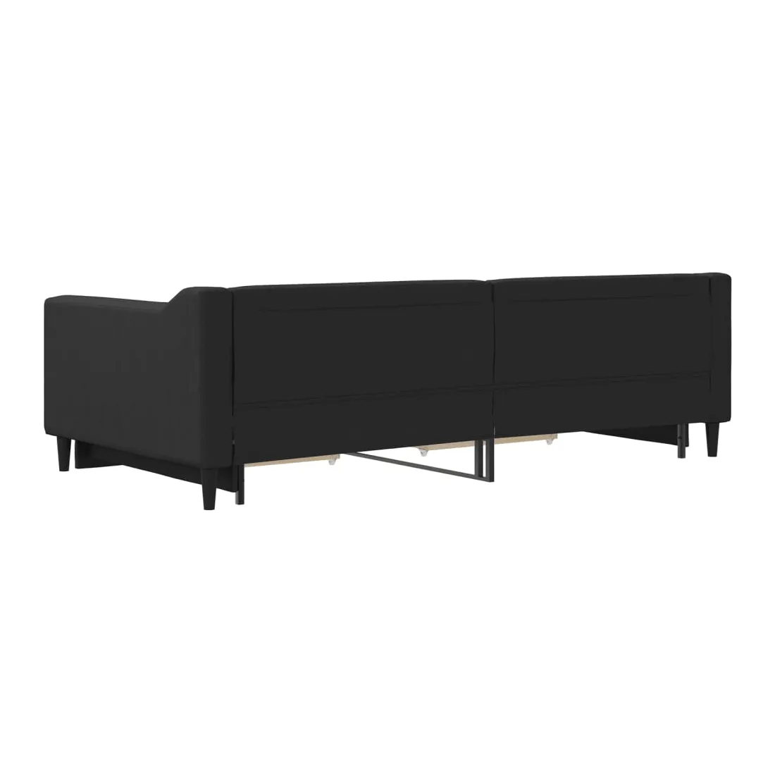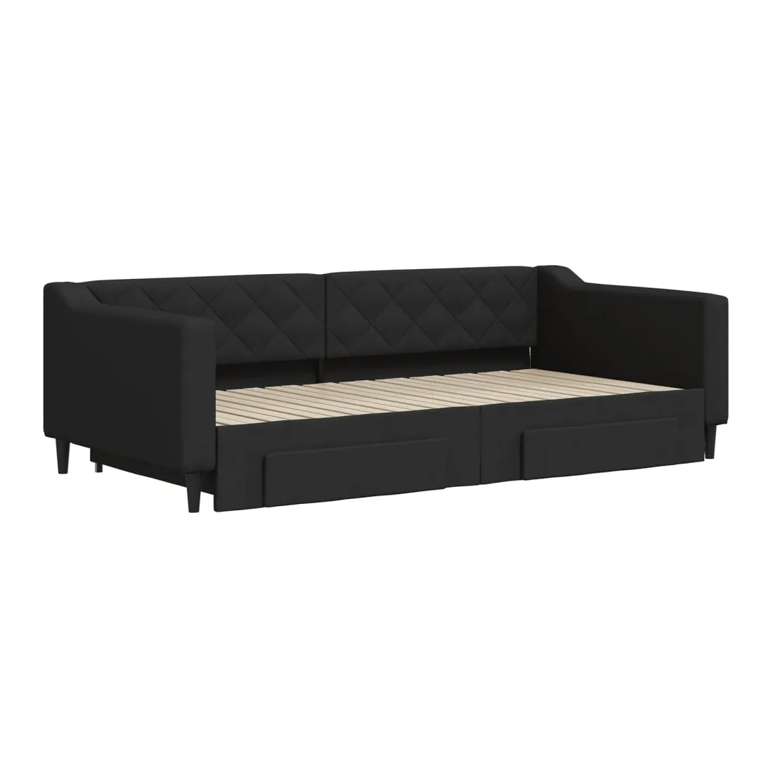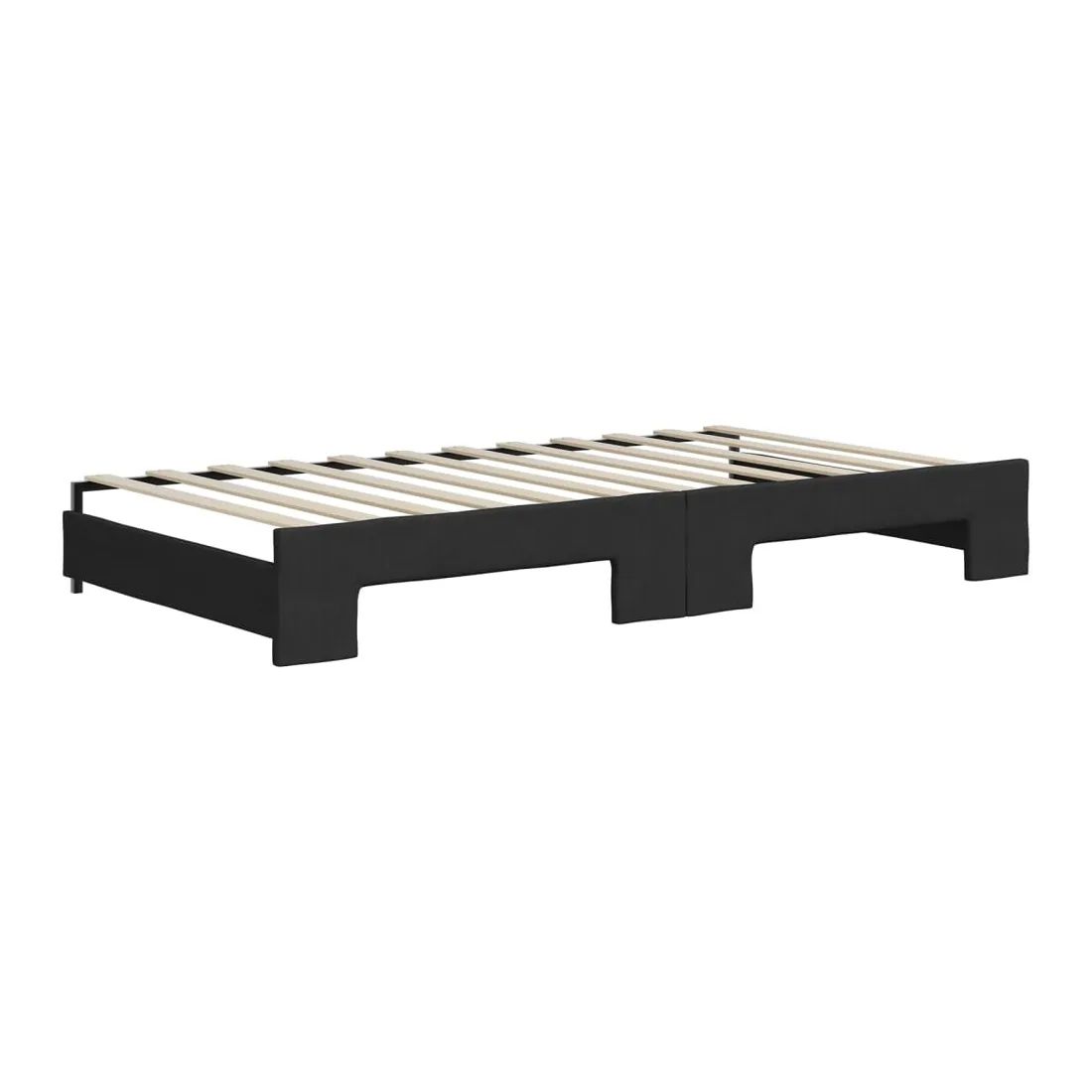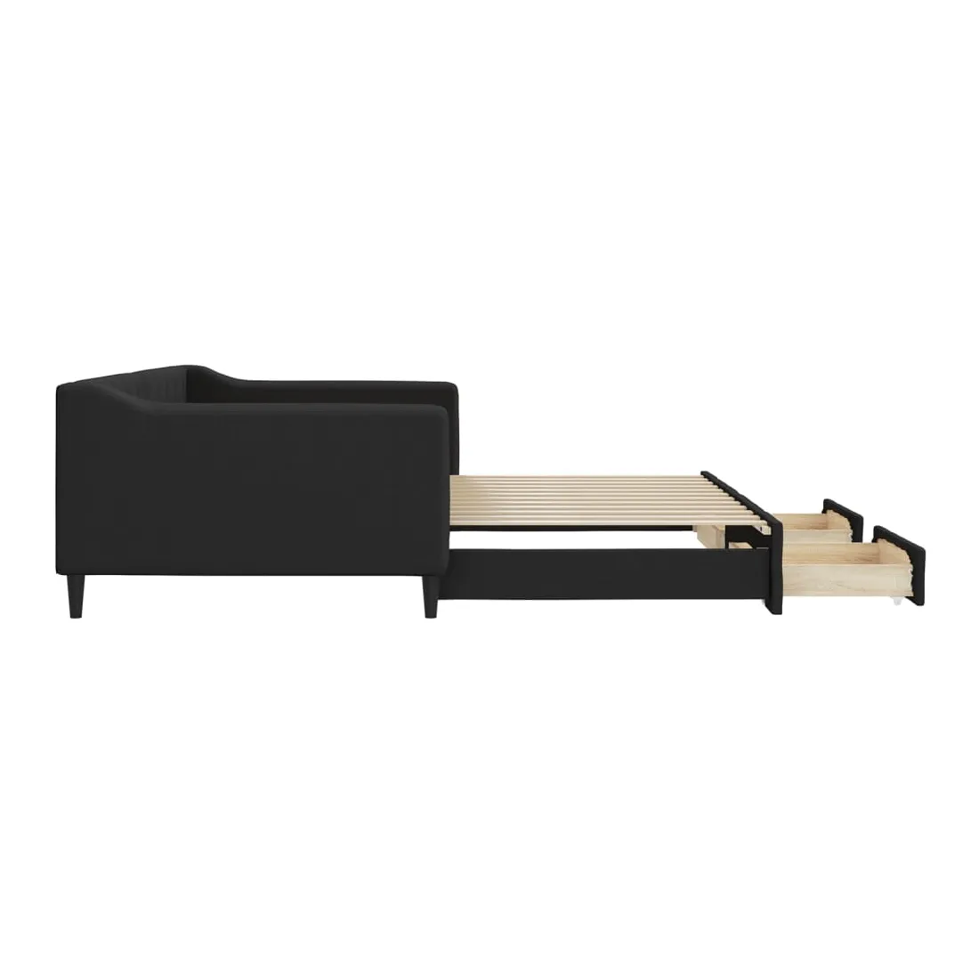 Ce lit de repos 2 en 1 avec lit gigogne, servant à la fois de canapé et de lit, constitue un supplément pratique et accrocheur à votre salon ou chambre à coucher. Lit de repos polyvalent : le canapé-lit fonctionne comme un canapé pendant la journée et se transforme facilement en lit double la nuit en retirant le lit gigogne, offrant une solution pratique pour accueillir des invités et maximiser l'espace. Grand espace de rangement : ce lit d'appoint dispose de deux tiroirs à roulettes qui offrent suffisamment d'espace pour ranger vos vêtements, chaussettes, jouets, coussins, etc. Tissu durable et construction solide : ce canapé-lit a une structure robuste en bois et en métal et est recouvert d'un tissu durable et confortable.Design moderne : le canapé-lit a un design moderne qui présente des lignes épurées, un aspect minimaliste, et ajoutera un style moderne à votre intérieur ! Bon à savoir :Les matelas ne sont pas inclus avec ce lit. Nous proposons une sélection variée de matelas. Vous pouvez consulter notre boutique pour trouver les matelas assortis.