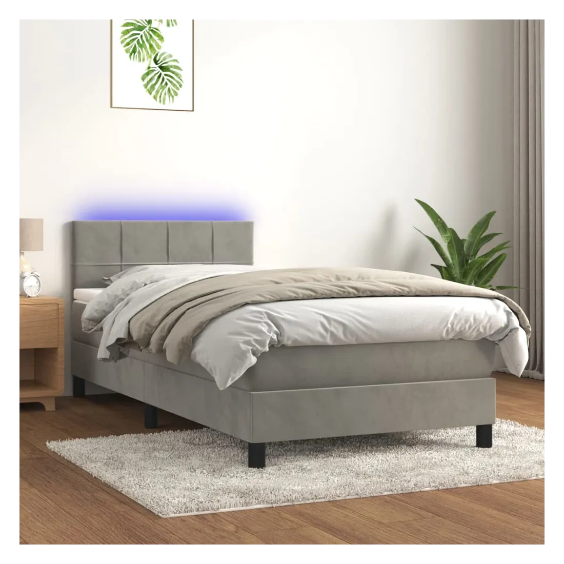 Utilisez ce sommier tapissier avec matelas et LED pour profiter d'un sommeil réparateur ! C'est le point central de votre chambre à coucher. Velours doux : le velours est un tissu doux et luxueux qui se reconnaît à son tas dense de fibres uniformément coupées qui ont une touche lisse. Le tissu en velours présente un toucher doux distinctif, ce qui le rend confortable au toucher.Tête de lit pratique : la tête de lit est réglable en hauteur selon vos préférences. La tête de lit vous offre un excellent soutien du dos lorsque vous êtes assis dans votre lit pour lire ou regarder la télévision.Bande LED colorée : apportez de l'éclairage dans l'obscurité avec des lumières LED colorées !Matelas à ressorts ensachés : le ressort ensaché individuel intégré est connu pour sa très haute qualité tout en assurant un haut niveau de durabilité et d'adaptabilité. Il peut absorber efficacement le bruit et les chocs causés par les sauts et les rotations.Protège-matelas doux pour la peau : le protège-matelas est recouvert d'un tissu résistant et doux pour la peau, ce qui le rend souple et confortable. Remarque :Pour des raisons d'hygiène, le matelas ne peut pas être retourné si l'emballage est retiré ou ouvert.Chaque produit est livré avec un manuel de montage dans la boîte pour un montage facile.Seule la partie avec un symbole de ciseaux peut être coupée et seule la partie avec l'USB continuera à fonctionner comme avant.Ce produit est doté d'un connecteur USB, mais la source d'alimentation certifiée de USB 5V n'est pas incluse.