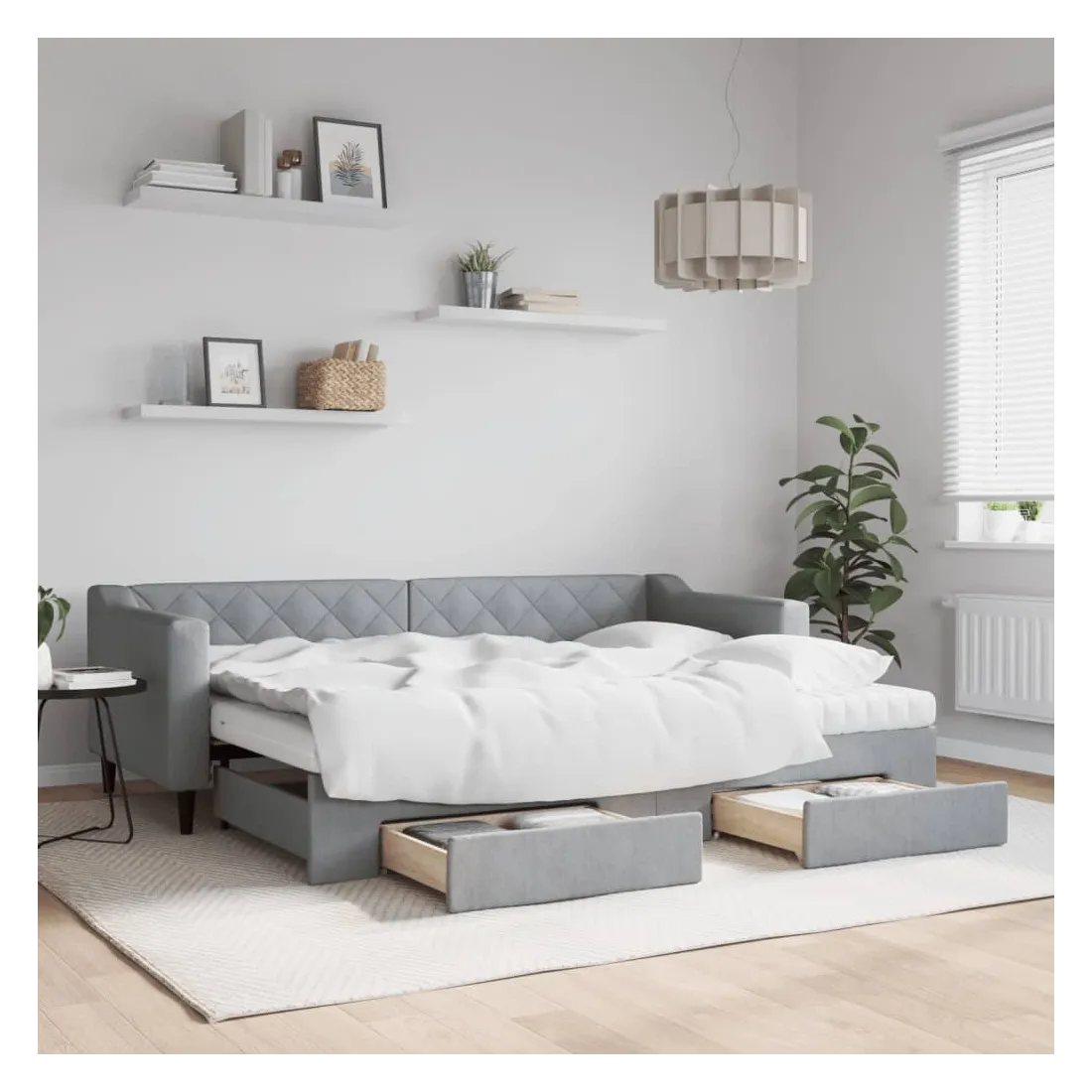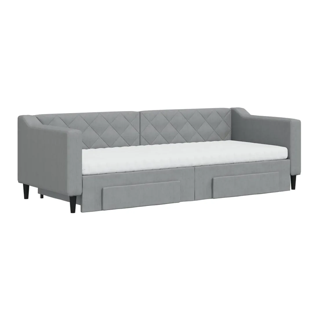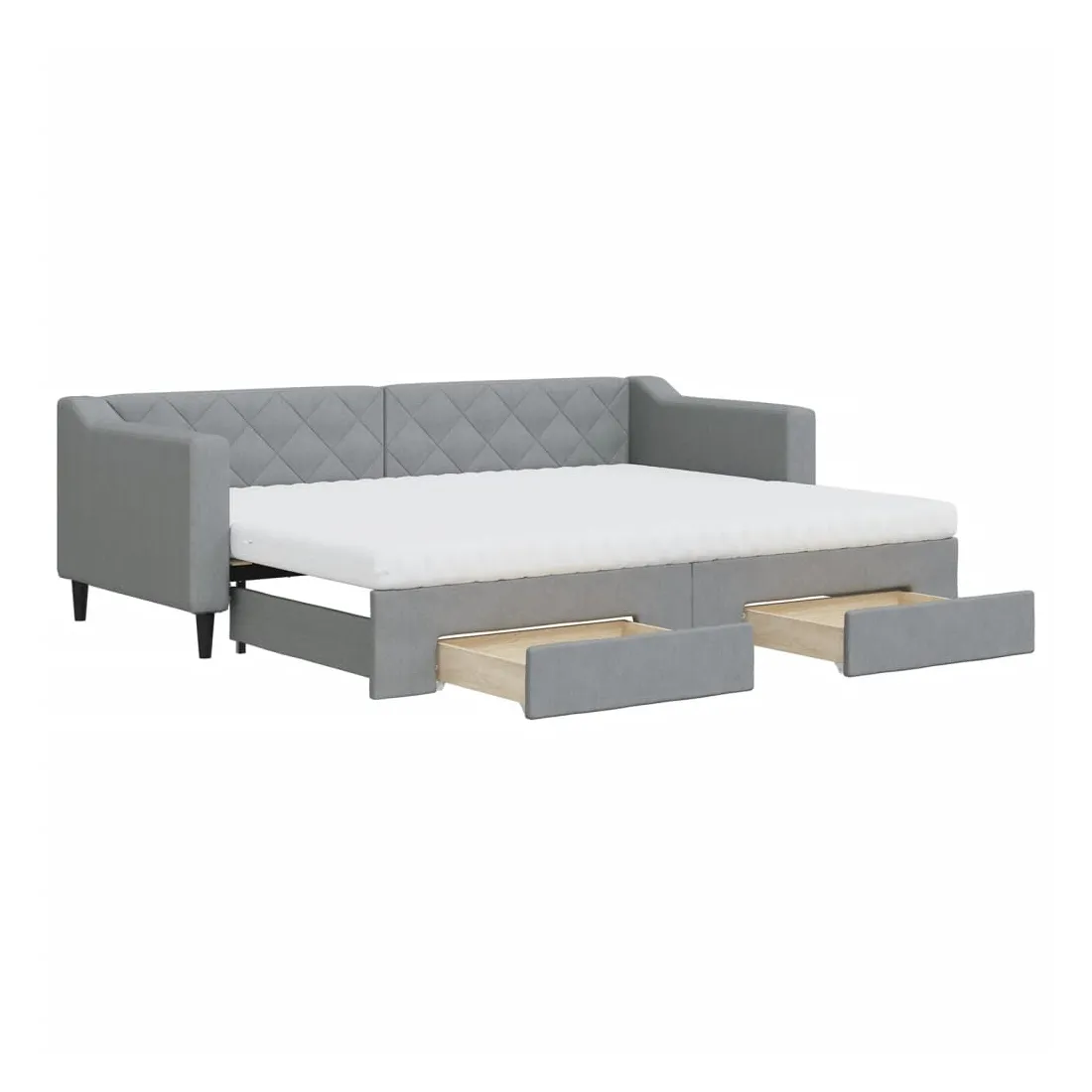 Ce lit de repos 2 en 1 avec lit gigogne, servant à la fois de canapé et de lit, constitue un supplément pratique et accrocheur à votre salon ou chambre à coucher. Lit de repos polyvalent : le canapé-lit fonctionne comme un canapé pendant la journée et se transforme facilement en lit double la nuit en retirant le lit gigogne, offrant une solution pratique pour accueillir des invités et maximiser l'espace. Grand espace de rangement : ce lit d'appoint dispose de deux tiroirs à roulettes qui offrent suffisamment d'espace pour ranger vos vêtements, chaussettes, jouets, coussins, etc. Matelas en mousse confortable : ce lit est fourni avec deux matelas en mousse pour un soutien maximal et un confort optimal. Tissu durable et construction solide : ce canapé-lit a une structure robuste en bois et en métal et est recouvert d'un tissu durable et confortable.