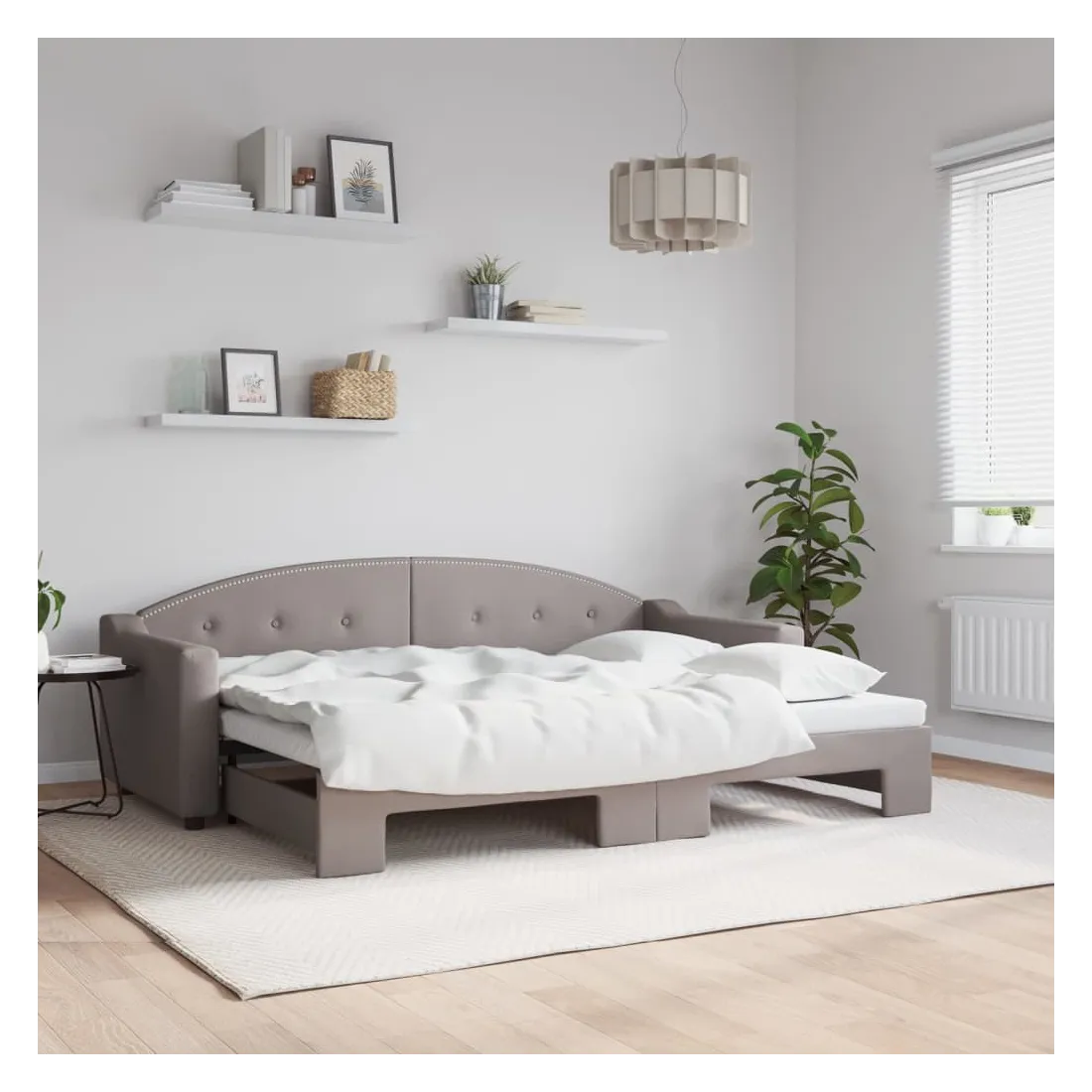 Ce lit de repos 2 en 1 avec lit gigogne, servant à la fois de canapé et de lit, constitue un supplément pratique et accrocheur à votre salon ou chambre à coucher. Lit de repos polyvalent : le canapé-lit fonctionne comme un canapé pendant la journée et se transforme facilement en lit double la nuit en retirant le lit gigogne, offrant une solution pratique pour accueillir des invités et maximiser l'espace. Tissu durable : lit d'appoint est en tissu. Le tissu présente un aspect simple et épuré tout en restant respirant et durable. Construction solide : la structure en bois et en métal du lit assure robustesse et stabilité. Bon à savoir :Les matelas ne sont pas inclus avec ce lit de repos. Nous proposons une sélection variée de matelas. Vous pouvez consulter notre boutique pour les matelas assortis.