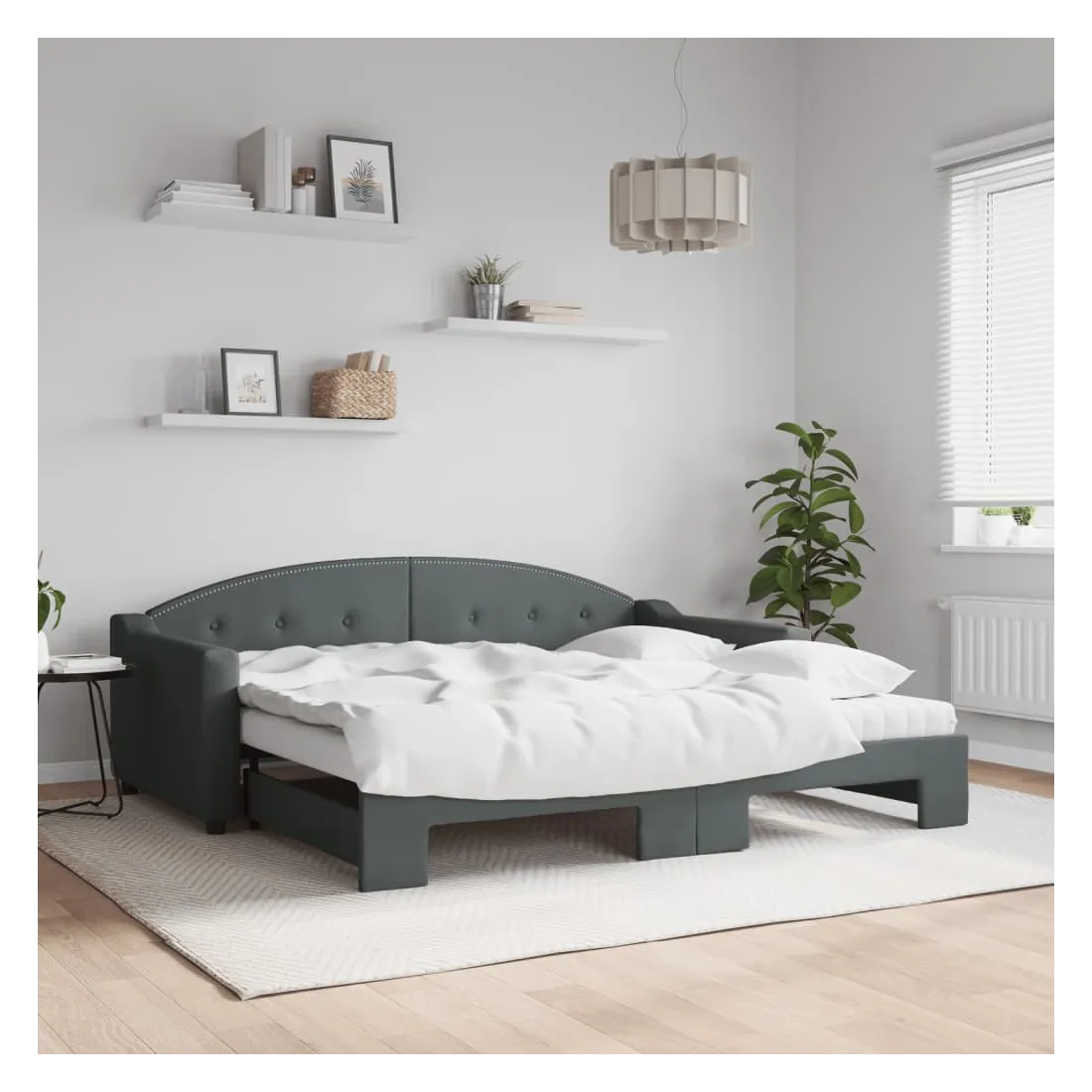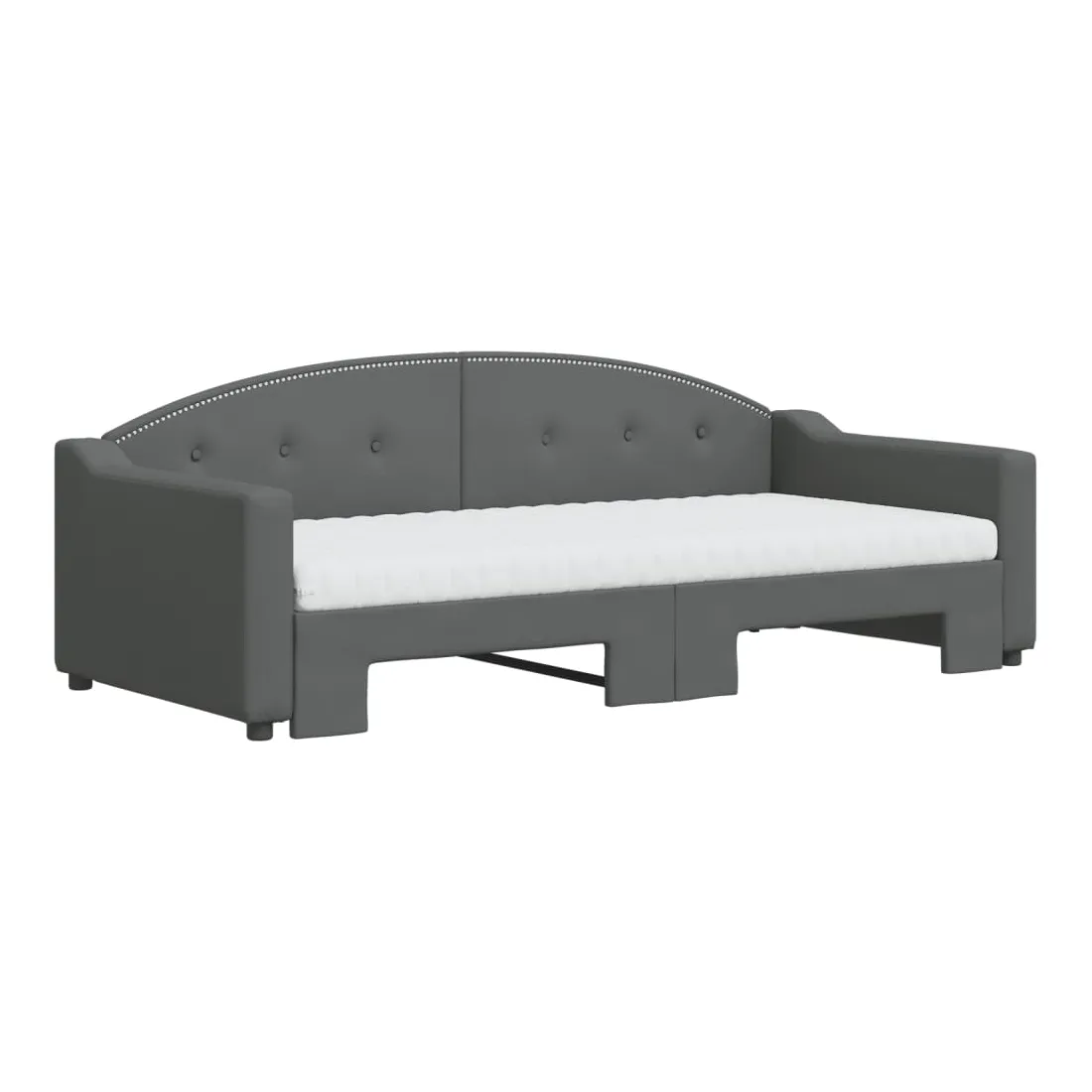 Lit de jour avec gigogne et matelas gris foncé 90x190 cm tissu
