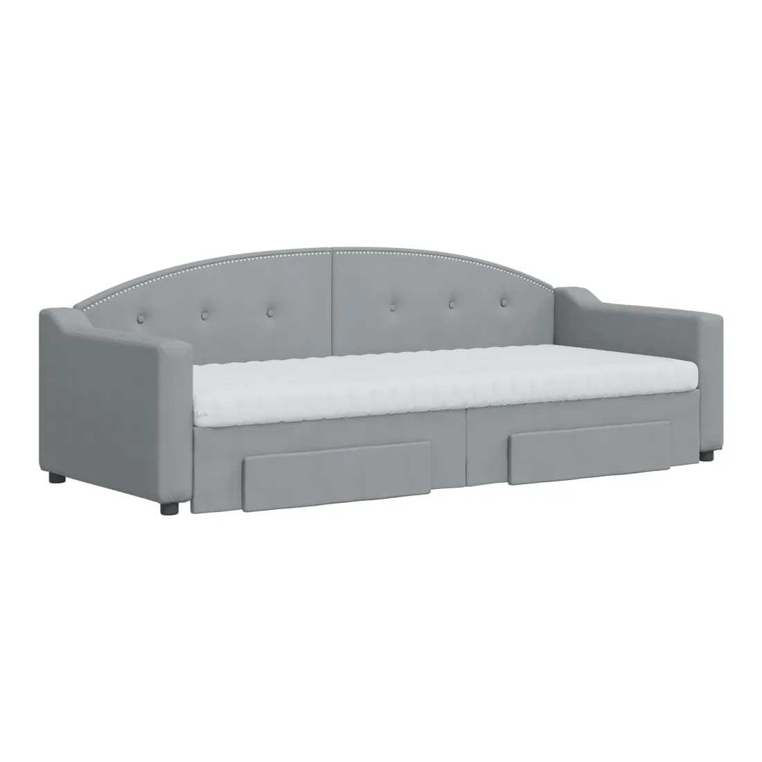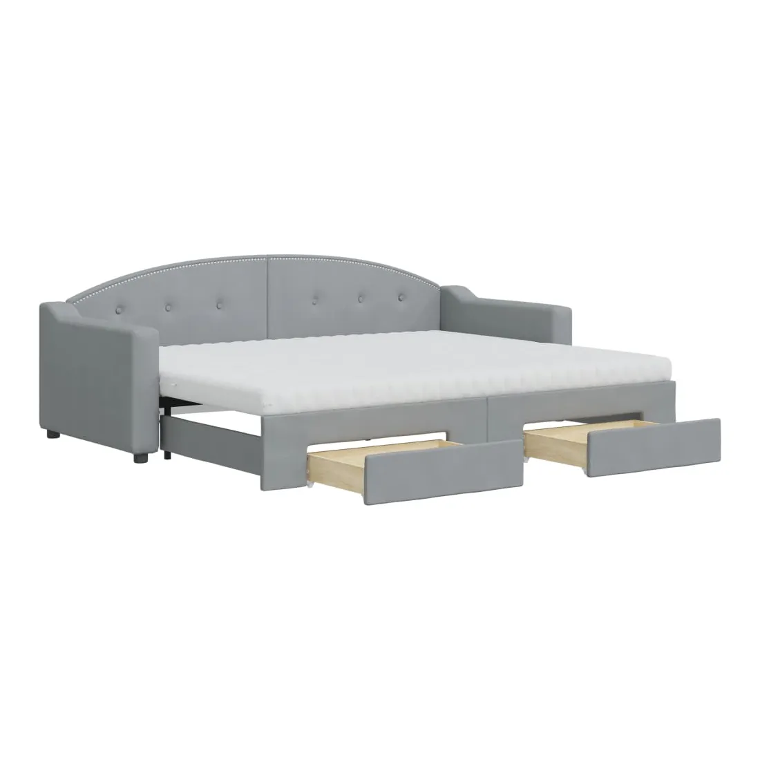 Ce lit de repos 2 en 1 avec lit gigogne, servant à la fois de canapé et de lit, constitue un supplément pratique et accrocheur à votre salon ou chambre à coucher. Lit de repos polyvalent : le canapé-lit fonctionne comme un canapé pendant la journée et se transforme facilement en lit double la nuit en retirant le lit gigogne, offrant une solution pratique pour accueillir des invités et maximiser l'espace. Grand espace de rangement : ce lit d'appoint dispose de deux tiroirs à roulettes qui offrent suffisamment d'espace pour ranger vos vêtements, chaussettes, jouets, coussins, etc. Matelas en mousse confortable : ce lit est fourni avec deux matelas en mousse pour un soutien maximal et un confort optimal. Tissu durable et construction solide : ce canapé-lit a une structure robuste en bois et en métal et est recouvert d'un tissu durable et confortable.