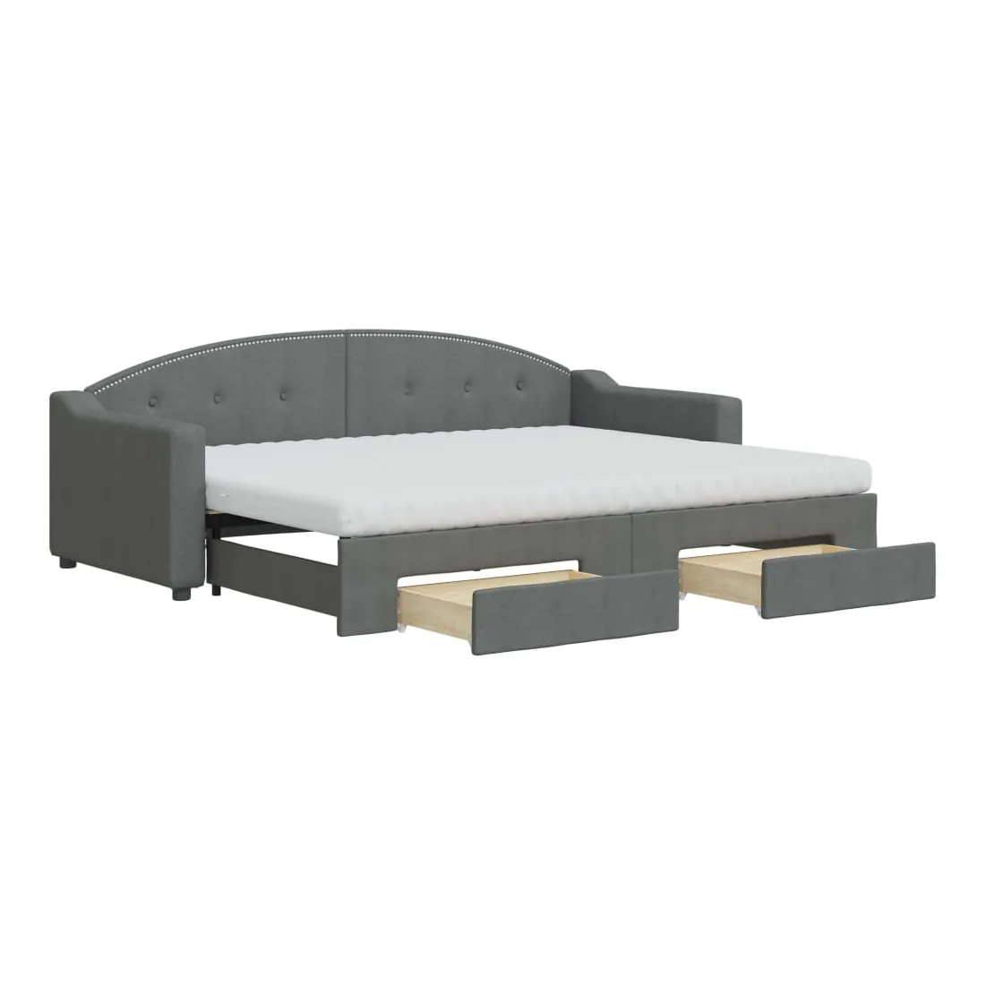 Ce lit de repos 2 en 1 avec lit gigogne, servant à la fois de canapé et de lit, constitue un supplément pratique et accrocheur à votre salon ou chambre à coucher. Lit de repos polyvalent : le canapé-lit fonctionne comme un canapé pendant la journée et se transforme facilement en lit double la nuit en retirant le lit gigogne, offrant une solution pratique pour accueillir des invités et maximiser l'espace. Grand espace de rangement : ce lit d'appoint dispose de deux tiroirs à roulettes qui offrent suffisamment d'espace pour ranger vos vêtements, chaussettes, jouets, coussins, etc. Matelas en mousse confortable : ce lit est fourni avec deux matelas en mousse pour un soutien maximal et un confort optimal. Tissu durable et construction solide : ce canapé-lit a une structure robuste en bois et en métal et est recouvert d'un tissu durable et confortable.