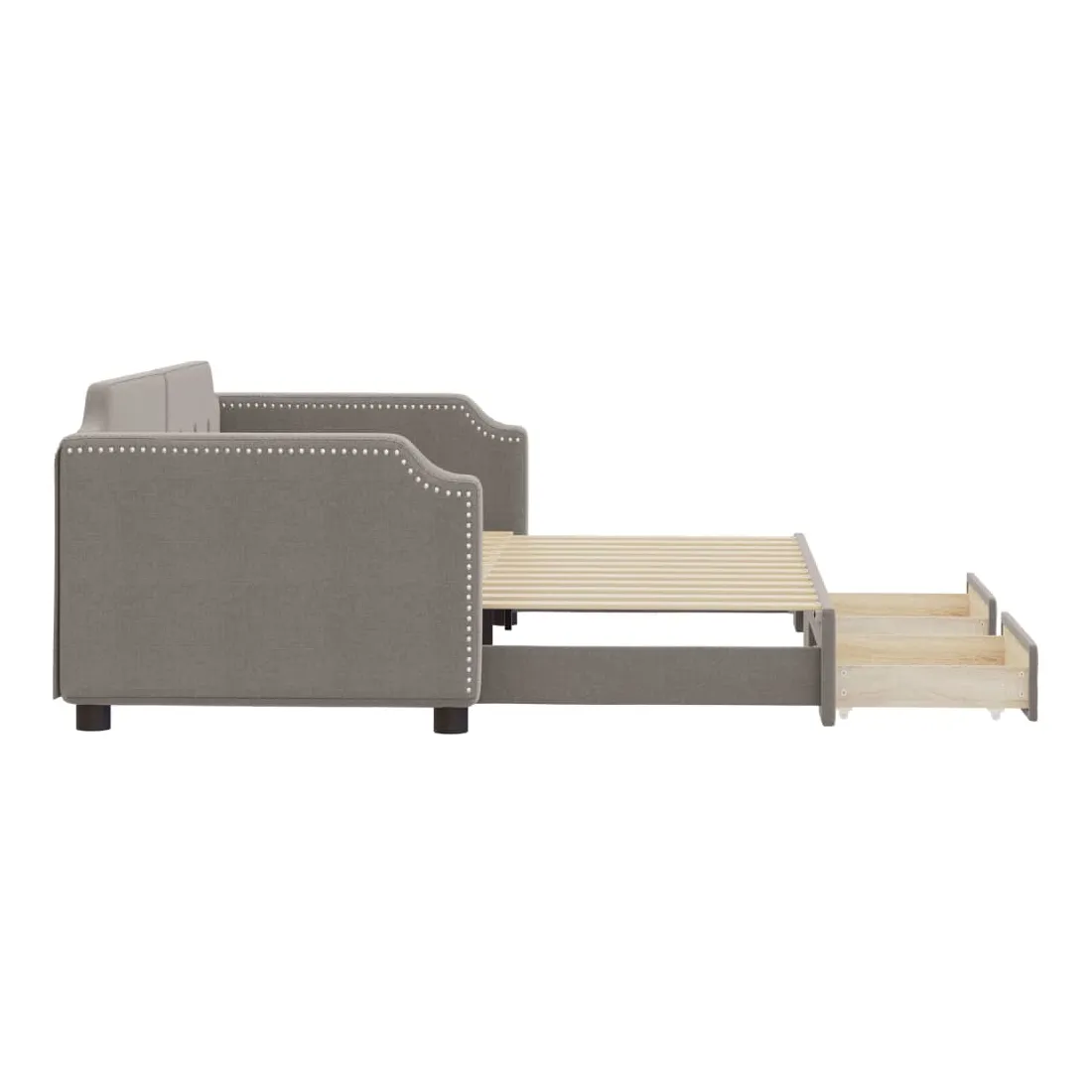 Ce lit de repos 2 en 1 avec lit gigogne, servant à la fois de canapé et de lit, constitue un supplément pratique et accrocheur à votre salon ou chambre à coucher. Lit de repos polyvalent : le canapé-lit fonctionne comme un canapé pendant la journée et se transforme facilement en lit double la nuit en retirant le lit gigogne, offrant une solution pratique pour accueillir des invités et maximiser l'espace. Grand espace de rangement : ce lit d'appoint dispose de deux tiroirs à roulettes qui offrent suffisamment d'espace pour ranger vos vêtements, chaussettes, jouets, coussins, etc. Tissu durable et construction solide : ce canapé-lit a une structure robuste en bois et en métal et est recouvert d'un tissu durable et confortable. Bon à savoir :Les matelas ne sont pas inclus avec ce lit de repos. Nous proposons une sélection variée de matelas. Vous pouvez consulter notre boutique pour les matelas assortis.