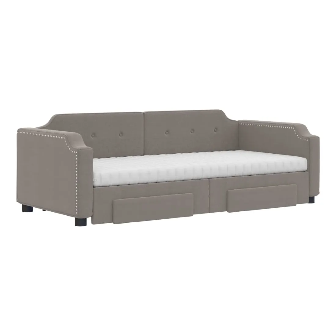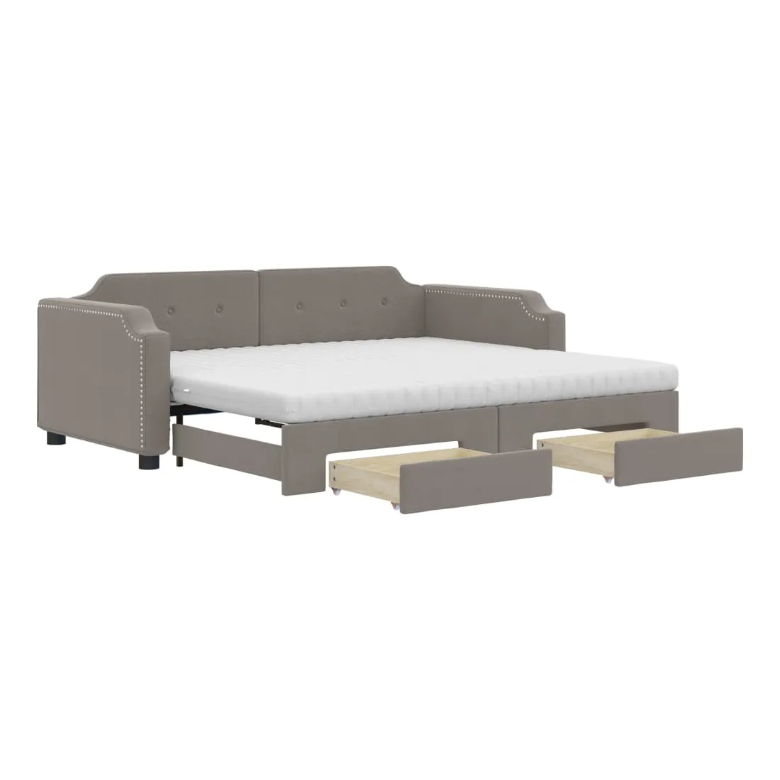 Lit de jour avec gigogne et tiroirs taupe 90x200 cm tissu