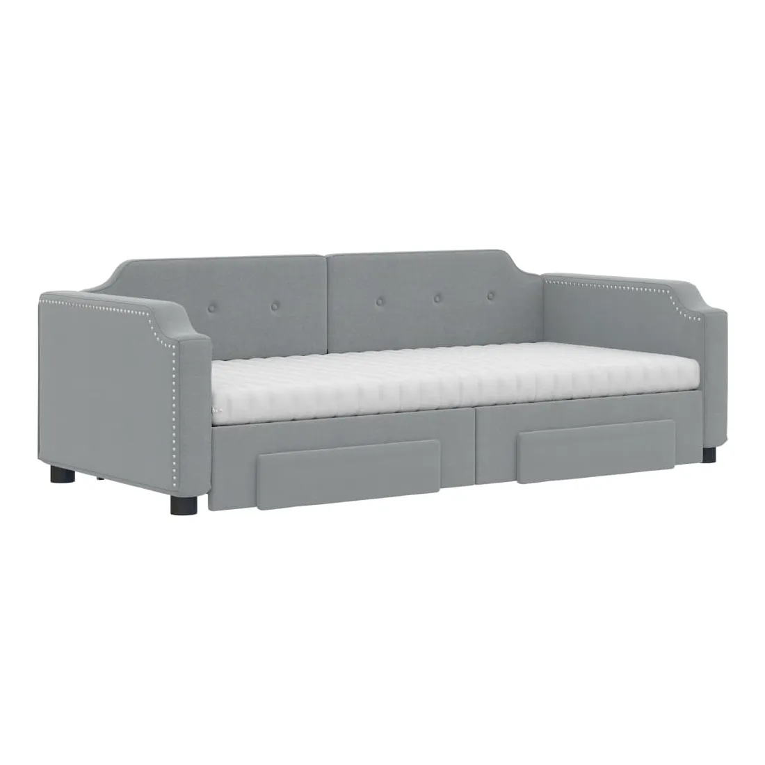 Lit de jour avec gigogne et tiroirs gris clair 90x190 cm tissu