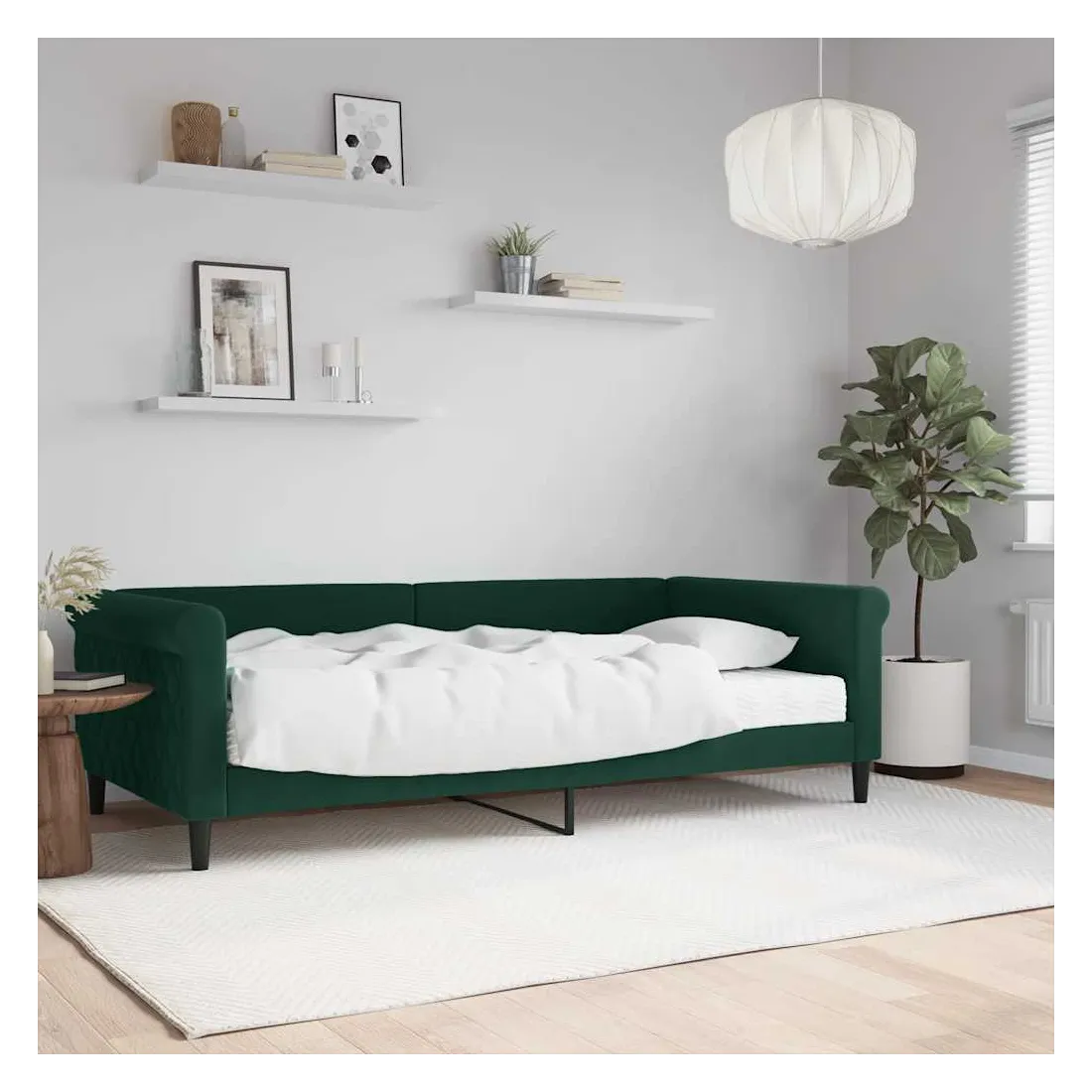 Ce lit de repos 2 en 1 avec matelas, servant à la fois de canapé et de lit, constitue un supplément pratique et accrocheur à votre salon ou votre chambre à coucher. Lit de jour polyvalent : le canapé-lit peut être utilisé comme canapé pendant la journée, ou comme lit pendant la nuit pour offrir une solution rapide pour accueillir des invités pour la nuit.Matelas en mousse confortable : ce lit est fourni avec un matelas en mousse pour un soutien maximal et un confort optimal.Velours doux et construction solide : ce canapé-lit a un cadre robuste en bois et en métal et est recouvert de velours doux et confortable.Design moderne : le canapé-lit a un design moderne qui présente des lignes épurées, un aspect minimaliste, ainsi que de la lumière naturelle, et ajoutera un style moderne à votre intérieur !