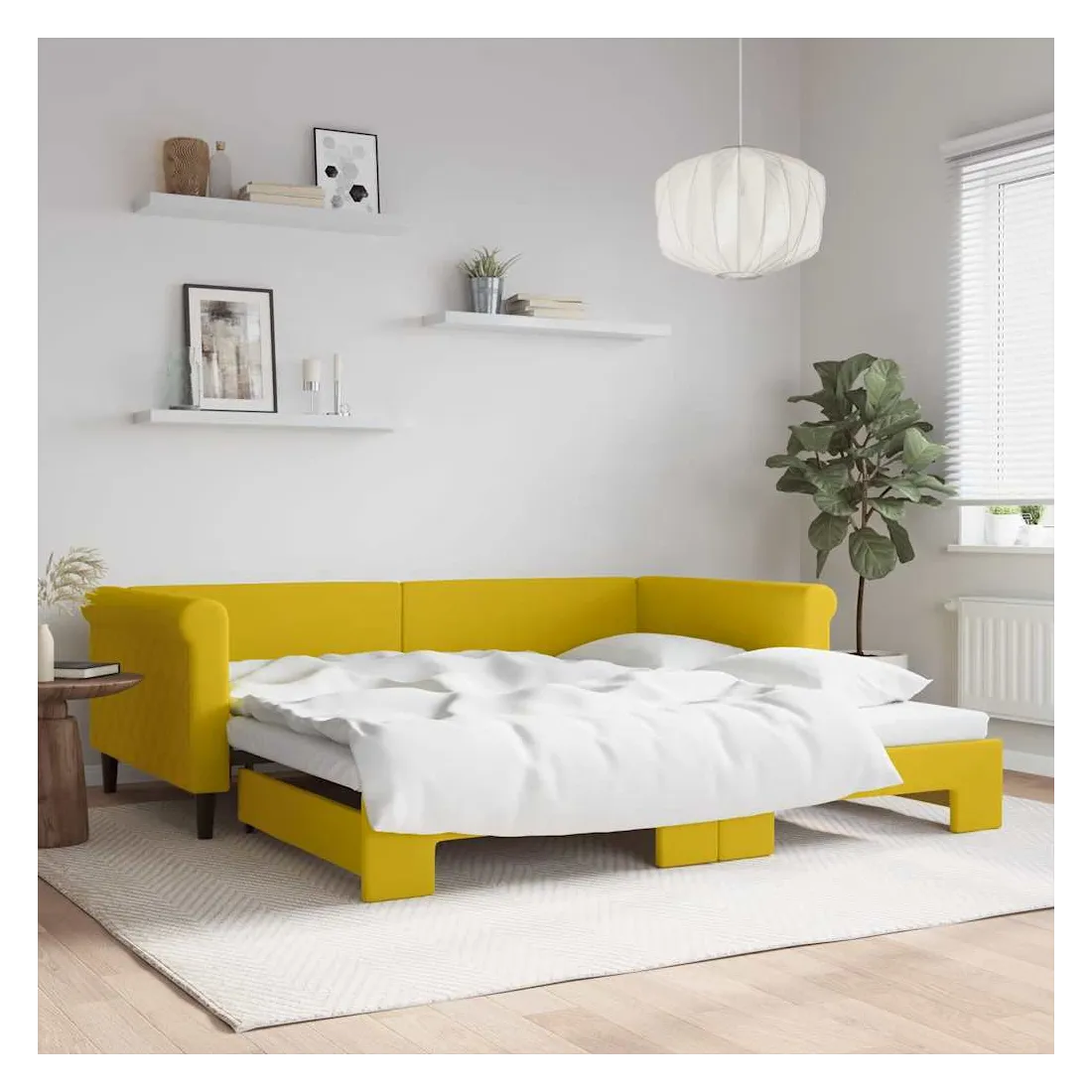 Lit de jour avec lit gigogne jaune 100x200 cm velours