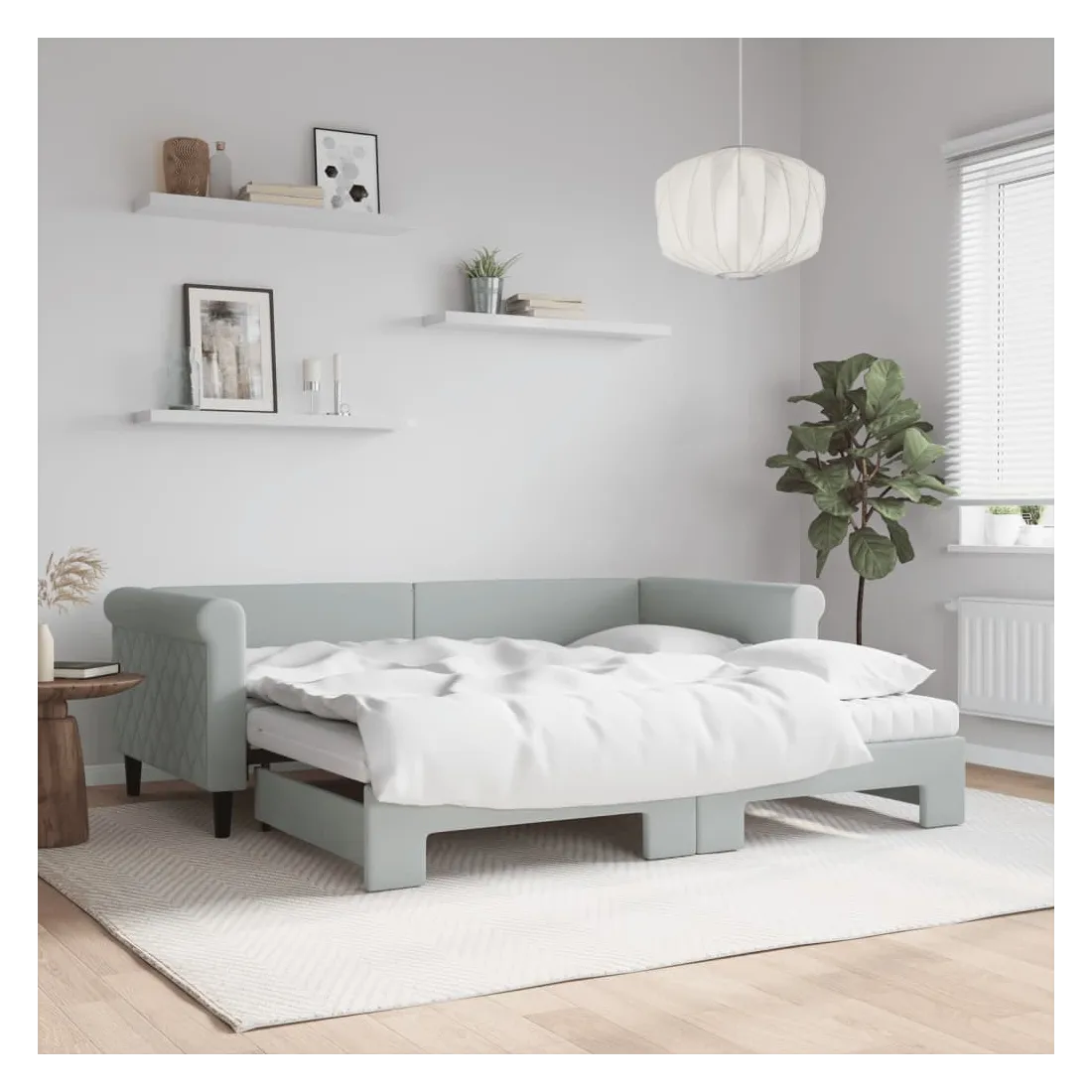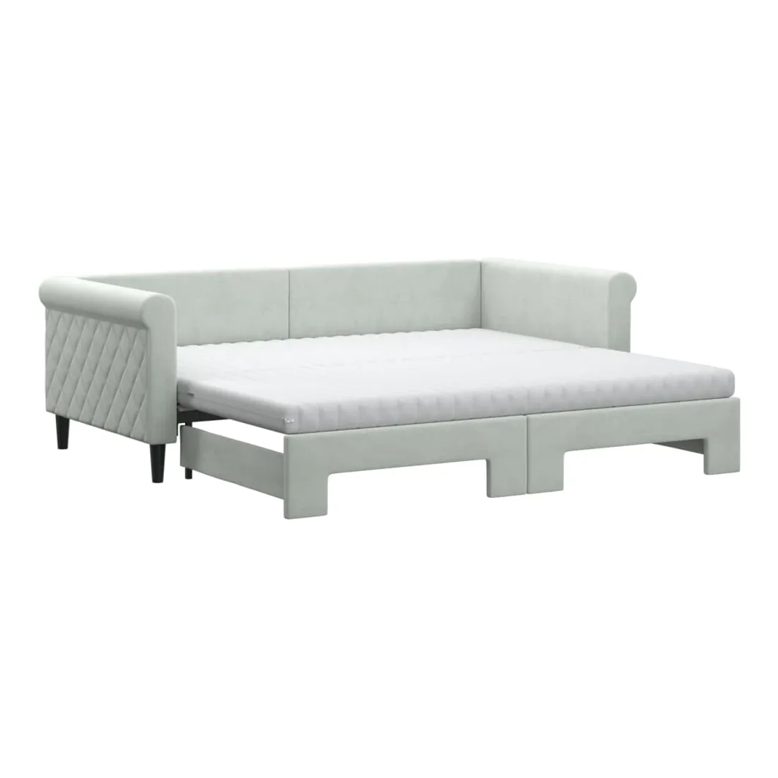 Ce lit de repos 2 en 1 avec lit gigogne, servant à la fois de canapé et de lit, constitue un supplément pratique et accrocheur à votre salon ou chambre à coucher. Lit de repos polyvalent : le canapé-lit fonctionne comme un canapé pendant la journée et se transforme facilement en lit double la nuit en retirant le lit gigogne, offrant une solution pratique pour accueillir des invités et maximiser l'espace.Matelas en mousse confortable : ce lit est fourni avec deux matelas en mousse pour un soutien maximal et un confort optimal.Velours doux et construction solide : ce canapé-lit a un cadre robuste en bois et en métal et est recouvert de velours doux et confortable.Design moderne : le canapé-lit a un design moderne qui présente des lignes épurées, un aspect minimaliste, ainsi que de la lumière naturelle, et ajoutera un style moderne à votre intérieur !