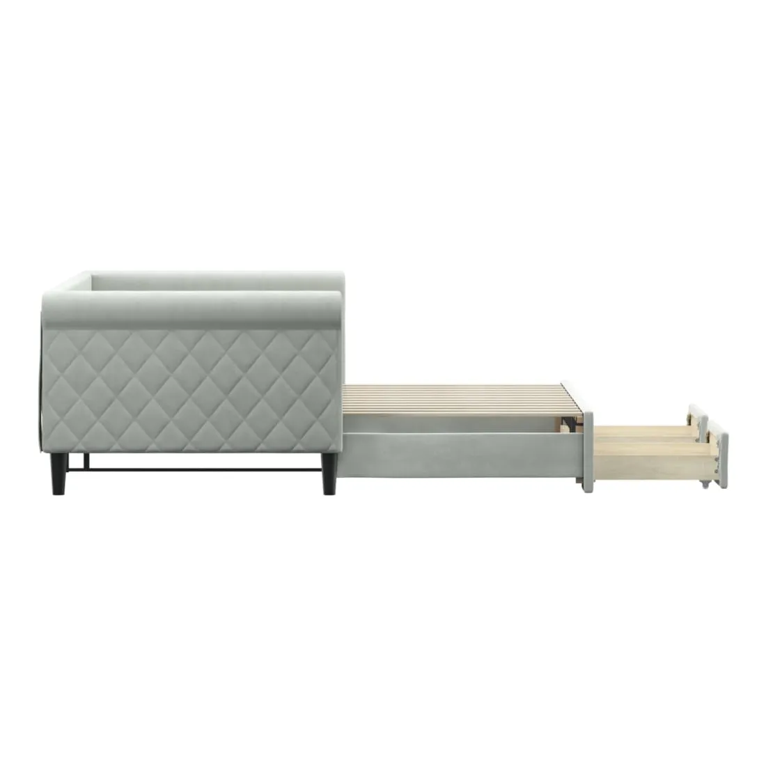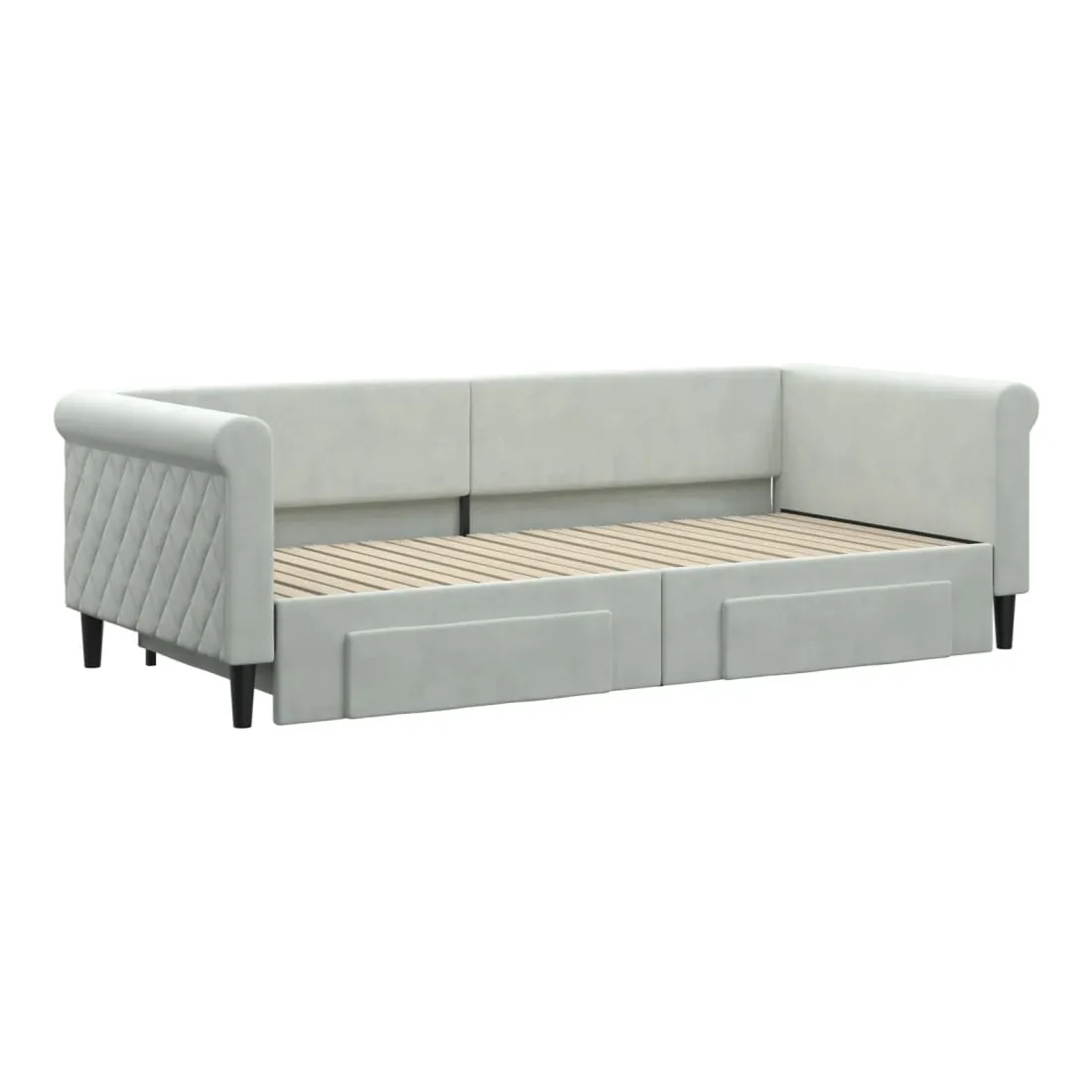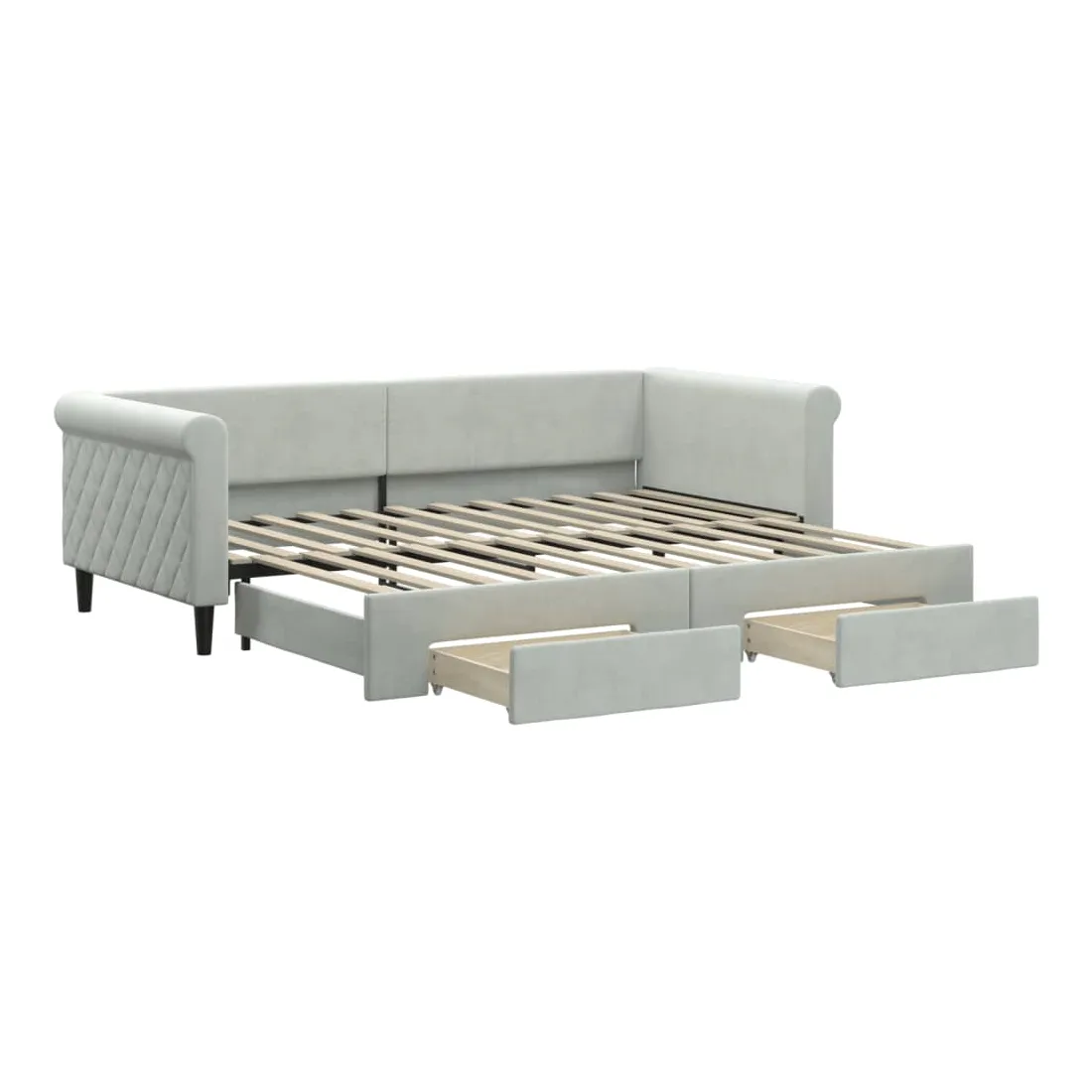 Ce lit de repos 2 en 1 avec lit gigogne, servant à la fois de canapé et de lit, constitue un supplément pratique et accrocheur à votre salon ou chambre à coucher. Lit de repos polyvalent : le canapé-lit fonctionne comme un canapé pendant la journée et se transforme facilement en lit double la nuit en retirant le lit gigogne, offrant une solution pratique pour accueillir des invités et maximiser l'espace.Grand espace de rangement : ce lit d'appoint dispose de deux tiroirs à roulettes qui offrent suffisamment d'espace pour ranger vos vêtements, chaussettes, jouets, coussins, etc.Velours doux et construction solide : ce canapé-lit a un cadre robuste en bois et en métal et est recouvert de velours doux et confortable.Design moderne : le canapé-lit a un design moderne qui présente des lignes épurées, un aspect minimaliste, ainsi que de la lumière naturelle, et ajoutera un style moderne à votre intérieur ! Bon à savoir :Les matelas ne sont pas inclus avec ce lit. Nous proposons une sélection variée de matelas. Vous pouvez consulter notre boutique pour trouver les matelas assortis.