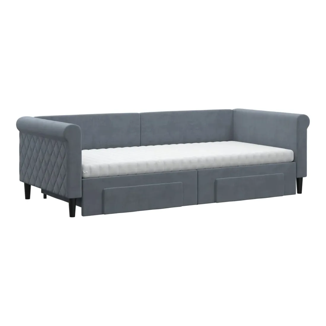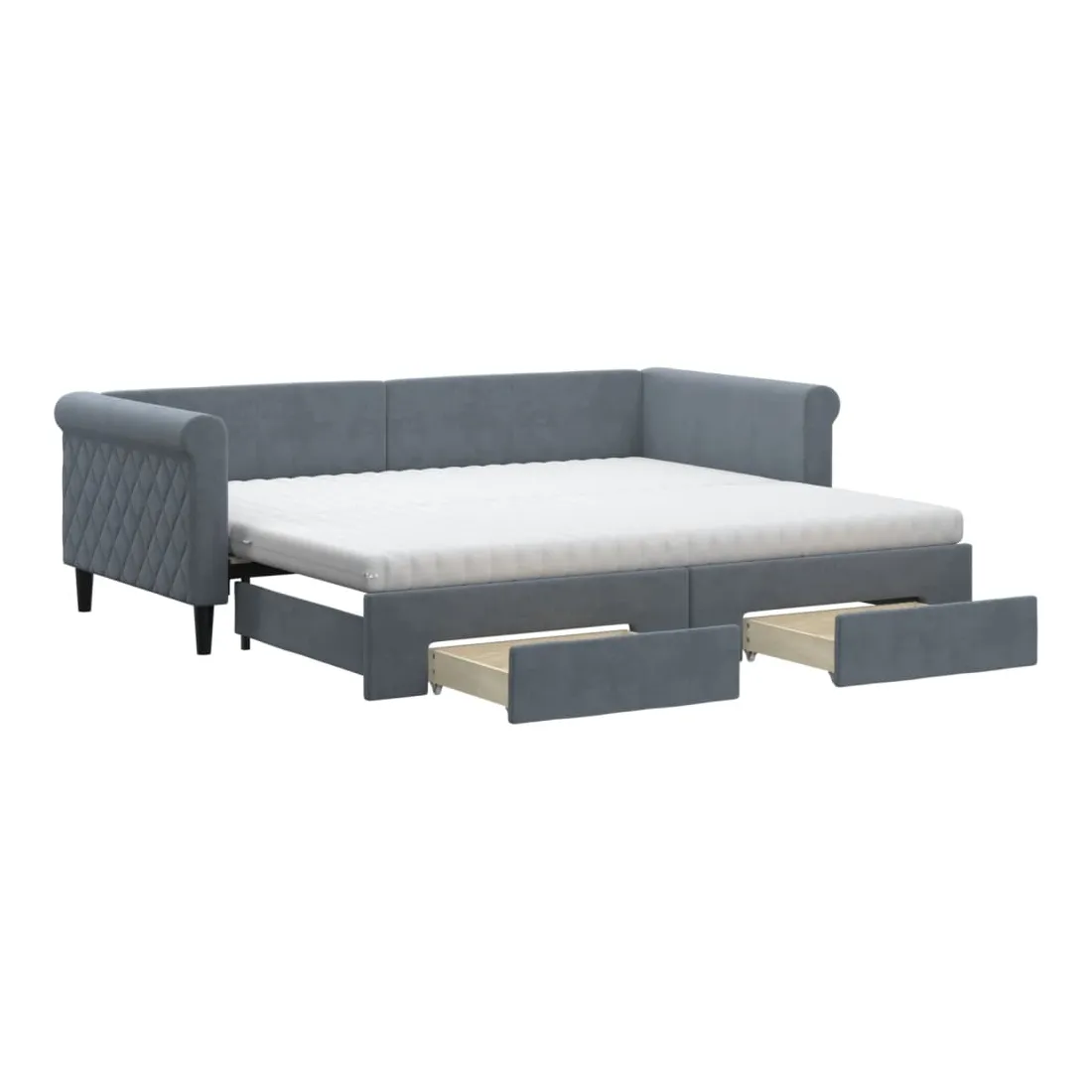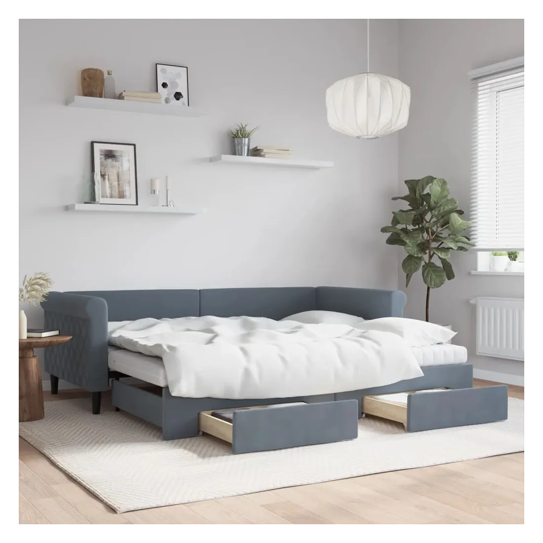 Ce lit de repos 2 en 1 avec lit gigogne, servant à la fois de canapé et de lit, constitue un supplément pratique et accrocheur à votre salon ou chambre à coucher. Lit de repos polyvalent : le canapé-lit fonctionne comme un canapé pendant la journée et se transforme facilement en lit double la nuit en retirant le lit gigogne, offrant une solution pratique pour accueillir des invités et maximiser l'espace.Grand espace de rangement : ce lit d'appoint dispose de deux tiroirs à roulettes qui offrent suffisamment d'espace pour ranger vos vêtements, chaussettes, jouets, coussins, etc.Matelas en mousse confortable : ce lit est fourni avec deux matelas en mousse pour un soutien maximal et un confort optimal.Velours doux et construction solide : ce canapé-lit a un cadre robuste en bois et en métal et est recouvert de velours doux et confortable.