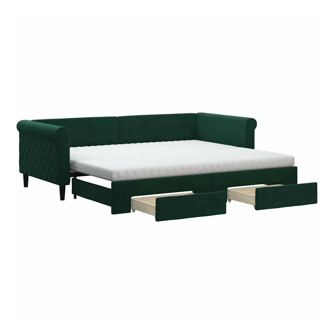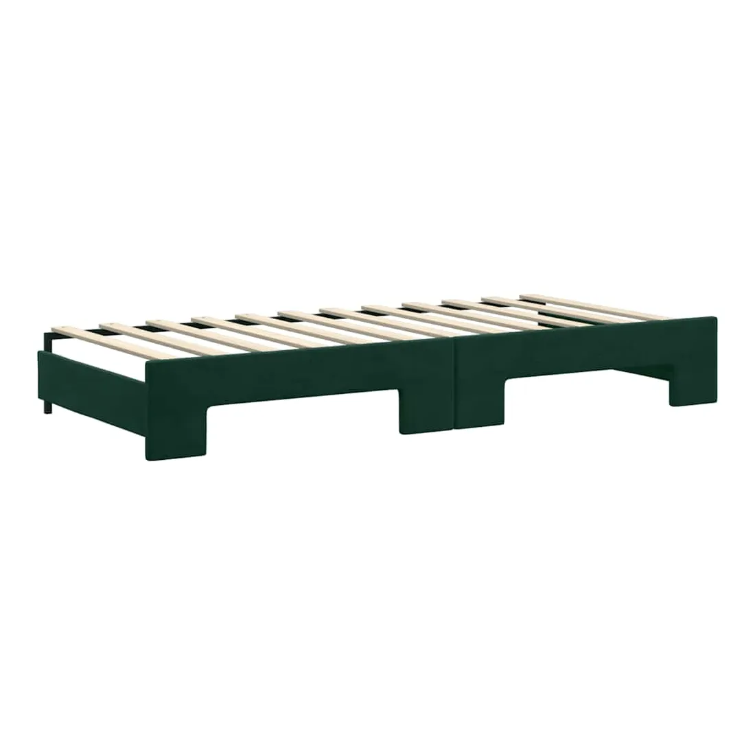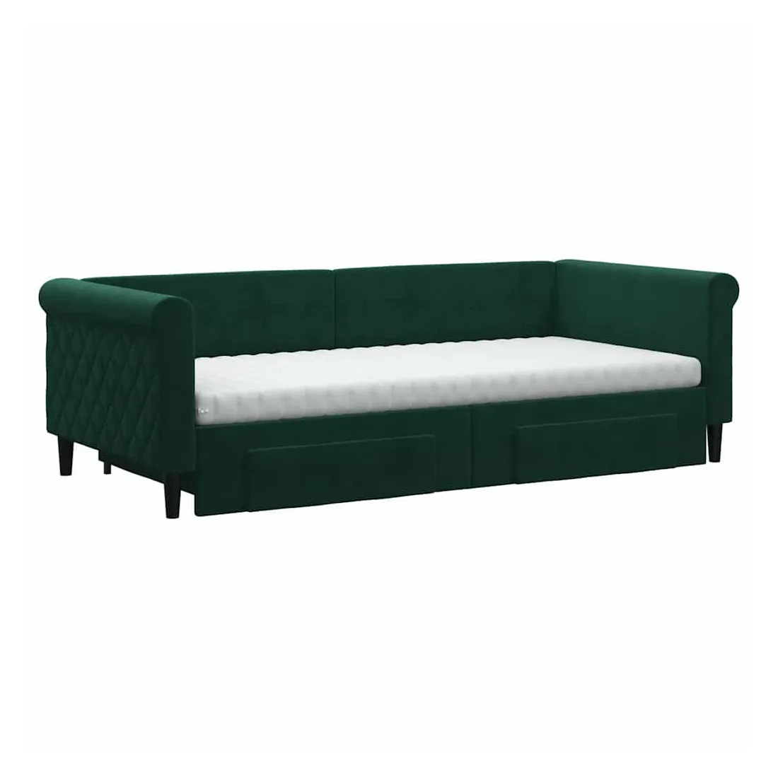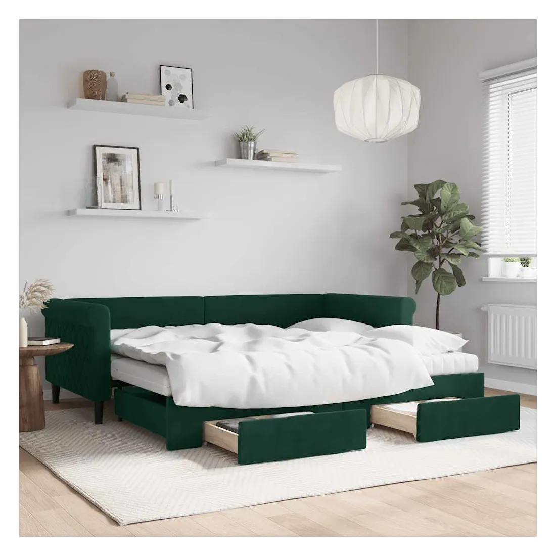 Lit de jour avec gigogne et tiroirs vert foncé 90x200cm velours