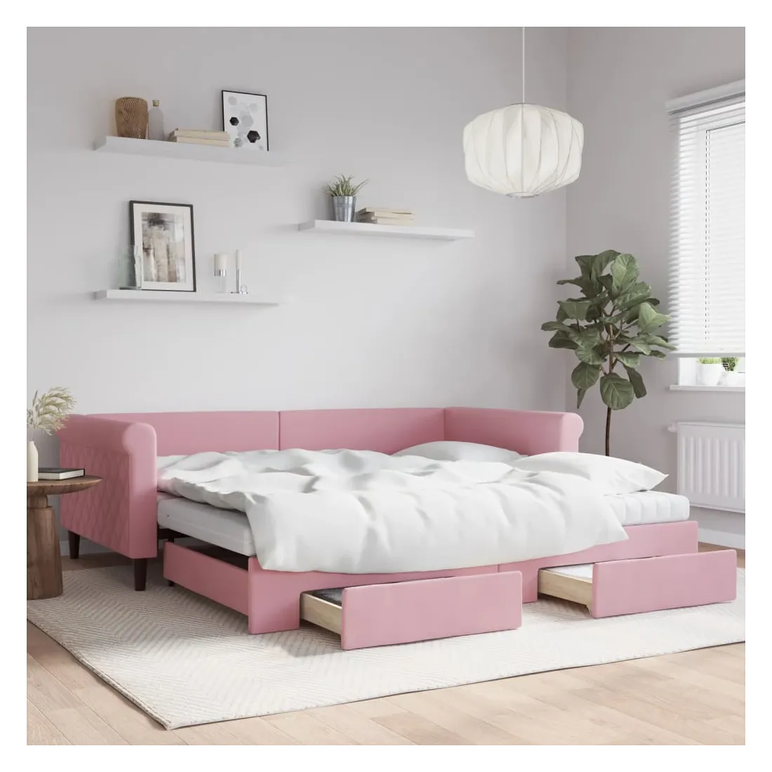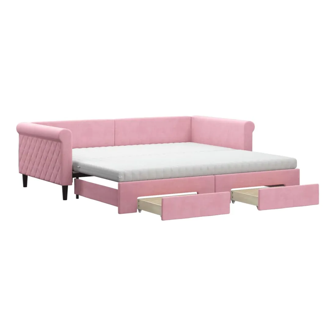 Ce lit de repos 2 en 1 avec lit gigogne, servant à la fois de canapé et de lit, constitue un supplément pratique et accrocheur à votre salon ou chambre à coucher. Lit de repos polyvalent : le canapé-lit fonctionne comme un canapé pendant la journée et se transforme facilement en lit double la nuit en retirant le lit gigogne, offrant une solution pratique pour accueillir des invités et maximiser l'espace.Grand espace de rangement : ce lit d'appoint dispose de deux tiroirs à roulettes qui offrent suffisamment d'espace pour ranger vos vêtements, chaussettes, jouets, coussins, etc.Matelas en mousse confortable : ce lit est fourni avec deux matelas en mousse pour un soutien maximal et un confort optimal.Velours doux et construction solide : ce canapé-lit a un cadre robuste en bois et en métal et est recouvert de velours doux et confortable.