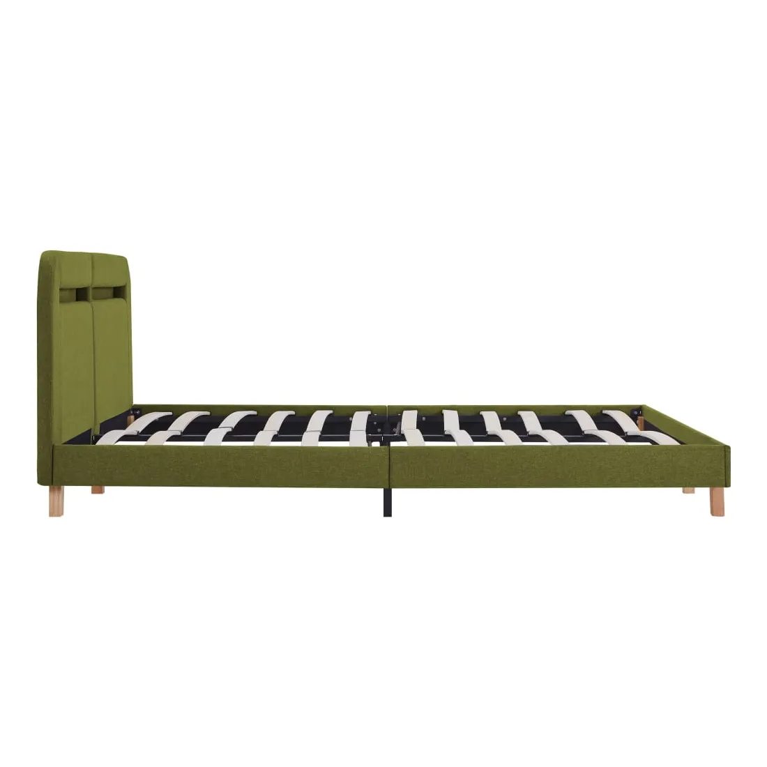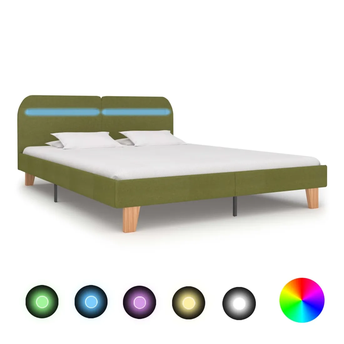 Cadre de lit avec LED sans matelas vert tissu 180x200 cm