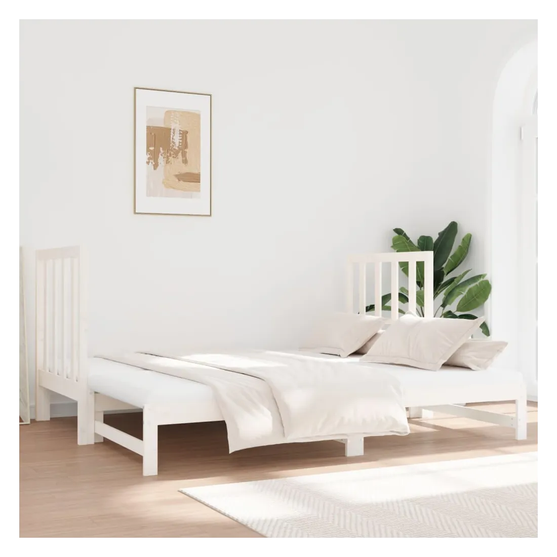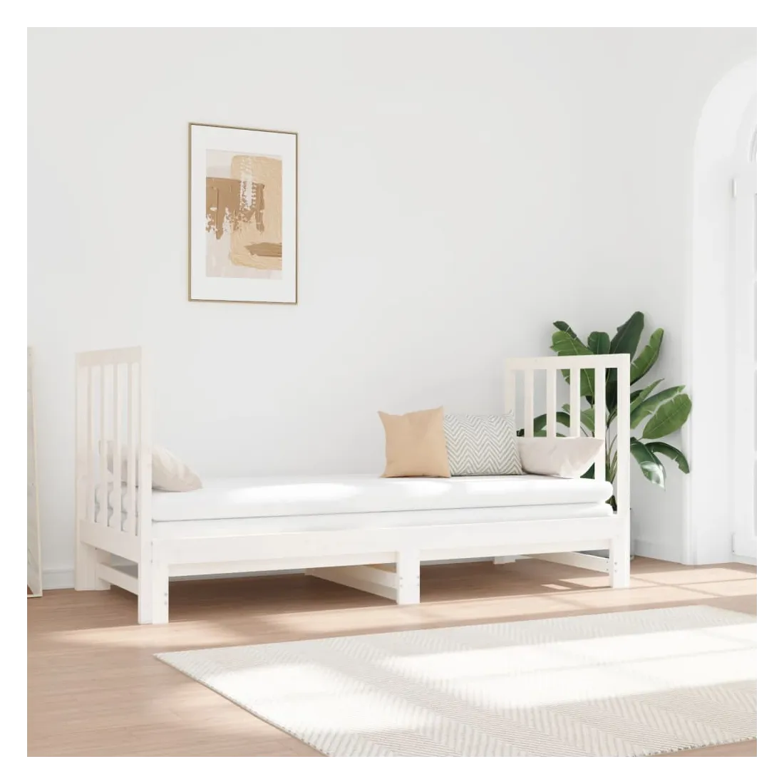 Ce lit de jour en bois polyvalent peut être utilisé comme lit dans votre chambre à coucher et s'intègre également parfaitement comme canapé dans votre salon. Bois de pin massif : le bois de pin massif est un matériau naturel magnifique. Le bois de pin a un grain droit et les nœuds donnent au matériau son aspect caractéristique et rustique. Ce lit d'appoint est en bois de pin massif, plus stable et durable.Design à lattes : le sommier à lattes permet une meilleure circulation de l'air pour garder le matelas frais plus longtemps, améliorant la capacité de poids du lit et assurant la stabilité.Utilisation facile : ce lit est très pratique à utiliser et ne nécessite pas de sommier ni de cadre. Placez simplement le matelas sur le dessus et profitez d'un sommeil réparateur ou d'un temps assis !Canapé-lit coulissant : ce lit de jour en bois peut être utilisé comme canapé pendant la journée ou comme lit la nuit, offrant une solution rapide pour accueillir des invités pour la nuit tout en économisant de l'espace.Soutien confortable : cette tête de lit vous offre un excellent soutien dorsal lorsque vous êtes assis au lit pour lire ou regarder des films. Remarque :La livraison comprend uniquement un cadre de lit de jour. Le matelas n'est pas inclus. Vous pouvez consulter notre boutique pour trouver les matelas assortis.Chaque produit est livré avec un manuel de montage dans la boîte pour un montage facile.