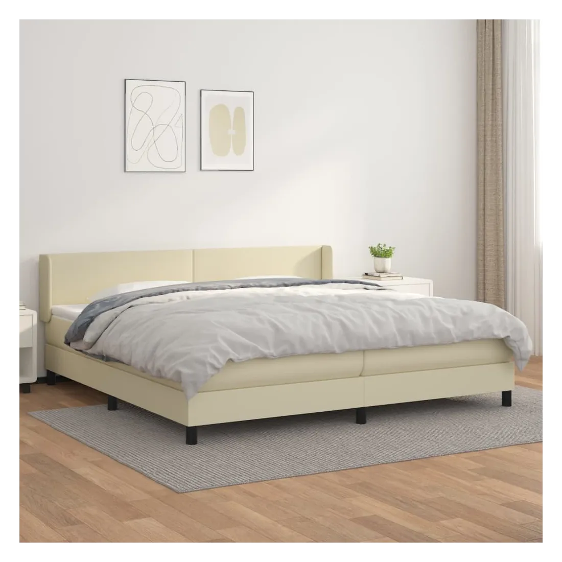 Sommier à lattes de lit avec matelas Crème 200x200cm Similicuir