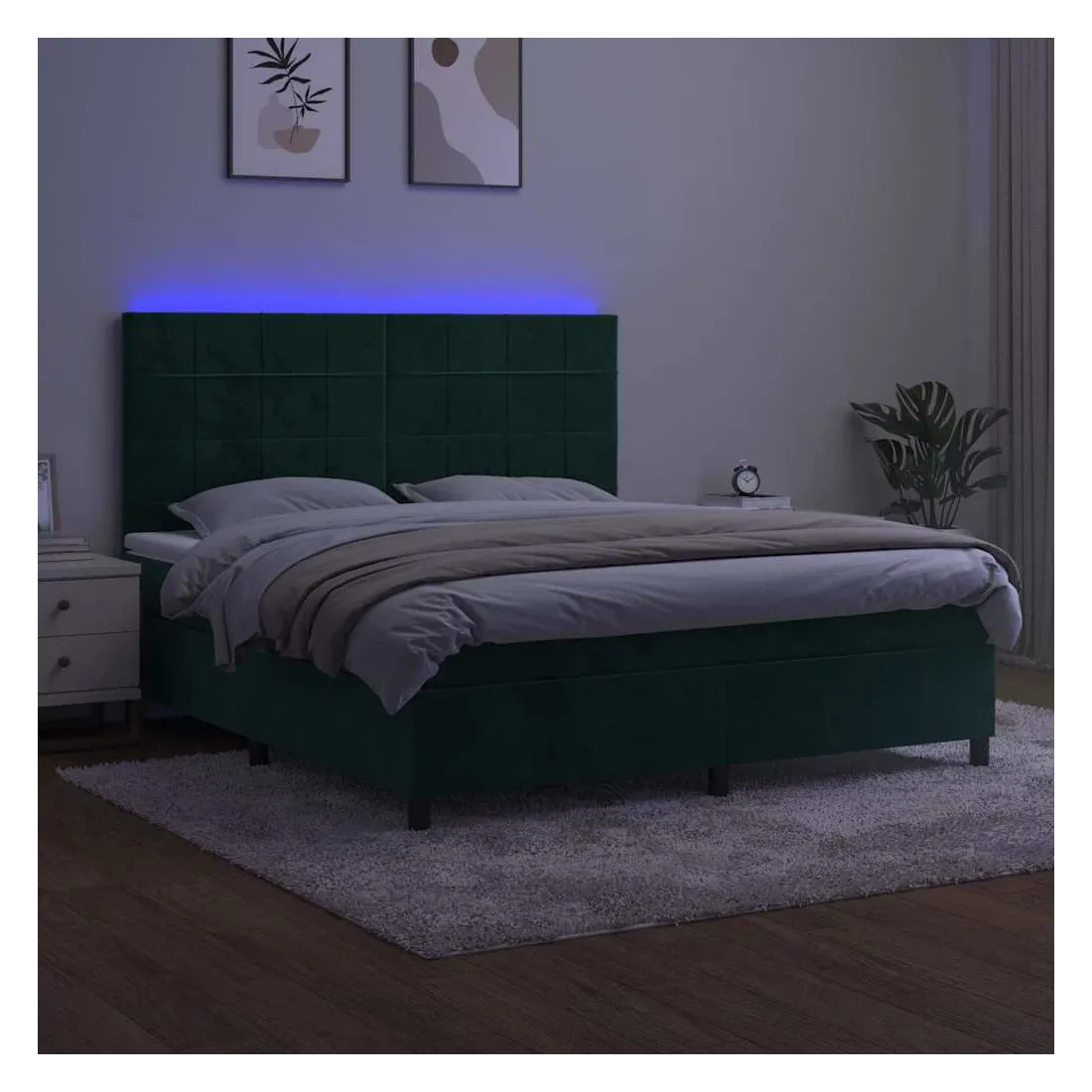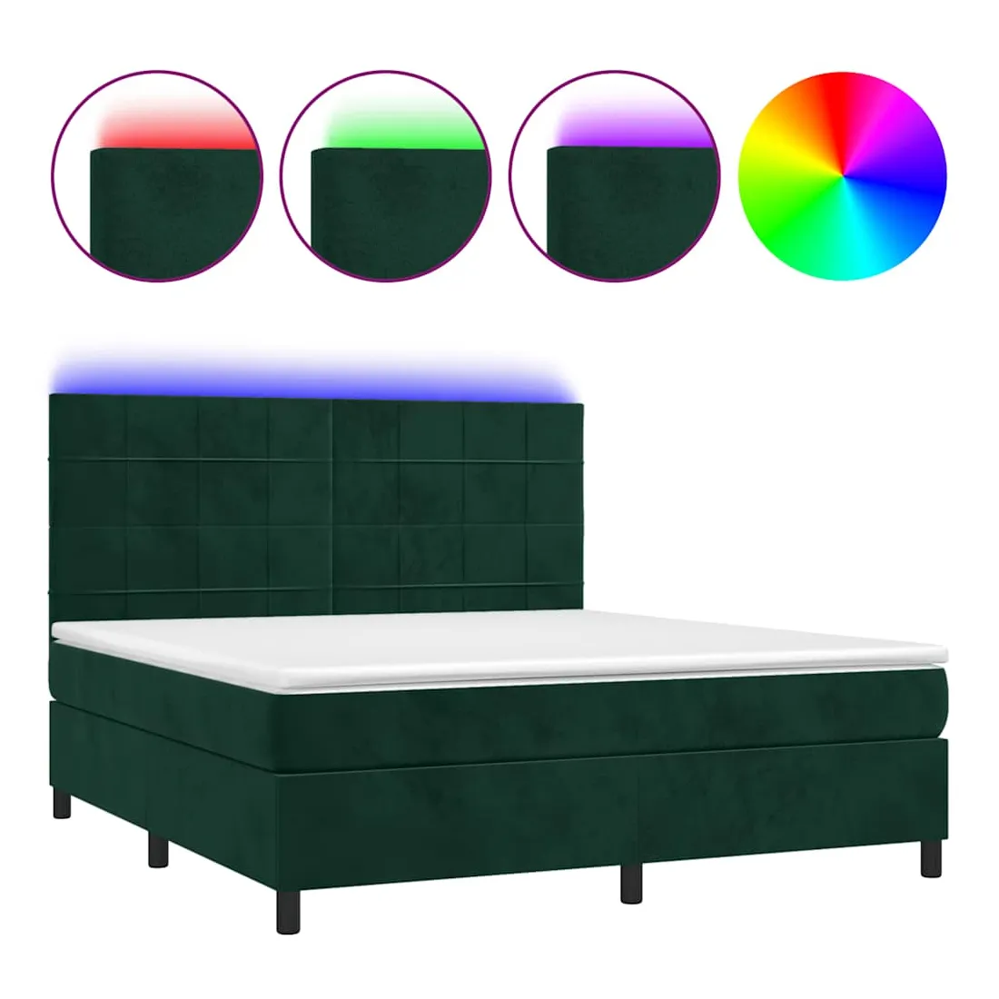 Utilisez ce sommier tapissier avec matelas et LED pour profiter d'un sommeil réparateur ! C'est le point central de votre chambre à coucher. Velours doux : le velours est un tissu doux et luxueux qui se reconnaît à son tas dense de fibres uniformément coupées qui ont une touche lisse. Le tissu en velours présente un toucher doux distinctif, ce qui le rend confortable au toucher.Tête de lit pratique : la tête de lit est réglable en hauteur selon vos préférences. La tête de lit vous offre un excellent soutien du dos lorsque vous êtes assis dans votre lit pour lire ou regarder la télévision.Bande LED colorée : apportez de l'éclairage dans l'obscurité avec des lumières LED colorées !Matelas à ressorts ensachés : le ressort ensaché individuel intégré est connu pour sa très haute qualité tout en assurant un haut niveau de durabilité et d'adaptabilité. Il peut absorber efficacement le bruit et les chocs causés par les sauts et les rotations.Protège-matelas doux pour la peau : le protège-matelas est recouvert d'un tissu résistant et doux pour la peau, ce qui le rend souple et confortable. Remarque :Pour des raisons d'hygiène, le matelas ne peut pas être retourné si l'emballage est retiré ou ouvert.Seule la partie avec un symbole de ciseaux peut être coupée et seule la partie avec l'USB continuera à fonctionner comme avant.Chaque produit est livré avec un manuel de montage dans la boîte pour un montage facile.Ce produit est doté d'un connecteur USB, mais la source d'alimentation certifiée de USB 5V n'est pas incluse.