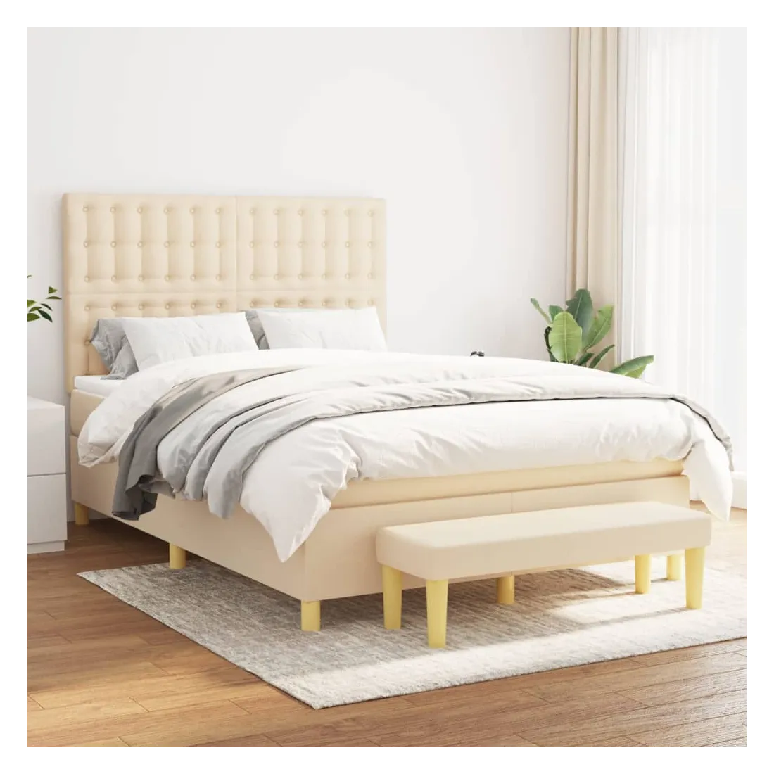 Sommier à lattes de lit avec matelas Crème 140x200 cm Tissu