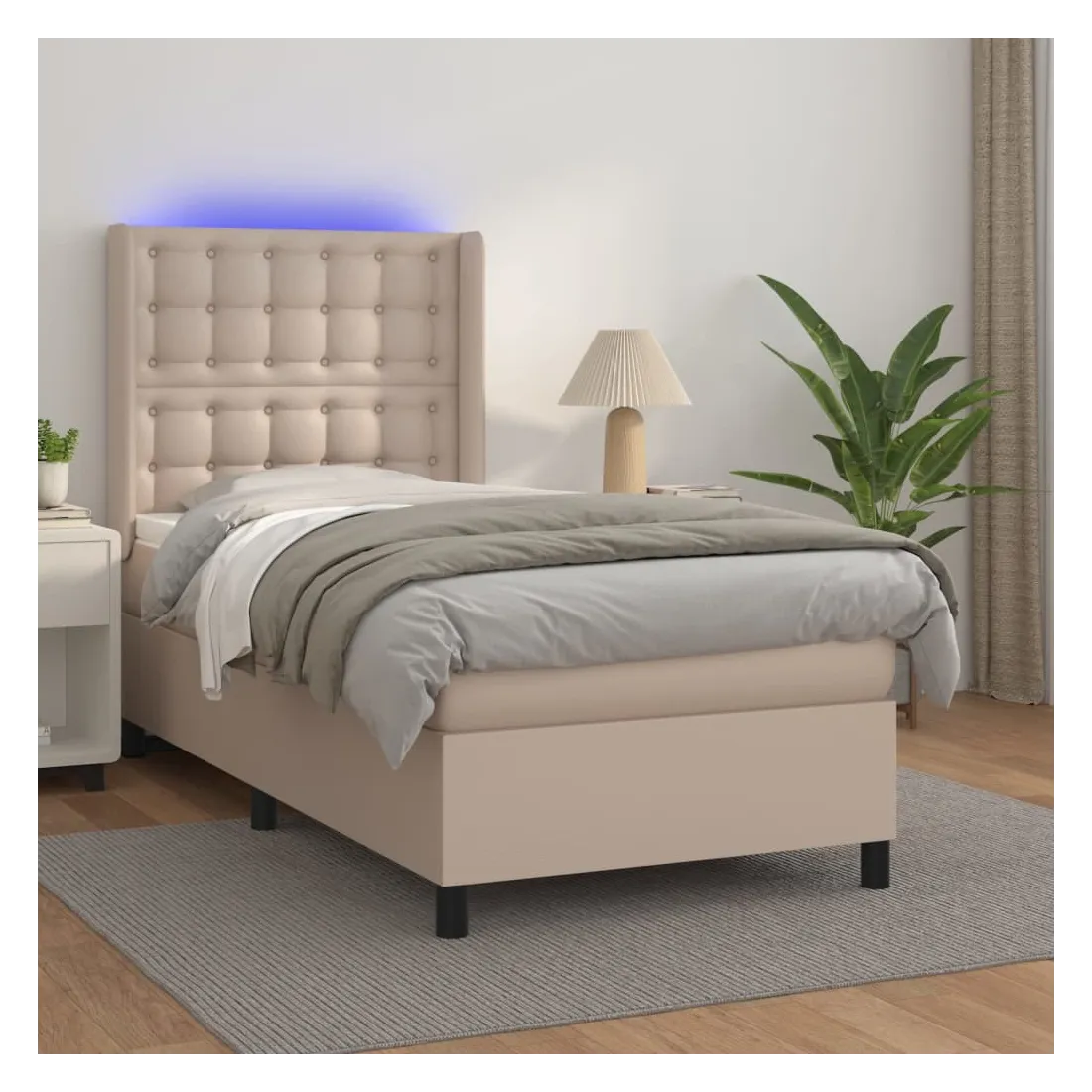 Utilisez ce sommier tapissier avec matelas et LED pour profiter d'un sommeil réparateur ! C'est le point central de votre chambre à coucher. Similicuir durable : le similicuir de qualité supérieure est un matériau très durable. Il est résistant aux taches, ce qui le rend facile à nettoyer avec un chiffon humide. La surface lisse donne également un aspect luxueux et la beauté du cuir véritable.Tête de lit pratique : la tête de lit est réglable en hauteur selon vos préférences. La tête de lit vous offre un excellent soutien du dos lorsque vous êtes assis dans votre lit pour lire ou regarder la télévision.Bande LED colorée : apportez de l'éclairage dans l'obscurité avec des lumières LED colorées !Matelas à ressorts ensachés : le ressort ensaché individuel intégré est connu pour sa très haute qualité tout en assurant un haut niveau de durabilité et d'adaptabilité. Il peut absorber efficacement le bruit et les chocs causés par les sauts et les rotations.Protège-matelas doux pour la peau : le protège-matelas est recouvert d'un tissu résistant et doux pour la peau, ce qui le rend souple et confortable. Remarque :Pour des raisons d'hygiène, le matelas ne peut pas être retourné si l'emballage est retiré ou ouvert.Seule la partie avec un symbole de ciseaux peut être coupée et seule la partie avec l'USB continuera à fonctionner comme avant.Chaque produit est livré avec un manuel de montage dans la boîte pour un montage facile.Ce produit est doté d'un connecteur USB, mais la source d'alimentation certifiée de USB 5V n'est pas incluse.