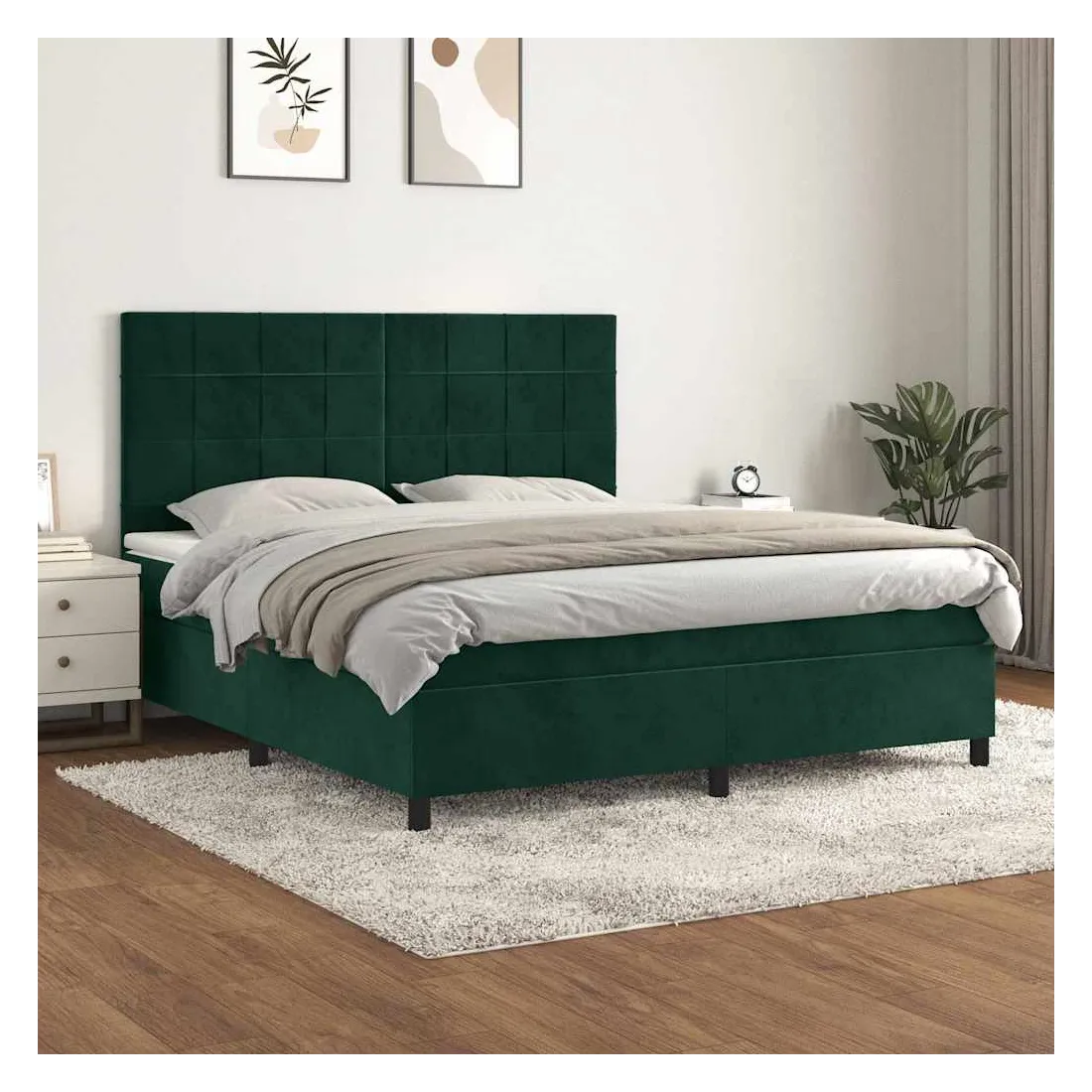 Utilisez ce lit à sommier pour profiter d'une nuit de sommeil réparatrice ! Il vous offre une relaxation maximale et un sommeil agréable. Velours doux : le velours est un tissu doux et luxueux qui se reconnaît à son tas dense de fibres uniformément coupées qui ont une touche lisse. Le tissu en velours présente un toucher doux distinctif, ce qui le rend confortable au toucher.Tête de lit pratique : la tête de lit est réglable en hauteur selon vos préférences. La tête de lit vous offre un excellent soutien du dos lorsque vous êtes assis dans votre lit pour lire ou regarder la télévision.Matelas à ressorts ensachés : le ressort ensaché individuel intégré est connu pour sa très haute qualité tout en assurant un haut niveau de durabilité et d'adaptabilité. Il peut absorber efficacement le bruit et les chocs causés par les sauts et les rotations.Support moyen-dur : ce matelas de lit offre une stabilité accrue et juste le niveau de fermeté sans sacrifier le confort. Il est donc idéal pour les personnes qui dorment sur le dos ou sur le ventre.Protège-matelas doux pour la peau : le protège-matelas est recouvert d'un tissu résistant et doux pour la peau, ce qui le rend souple et confortable. Remarque :Pour des raisons d'hygiène, le matelas ne peut pas être retourné si l'emballage est retiré ou ouvert.Chaque produit est livré avec un manuel de montage dans la boîte pour un montage facile.