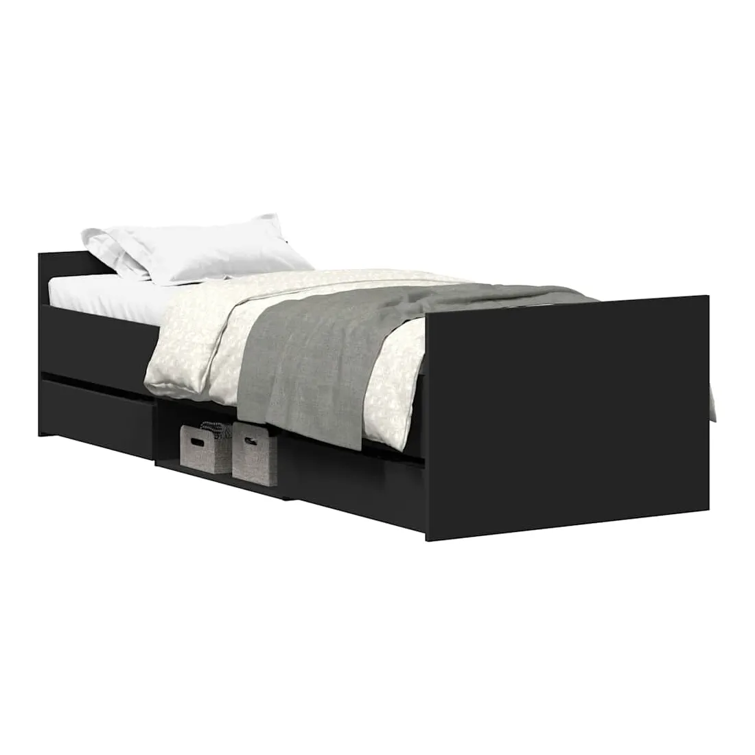 Obtenez une meilleure nuit de sommeil reposante grâce à ce cadre de lit ! Il est un supplément accueillant à toute chambre à coucher. Matériau durable : le bois d'ingénierie est d'une qualité exceptionnelle avec une surface lisse et présente également résistance, stabilité et résistance à l'humidité.Tête de lit et pied de lit fonctionnels : la tête et le pied de lit du sommier maintiennent votre matelas en place. De plus, la tête de lit vous offre un excellent soutien du dos lorsque vous vous asseyez dans le lit pour lire ou regarder la télévision.Grand espace de rangement : ce lit d'appoint dispose de 4 tiroirs et des étagères qui offrent suffisamment d'espace pour ranger vos vêtements, chaussettes, jouets, coussins, etc.Lattes robustes : les lattes de contreplaqué assurent une bonne répartition du poids, garantissant que le matelas reste en place à chaque torsion de votre corps pendant le sommeil. Bon à savoir :Un matelas n'est pas inclus avec ce lit. Nous offrons une sélection variée de matelas. Vous pouvez consulter notre boutique pour trouver un matelas assorti.