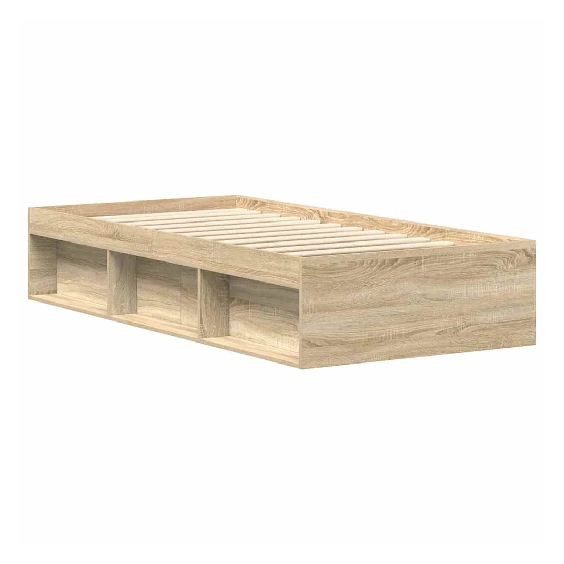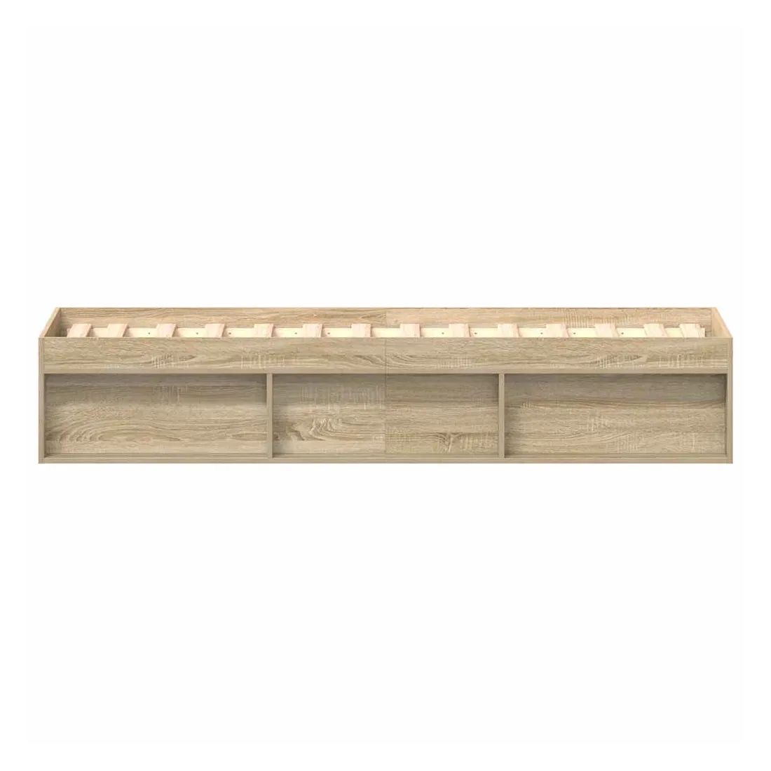 Prenez la voie moderne vers votre chambre à coucher avec ce cadre de lit ! Il sera un supplément pratique et décoratif à votre intérieur. Matériau durable : le bois d'ingénierie est d'une qualité exceptionnelle avec une surface lisse et présente également résistance, stabilité et résistance à l'humidité.Lattes de contreplaqué : les lattes de contreplaqué assurent une bonne répartition du poids, garantissant que le matelas reste en place à chaque torsion de votre corps pendant le sommeil.Espace de rangement supplémentaire : le lit d'appoint dispose d'un total de 6 compartiments sur deux côtés du lit pour ranger des objets comme des livres, des plantes en pot et d'autres décorations. Bon à savoir :Un matelas n'est pas inclus avec ce lit. Nous offrons une sélection variée de matelas. Vous pouvez consulter notre boutique pour trouver un matelas assorti.