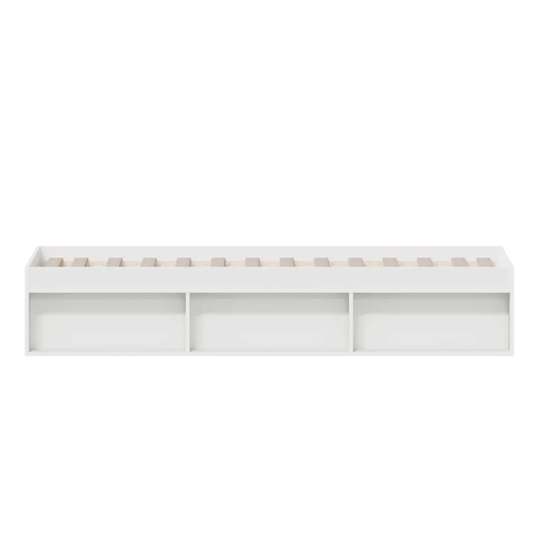 Prenez la voie moderne vers votre chambre à coucher avec ce cadre de lit ! Il sera un supplément pratique et décoratif à votre intérieur. Matériau durable : le bois d'ingénierie est d'une qualité exceptionnelle avec une surface lisse et présente également résistance, stabilité et résistance à l'humidité.Lattes de contreplaqué : les lattes de contreplaqué assurent une bonne répartition du poids, garantissant que le matelas reste en place à chaque torsion de votre corps pendant le sommeil.Espace de rangement supplémentaire : le lit d'appoint dispose d'un total de 6 compartiments sur deux côtés du lit pour ranger des objets comme des livres, des plantes en pot et d'autres décorations. Bon à savoir :Un matelas n'est pas inclus avec ce lit. Nous offrons une sélection variée de matelas. Vous pouvez consulter notre boutique pour trouver un matelas assorti.