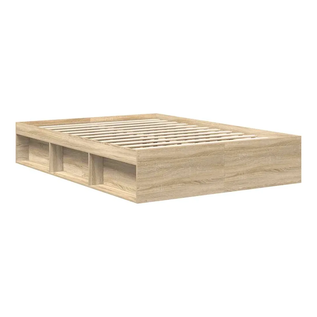 Prenez la voie moderne vers votre chambre à coucher avec ce cadre de lit ! Il sera un supplément pratique et décoratif à votre intérieur. Matériau durable : le bois d'ingénierie est d'une qualité exceptionnelle avec une surface lisse et présente également résistance, stabilité et résistance à l'humidité.Lattes de contreplaqué : les lattes de contreplaqué assurent une bonne répartition du poids, garantissant que le matelas reste en place à chaque torsion de votre corps pendant le sommeil.Espace de rangement supplémentaire : le lit d'appoint dispose d'un total de 6 compartiments sur deux côtés du lit pour ranger des objets comme des livres, des plantes en pot et d'autres décorations. Bon à savoir :Un matelas n'est pas inclus avec ce lit. Nous offrons une sélection variée de matelas. Vous pouvez consulter notre boutique pour trouver un matelas assorti.