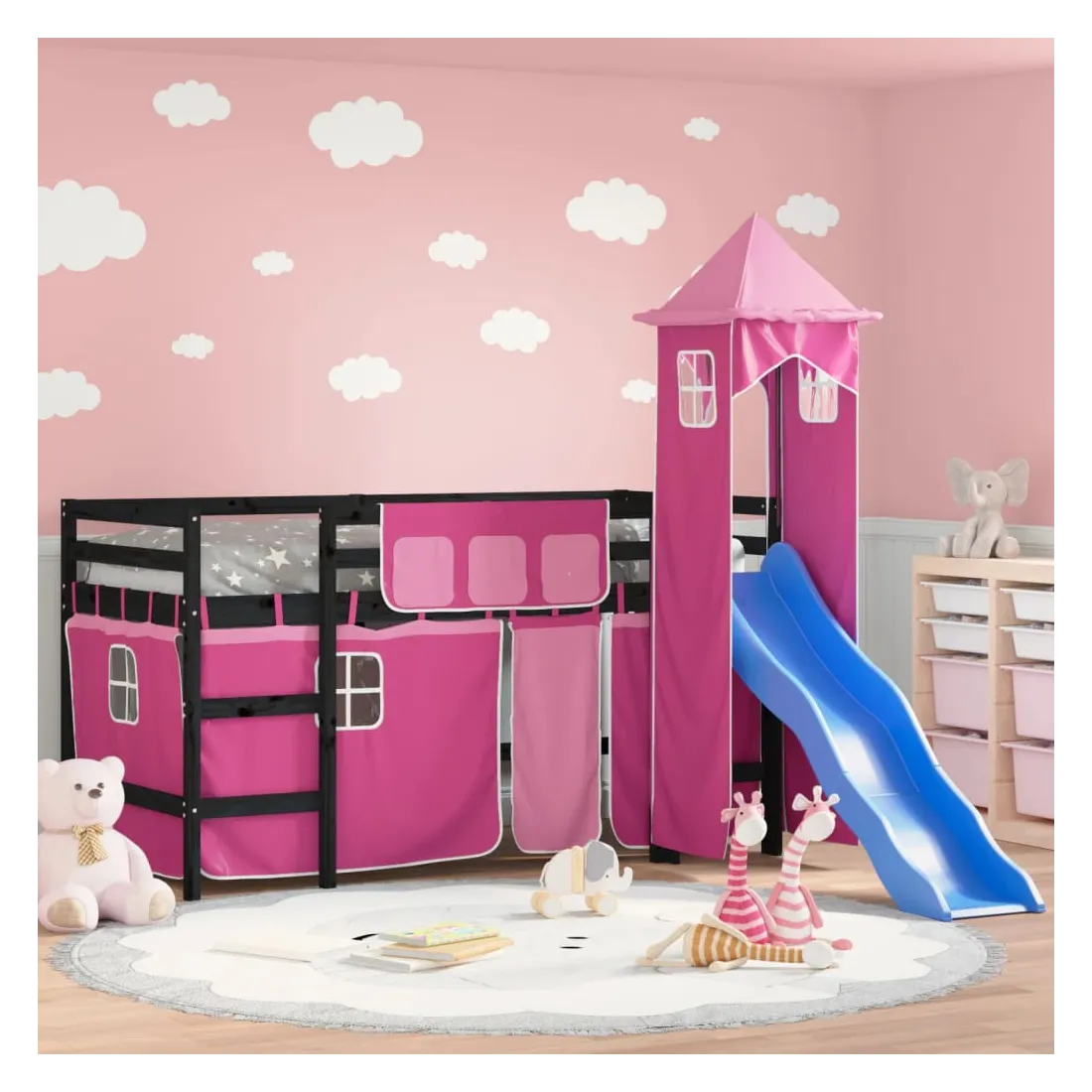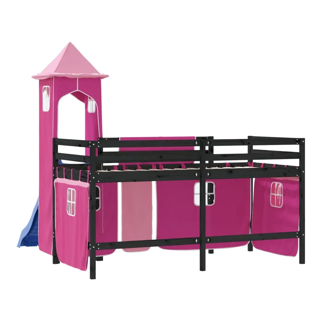 Lit mezzanine enfants avec tour sans matelas rose 80x200 cm