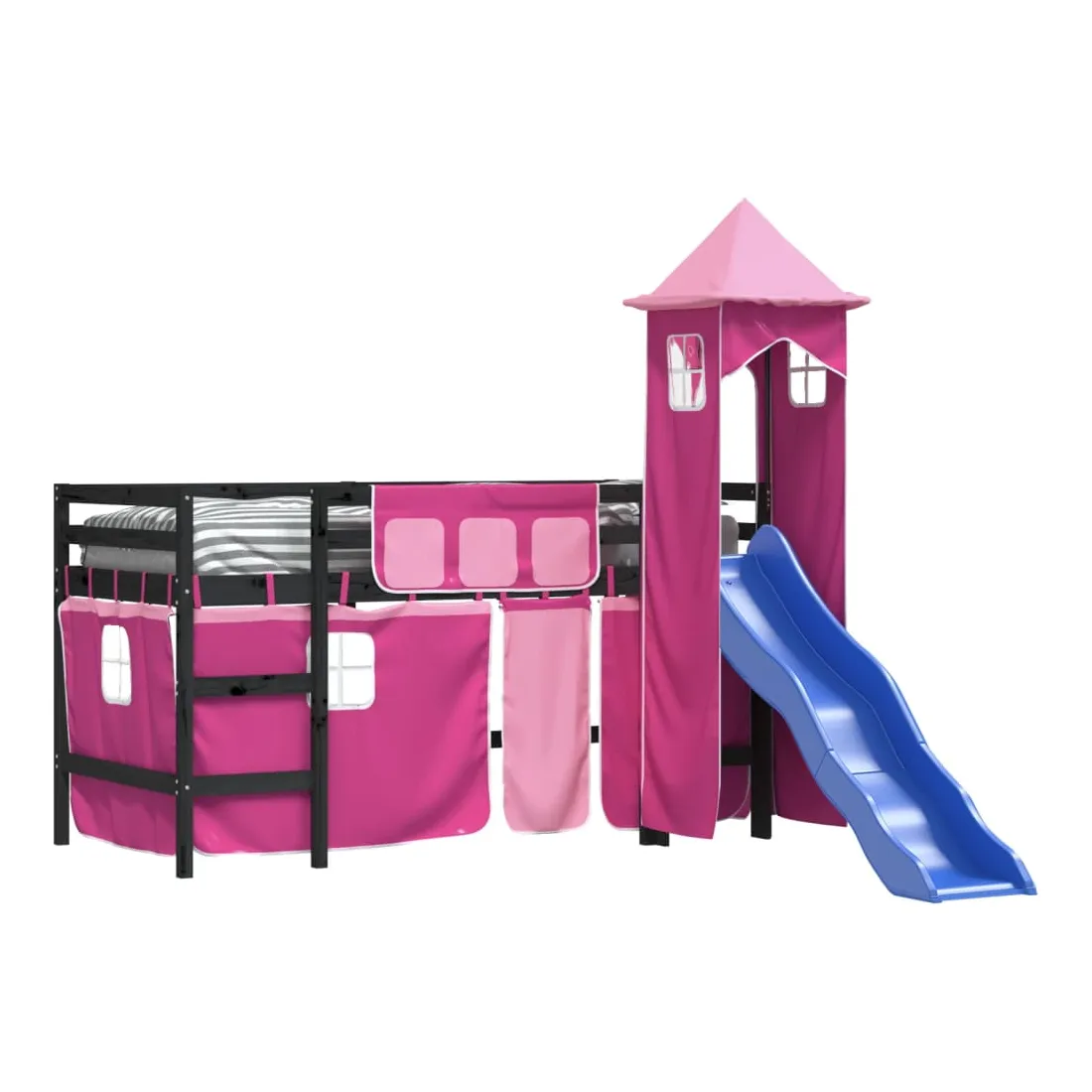 vidaXLCe lit mezzanine pour enfants est fabriqué en pin massif et est conçu pour recevoir et optimiser l'espace. Construction en bois stable : ce lit intermédiaire est fabriqué en bois de pin massif pour plus de stabilité et de durabilité. Le bois de pin a un grain droit et les nœuds donnent au matériau son aspect rustique caractéristique. Utilisation optimale de l'espace : ce lit mezzanine simple est surélevé de 87 cm par rapport au sol, ce qui laisse beaucoup d'espace en dessous pour le rangement ou d'autres activités. Cet espace peut être utilisé pour empiler des boîtes de rangement, ranger de gros jouets ou même placer un canapé pour enfants pour la lecture.Très amusant : vous pouvez combiner les rideaux et la tour avec le cadre de lit pour créer la base secrète de votre enfant, ce qui permet de s'amuser à l'heure du coucher et d'ajouter un point d'intérêt à la chambre !Barrières de sécurité : le lit mezzanine pour enfants est équipé de garde-corps de sécurité sur les 4 côtés, afin que votre enfant puisse dormir sans craindre de tomber. Échelle et toboggan pratiques : ce lit mi-hauteur pour enfants est doté d'un toboggan amusant qui apporte de la joie et transforme leur chambre en une aire de jeux intérieure. La combinaison d'une échelle d'escalade et d'un toboggan rend l'heure du coucher plus vivante et plus intéressante pour les enfants. Bon à savoir :Un matelas n'est pas inclus avec ce lit. Nous offrons une sélection variée de matelas. Vous pouvez consulter notre boutique pour trouver un matelas assorti. Attention :Pour éviter qu'il ne soit renversé, ce produit doit être utilisé avec le dispositif de fixation au mur fourni.