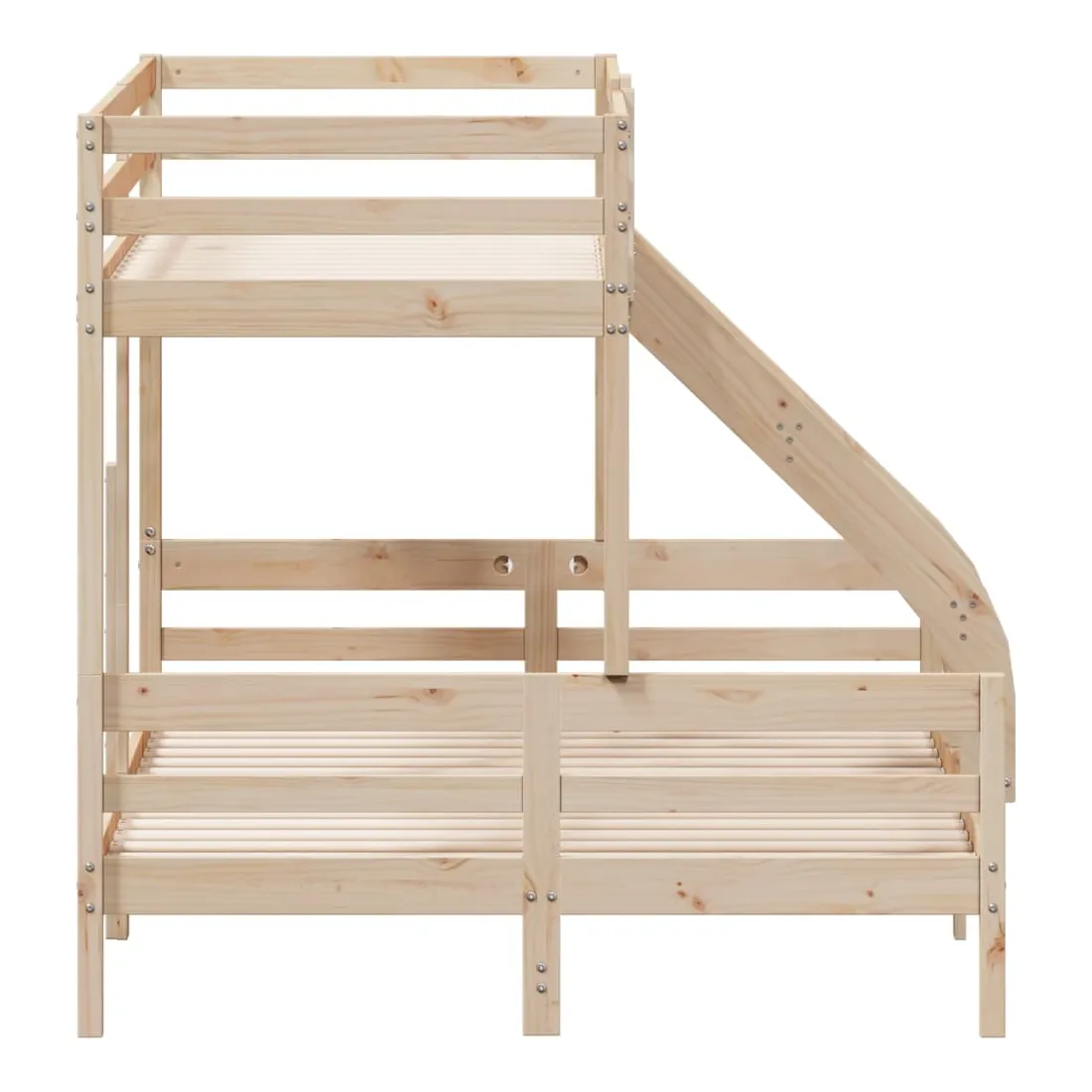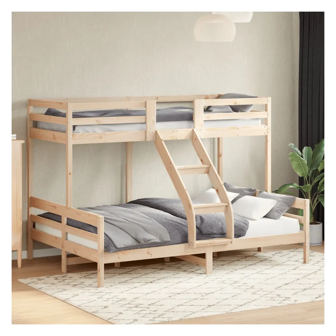 Ce lit superposé en bois est élégant et fonctionnel, ce qui en fait un supplément parfait à toute pièce dont l'espace est limité. Bois de pin massif : le bois de pin massif est un matériau naturel magnifique. Le bois de pin a un grain droit et les nœuds donnent au matériau son aspect caractéristique et rustique.Design sûr : le lit surélevé est conçu dans un souci de sécurité. Il comprend des garde-corps qui empêchent l'utilisateur de rouler pendant son sommeil.Convient aux espaces limités : le cadre de lit est un excellent choix pour toute pièce dont l'espace est limité, il fournit deux lits individuels avec un design compact. Bon à savoir :La livraison comprend uniquement un cadre de lit. Le matelas n'est pas inclus. Vous pouvez consulter notre boutique pour trouver les matelas assortis.