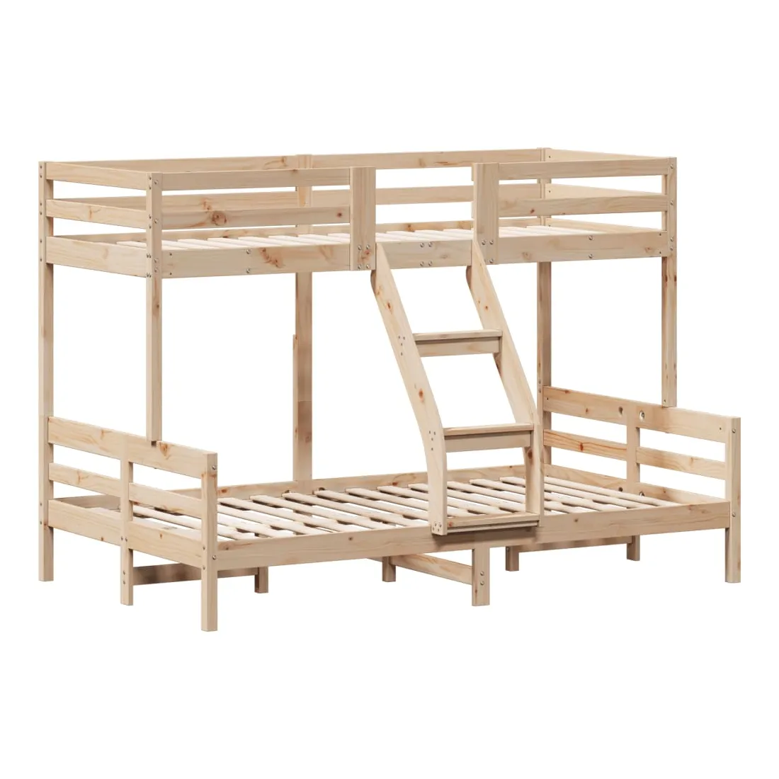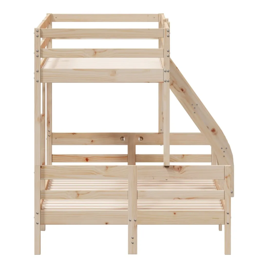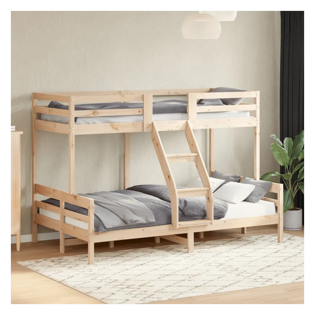 Ce lit superposé en bois est élégant et fonctionnel, ce qui en fait un supplément parfait à toute pièce dont l'espace est limité. Bois de pin massif : le bois de pin massif est un matériau naturel magnifique. Le bois de pin a un grain droit et les nœuds donnent au matériau son aspect caractéristique et rustique.Design sûr : le lit surélevé est conçu dans un souci de sécurité. Il comprend des garde-corps qui empêchent l'utilisateur de rouler pendant son sommeil.Convient aux espaces limités : le cadre de lit est un excellent choix pour toute pièce dont l'espace est limité, il fournit deux lits individuels avec un design compact. Bon à savoir :La livraison comprend uniquement un cadre de lit. Le matelas n'est pas inclus. Vous pouvez consulter notre boutique pour trouver les matelas assortis.