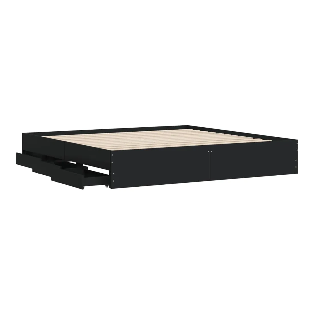 Ajoutez une touche moderne à votre chambre à coucher avec ce cadre de lit avec tiroirs ! Il apportera une touche pratique et décorative à votre espace de vie. Matériau durable : le cadre de lit est fabriquée en bois d'ingénierie. Le bois d'ingénierie est d'une qualité exceptionnelle avec une surface lisse et présente également de la résistance, de la stabilité et de la résistance à l'humidité.Lattes robustes : les lattes de contreplaqué assurent une bonne répartition du poids, garantissant que le matelas reste en place à chaque torsion de votre corps pendant le sommeil.Fonction de rangement : les tiroirs de lit inclus offrent suffisamment d'espace de rangement pour ranger vos articles essentiels, gardant votre pièce propre et bien rangée. Bon à savoir :Un matelas n'est pas inclus avec ce lit. Nous offrons une sélection variée de matelas. Vous pouvez consulter notre boutique pour trouver un matelas assorti.