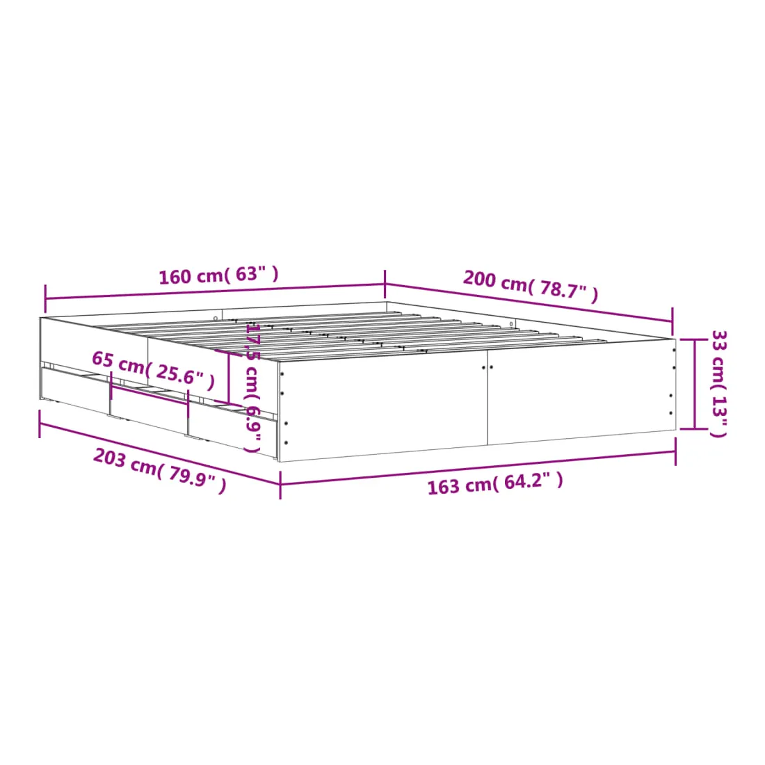 - Dimensions du matelas correspondant : 160 x 200 cm (l x L) (matelas non inclus)