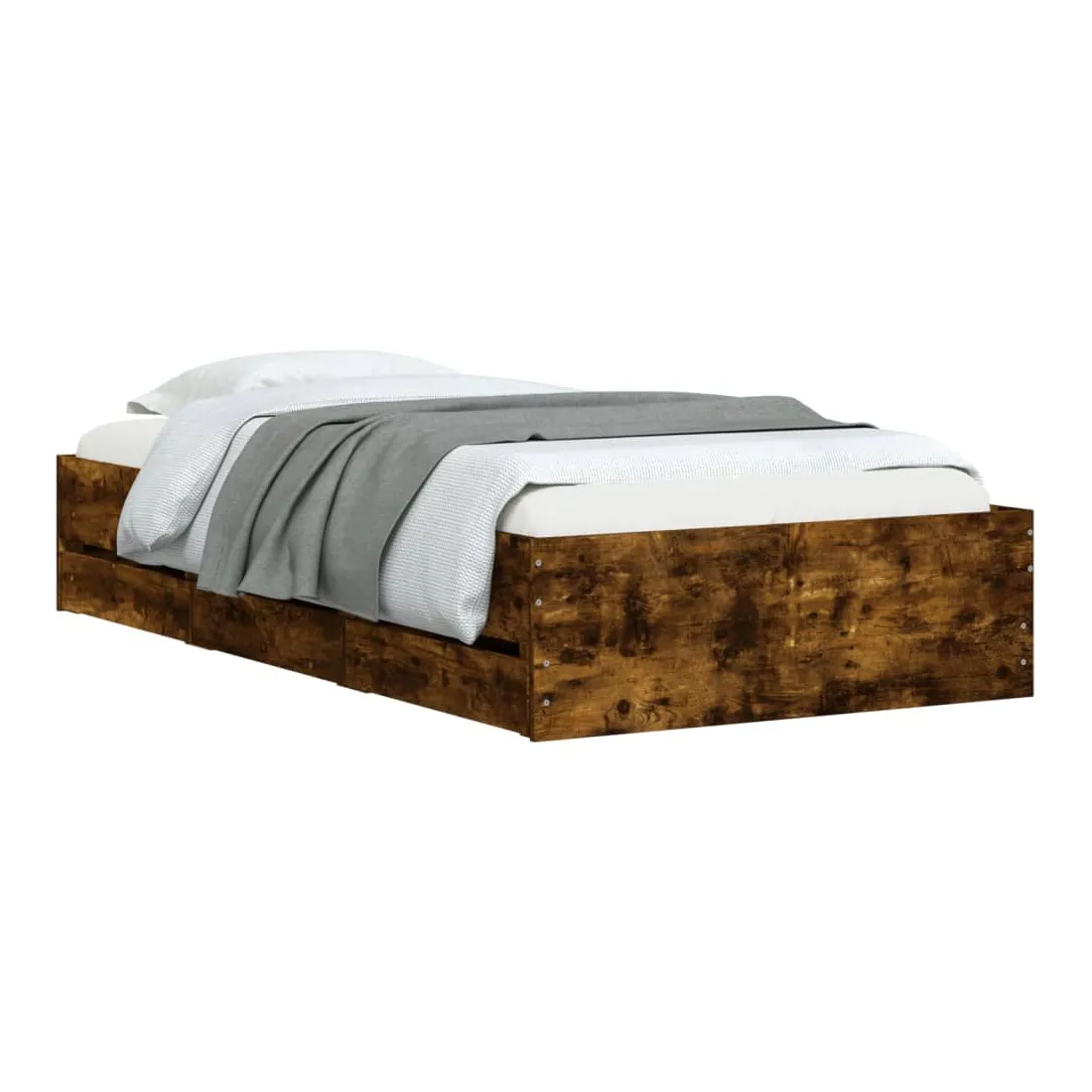 Ajoutez une touche moderne à votre chambre à coucher avec ce cadre de lit avec tiroirs ! Il apportera une touche pratique et décorative à votre espace de vie. Matériau durable : le cadre de lit est fabriquée en bois d'ingénierie. Le bois d'ingénierie est d'une qualité exceptionnelle avec une surface lisse et présente également de la résistance, de la stabilité et de la résistance à l'humidité.Lattes robustes : les lattes de contreplaqué assurent une bonne répartition du poids, garantissant que le matelas reste en place à chaque torsion de votre corps pendant le sommeil.Fonction de rangement : les tiroirs de lit inclus offrent suffisamment d'espace de rangement pour ranger vos articles essentiels, gardant votre pièce propre et bien rangée. Bon à savoir :Un matelas n'est pas inclus avec ce lit. Nous offrons une sélection variée de matelas. Vous pouvez consulter notre boutique pour trouver un matelas assorti.
