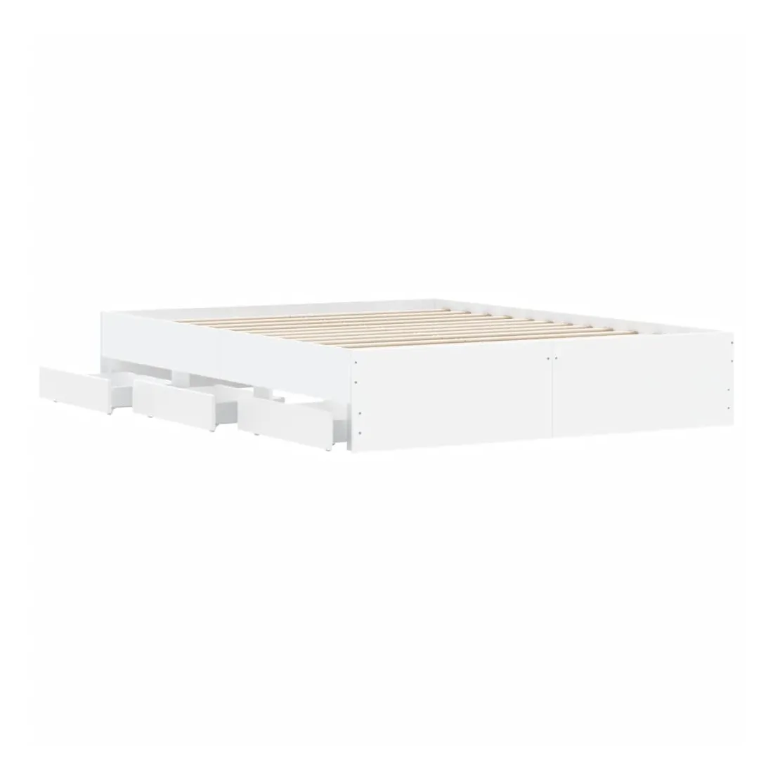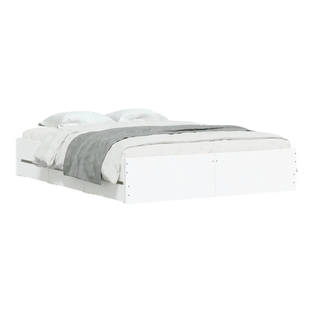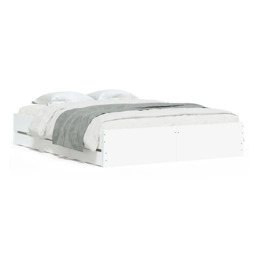 Ajoutez une touche moderne à votre chambre à coucher avec ce cadre de lit avec tiroirs ! Il apportera une touche pratique et décorative à votre espace de vie. Matériau durable : le cadre de lit est fabriquée en bois d'ingénierie. Le bois d'ingénierie est d'une qualité exceptionnelle avec une surface lisse et présente également de la résistance, de la stabilité et de la résistance à l'humidité.Lattes robustes : les lattes de contreplaqué assurent une bonne répartition du poids, garantissant que le matelas reste en place à chaque torsion de votre corps pendant le sommeil.Fonction de rangement : les tiroirs de lit inclus offrent suffisamment d'espace de rangement pour ranger vos articles essentiels, gardant votre pièce propre et bien rangée. Bon à savoir :Un matelas n'est pas inclus avec ce lit. Nous offrons une sélection variée de matelas. Vous pouvez consulter notre boutique pour trouver un matelas assorti.