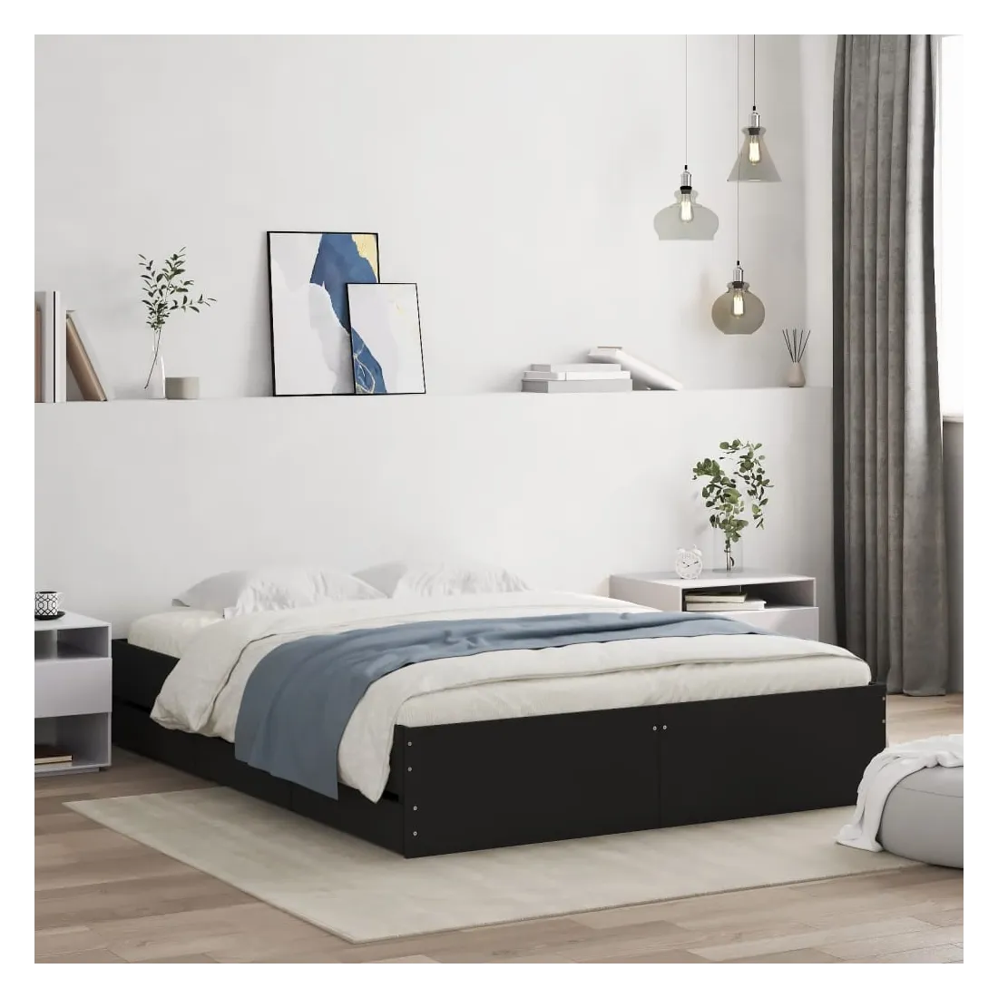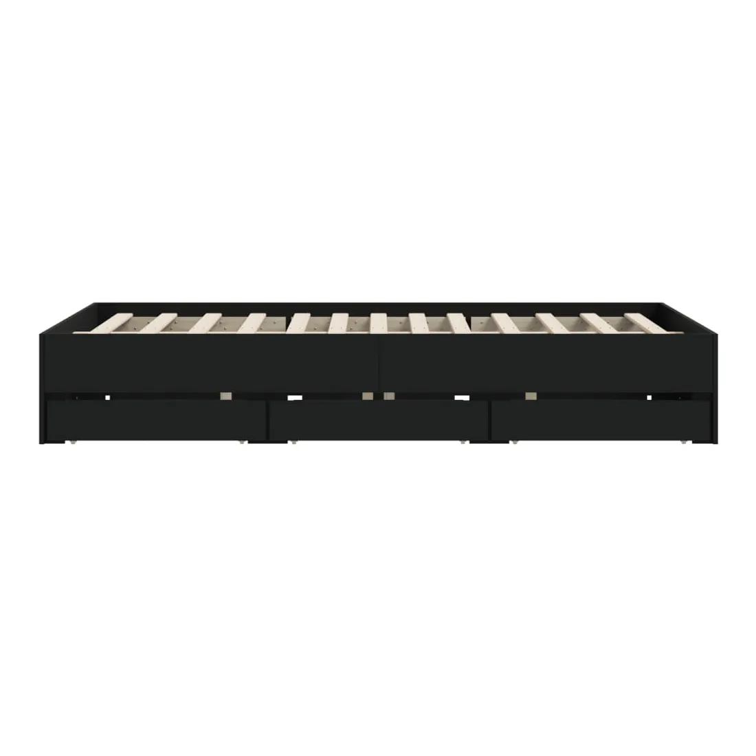 Ajoutez une touche moderne à votre chambre à coucher avec ce cadre de lit avec tiroirs ! Il apportera une touche pratique et décorative à votre espace de vie. Matériau durable : le cadre de lit est fabriquée en bois d'ingénierie. Le bois d'ingénierie est d'une qualité exceptionnelle avec une surface lisse et présente également de la résistance, de la stabilité et de la résistance à l'humidité.Lattes robustes : les lattes de contreplaqué assurent une bonne répartition du poids, garantissant que le matelas reste en place à chaque torsion de votre corps pendant le sommeil.Fonction de rangement : les tiroirs de lit inclus offrent suffisamment d'espace de rangement pour ranger vos articles essentiels, gardant votre pièce propre et bien rangée. Bon à savoir :Un matelas n'est pas inclus avec ce lit. Nous offrons une sélection variée de matelas. Vous pouvez consulter notre boutique pour trouver un matelas assorti.