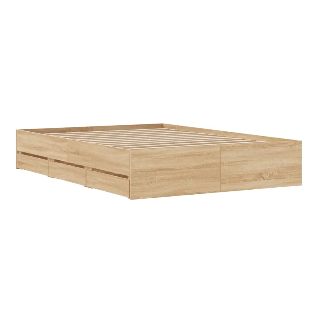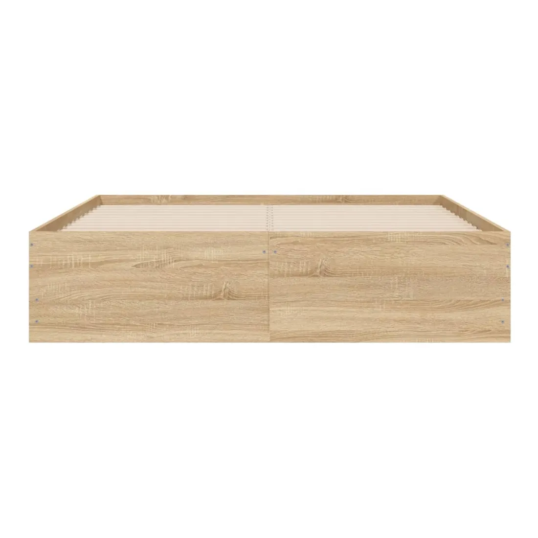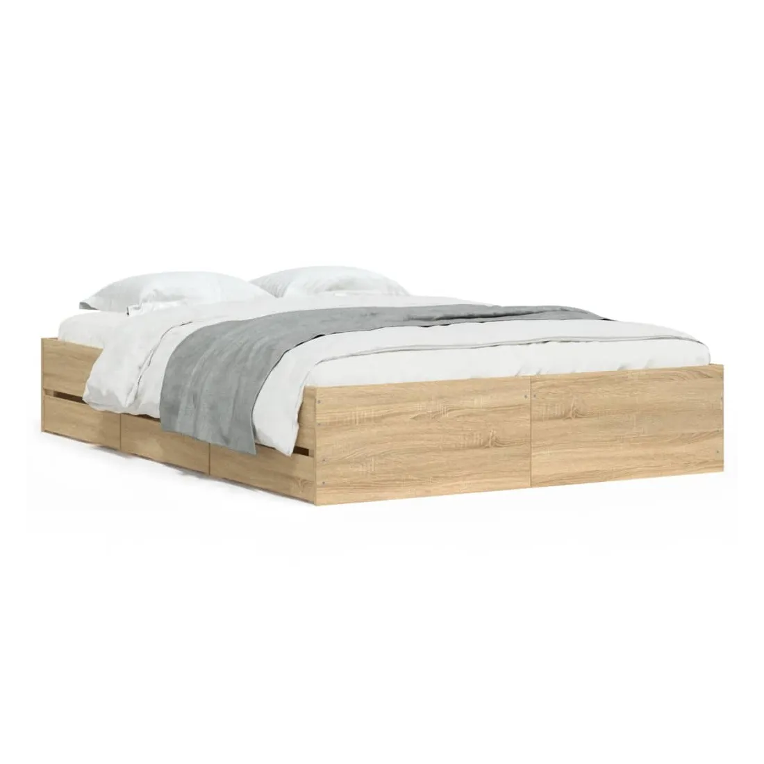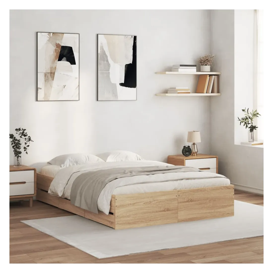 Ajoutez une touche moderne à votre chambre à coucher avec ce cadre de lit avec tiroirs ! Il apportera une touche pratique et décorative à votre espace de vie. Matériau durable : le cadre de lit est fabriquée en bois d'ingénierie. Le bois d'ingénierie est d'une qualité exceptionnelle avec une surface lisse et présente également de la résistance, de la stabilité et de la résistance à l'humidité.Lattes robustes : les lattes de contreplaqué assurent une bonne répartition du poids, garantissant que le matelas reste en place à chaque torsion de votre corps pendant le sommeil.Fonction de rangement : les tiroirs de lit inclus offrent suffisamment d'espace de rangement pour ranger vos articles essentiels, gardant votre pièce propre et bien rangée. Bon à savoir :Un matelas n'est pas inclus avec ce lit. Nous offrons une sélection variée de matelas. Vous pouvez consulter notre boutique pour trouver un matelas assorti.