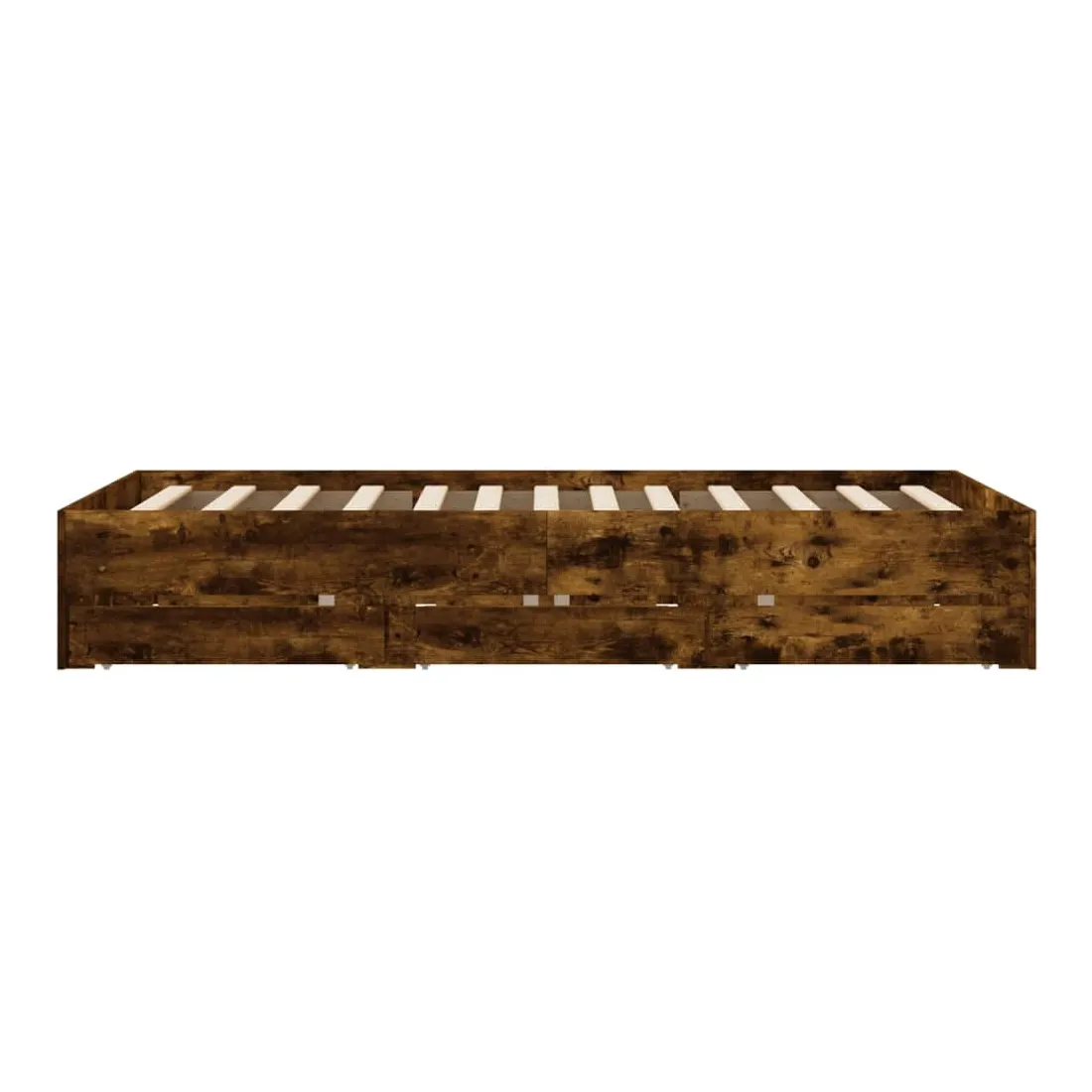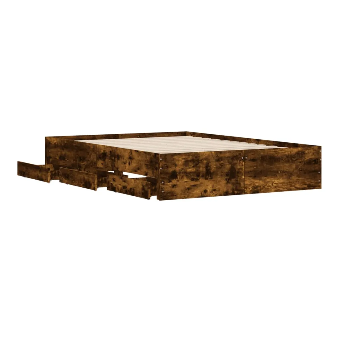 Ajoutez une touche moderne à votre chambre à coucher avec ce cadre de lit avec tiroirs ! Il apportera une touche pratique et décorative à votre espace de vie. Matériau durable : le cadre de lit est fabriquée en bois d'ingénierie. Le bois d'ingénierie est d'une qualité exceptionnelle avec une surface lisse et présente également de la résistance, de la stabilité et de la résistance à l'humidité.Lattes robustes : les lattes de contreplaqué assurent une bonne répartition du poids, garantissant que le matelas reste en place à chaque torsion de votre corps pendant le sommeil.Fonction de rangement : les tiroirs de lit inclus offrent suffisamment d'espace de rangement pour ranger vos articles essentiels, gardant votre pièce propre et bien rangée. Bon à savoir :Un matelas n'est pas inclus avec ce lit. Nous offrons une sélection variée de matelas. Vous pouvez consulter notre boutique pour trouver un matelas assorti.