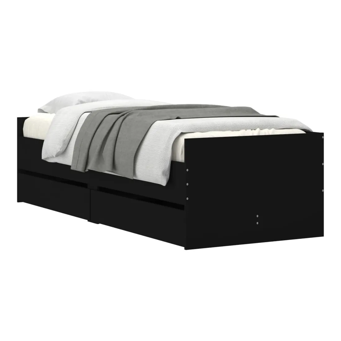 Ajoutez une touche moderne à votre chambre à coucher avec ce cadre de lit avec tiroirs ! Il apportera une touche pratique et décorative à votre espace de vie. Matériau durable : le cadre de lit est fabriquée en bois d'ingénierie. Le bois d'ingénierie est d'une qualité exceptionnelle avec une surface lisse et présente également de la résistance, de la stabilité et de la résistance à l'humidité.Lattes robustes : les lattes de contreplaqué assurent une bonne répartition du poids, garantissant que le matelas reste en place à chaque torsion de votre corps pendant le sommeil.Fonction de rangement : les tiroirs de lit inclus offrent suffisamment d'espace de rangement pour ranger vos articles essentiels, gardant votre pièce propre et bien rangée. Bon à savoir :Un matelas n'est pas inclus avec ce lit. Nous offrons une sélection variée de matelas. Vous pouvez consulter notre boutique pour trouver un matelas assorti.