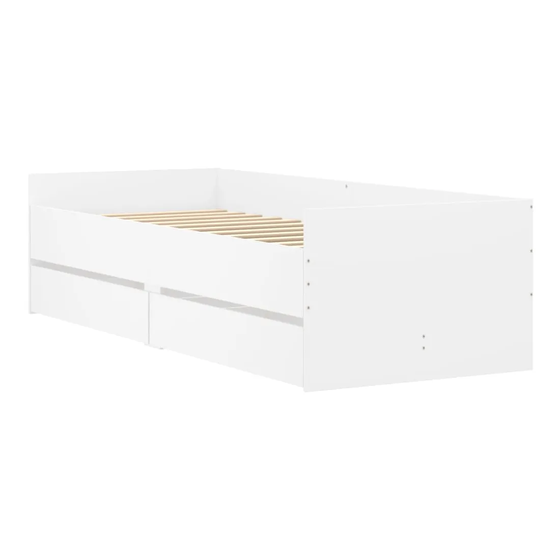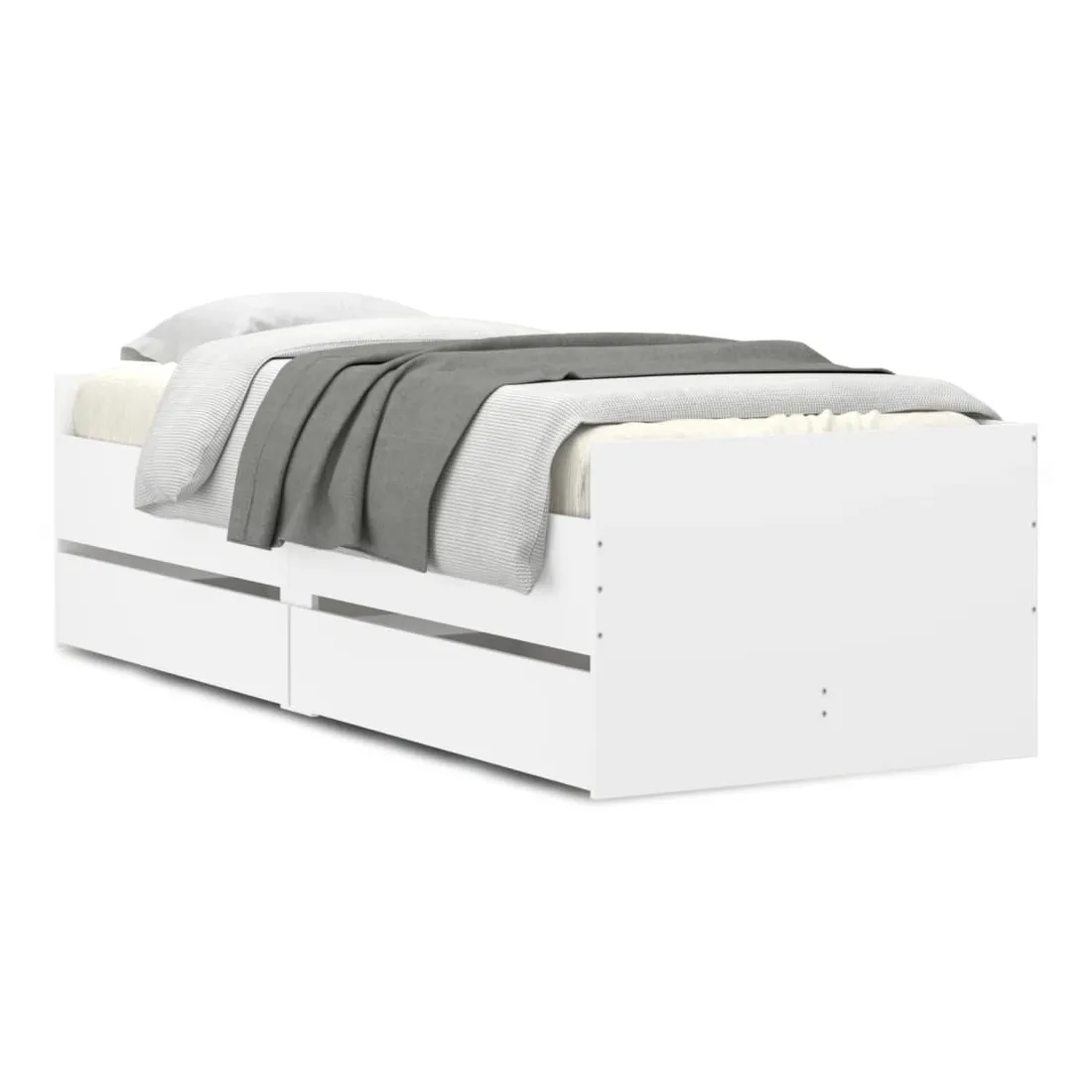 Ajoutez une touche moderne à votre chambre à coucher avec ce cadre de lit avec tiroirs ! Il apportera une touche pratique et décorative à votre espace de vie. Matériau durable : le cadre de lit est fabriquée en bois d'ingénierie. Le bois d'ingénierie est d'une qualité exceptionnelle avec une surface lisse et présente également de la résistance, de la stabilité et de la résistance à l'humidité.Lattes robustes : les lattes de contreplaqué assurent une bonne répartition du poids, garantissant que le matelas reste en place à chaque torsion de votre corps pendant le sommeil.Fonction de rangement : les tiroirs de lit inclus offrent suffisamment d'espace de rangement pour ranger vos articles essentiels, gardant votre pièce propre et bien rangée. Bon à savoir :Un matelas n'est pas inclus avec ce lit. Nous offrons une sélection variée de matelas. Vous pouvez consulter notre boutique pour trouver un matelas assorti.