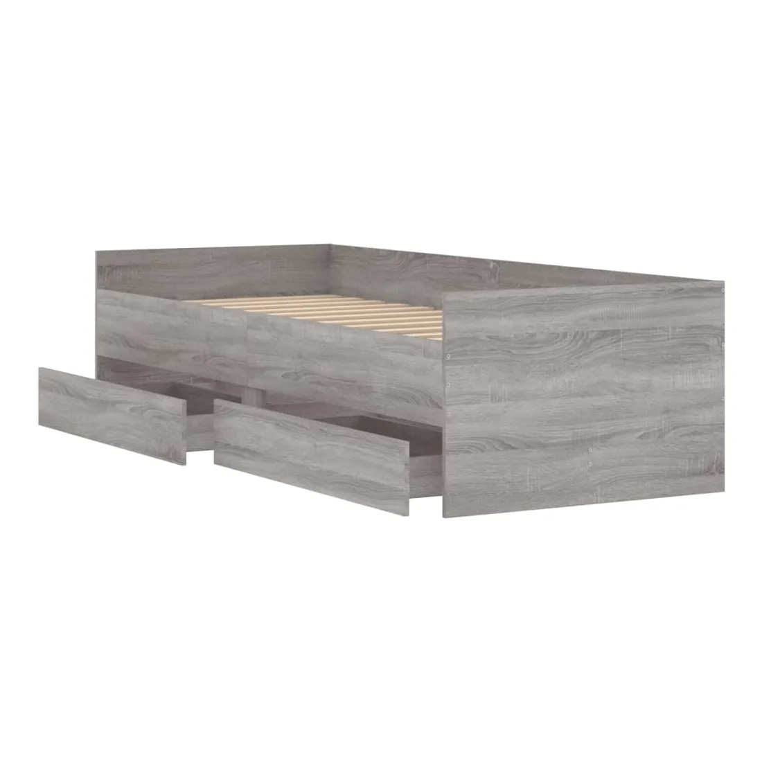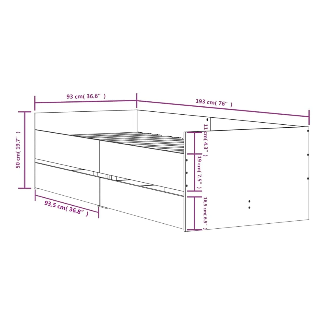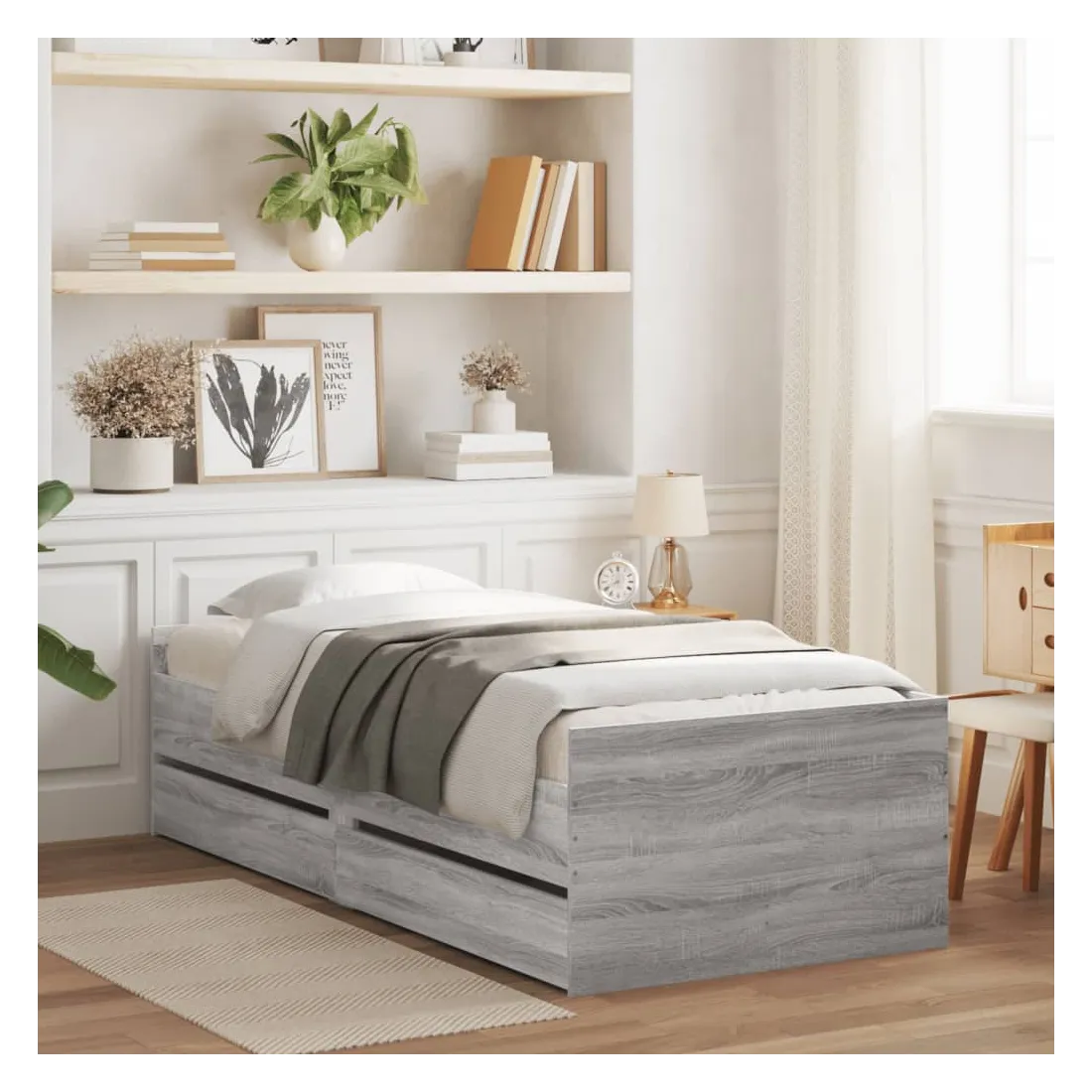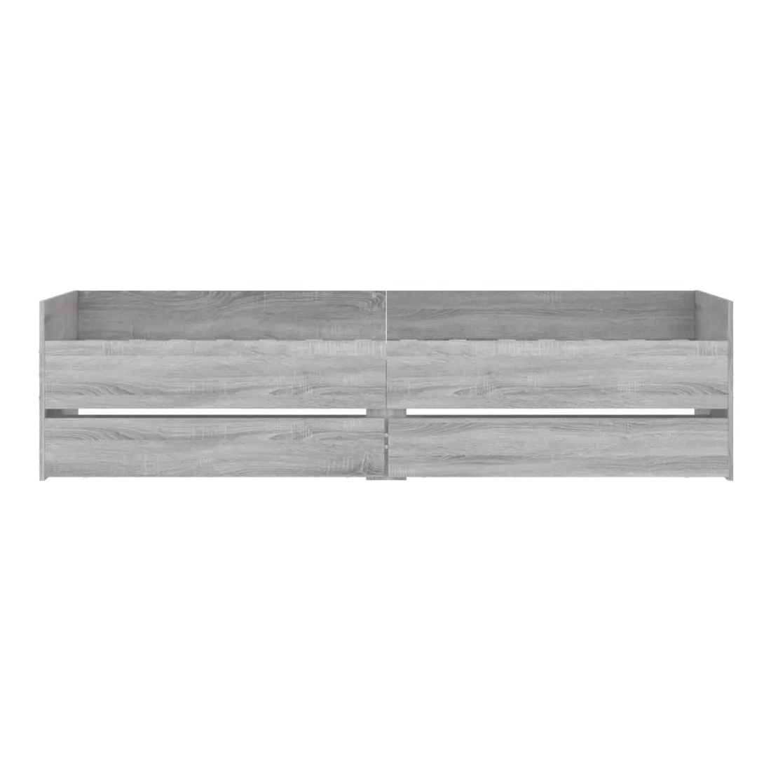 Ajoutez une touche moderne à votre chambre à coucher avec ce cadre de lit avec tiroirs ! Il apportera une touche pratique et décorative à votre espace de vie. Matériau durable : le cadre de lit est fabriquée en bois d'ingénierie. Le bois d'ingénierie est d'une qualité exceptionnelle avec une surface lisse et présente également de la résistance, de la stabilité et de la résistance à l'humidité.Lattes robustes : les lattes de contreplaqué assurent une bonne répartition du poids, garantissant que le matelas reste en place à chaque torsion de votre corps pendant le sommeil.Fonction de rangement : les tiroirs de lit inclus offrent suffisamment d'espace de rangement pour ranger vos articles essentiels, gardant votre pièce propre et bien rangée. Bon à savoir :Un matelas n'est pas inclus avec ce lit. Nous offrons une sélection variée de matelas. Vous pouvez consulter notre boutique pour trouver un matelas assorti.