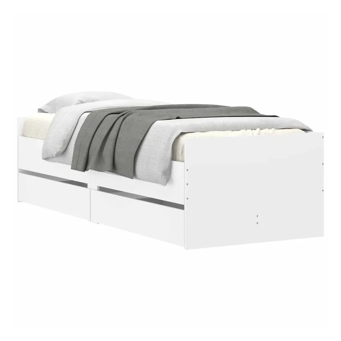Ajoutez une touche moderne à votre chambre à coucher avec ce cadre de lit avec tiroirs ! Il apportera une touche pratique et décorative à votre espace de vie. Matériau durable : le cadre de lit est fabriquée en bois d'ingénierie. Le bois d'ingénierie est d'une qualité exceptionnelle avec une surface lisse et présente également de la résistance, de la stabilité et de la résistance à l'humidité.Lattes robustes : les lattes de contreplaqué assurent une bonne répartition du poids, garantissant que le matelas reste en place à chaque torsion de votre corps pendant le sommeil.Fonction de rangement : les tiroirs de lit inclus offrent suffisamment d'espace de rangement pour ranger vos articles essentiels, gardant votre pièce propre et bien rangée. Bon à savoir :Un matelas n'est pas inclus avec ce lit. Nous offrons une sélection variée de matelas. Vous pouvez consulter notre boutique pour trouver un matelas assorti.