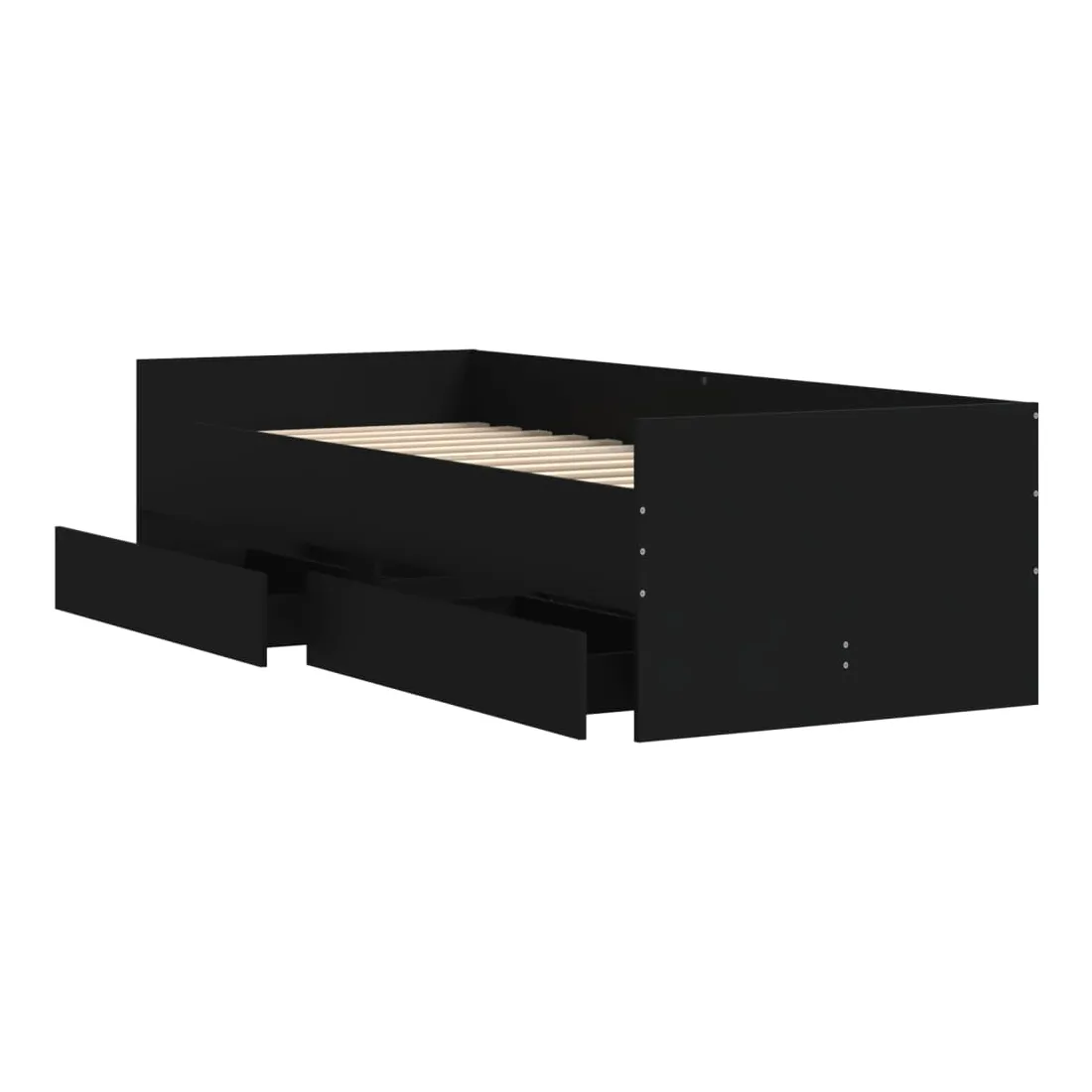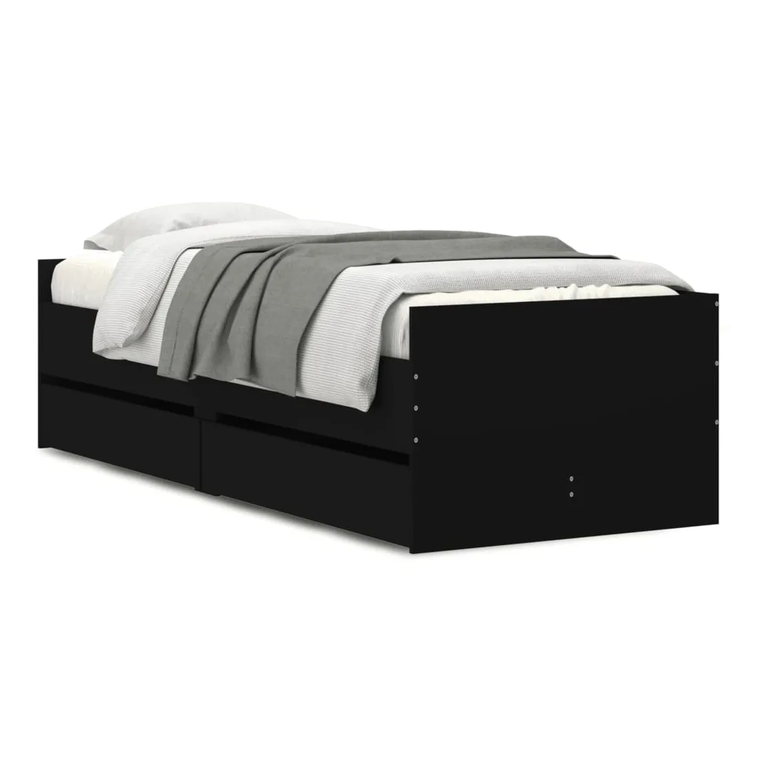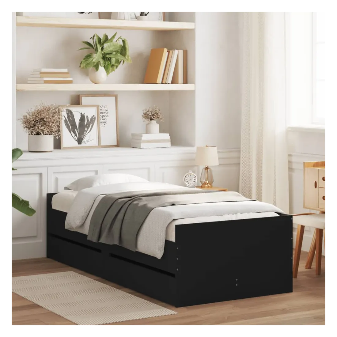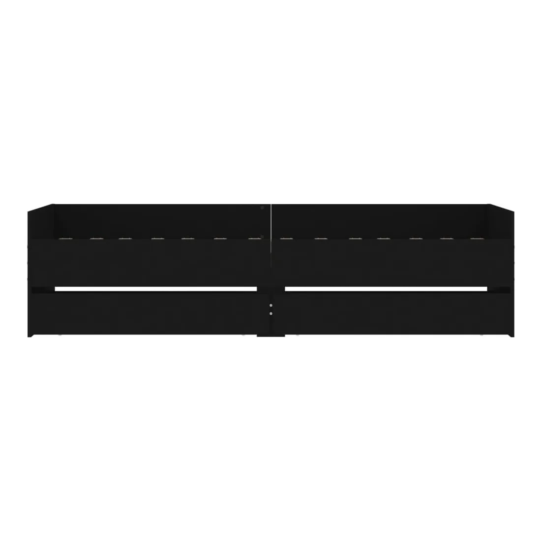 Ajoutez une touche moderne à votre chambre à coucher avec ce cadre de lit avec tiroirs ! Il apportera une touche pratique et décorative à votre espace de vie. Matériau durable : le cadre de lit est fabriquée en bois d'ingénierie. Le bois d'ingénierie est d'une qualité exceptionnelle avec une surface lisse et présente également de la résistance, de la stabilité et de la résistance à l'humidité.Lattes robustes : les lattes de contreplaqué assurent une bonne répartition du poids, garantissant que le matelas reste en place à chaque torsion de votre corps pendant le sommeil.Fonction de rangement : les tiroirs de lit inclus offrent suffisamment d'espace de rangement pour ranger vos articles essentiels, gardant votre pièce propre et bien rangée. Bon à savoir :Un matelas n'est pas inclus avec ce lit. Nous offrons une sélection variée de matelas. Vous pouvez consulter notre boutique pour trouver un matelas assorti.
