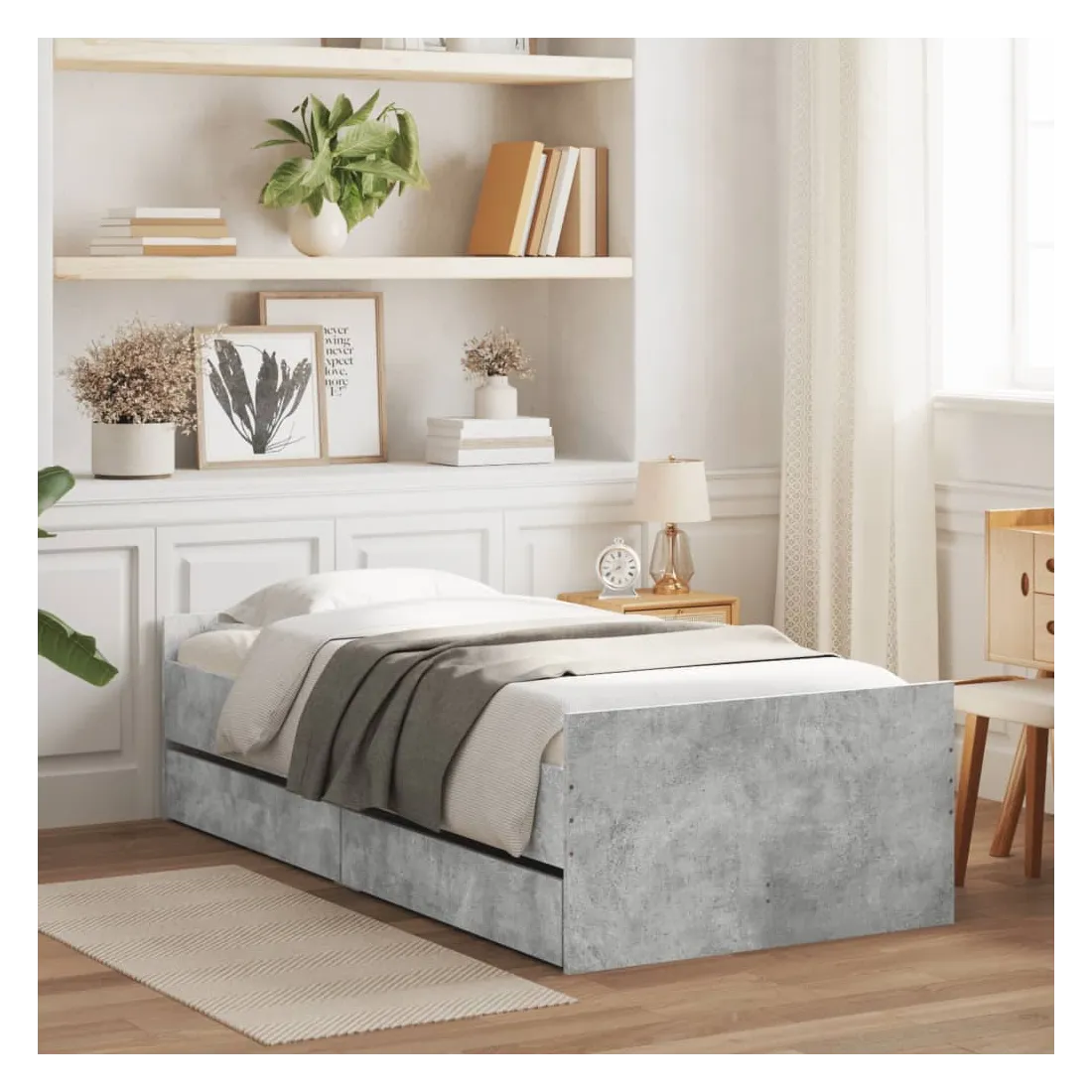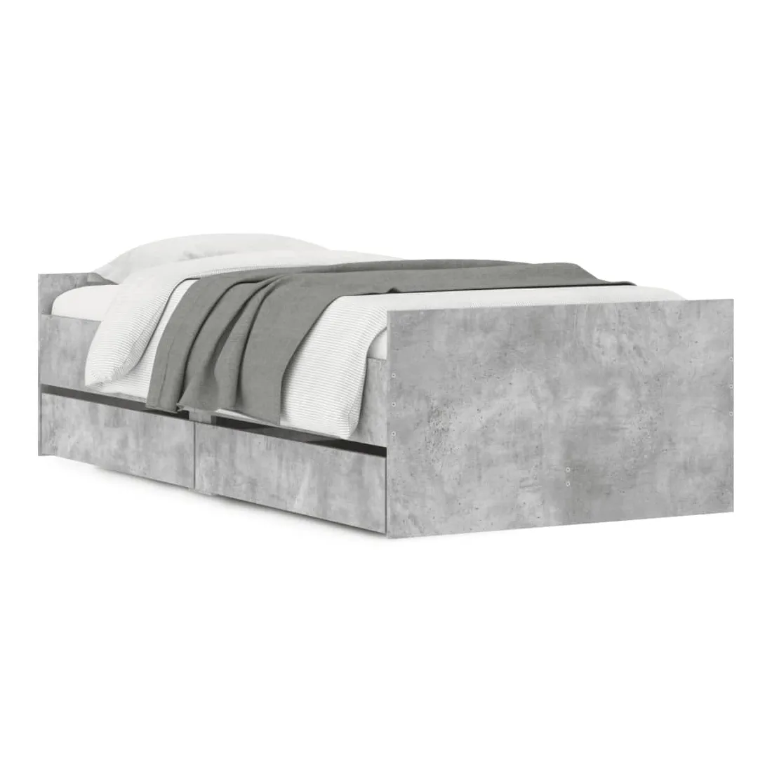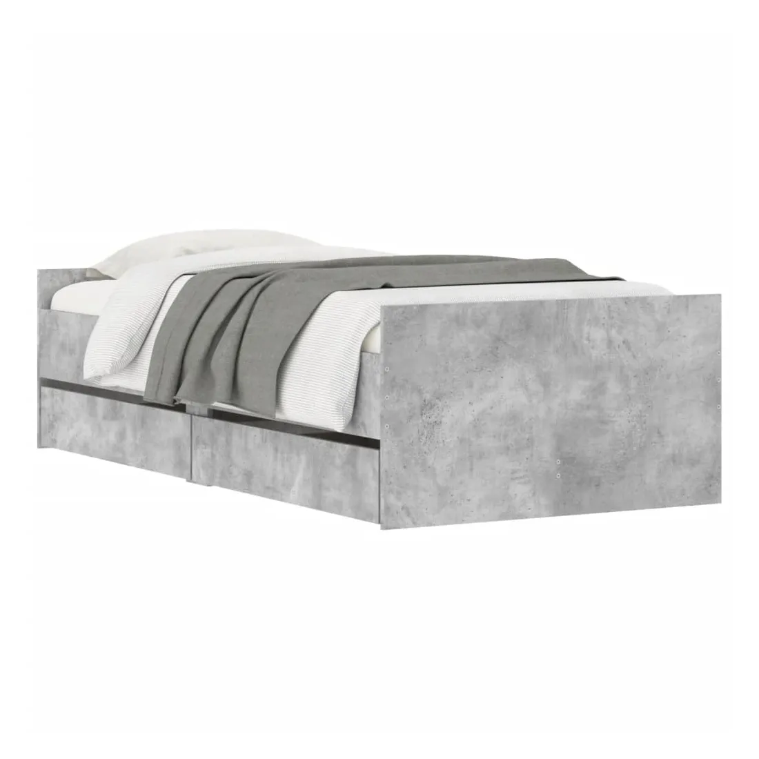 Cadre de lit avec tiroirs sans matelas gris béton 100x200 cm