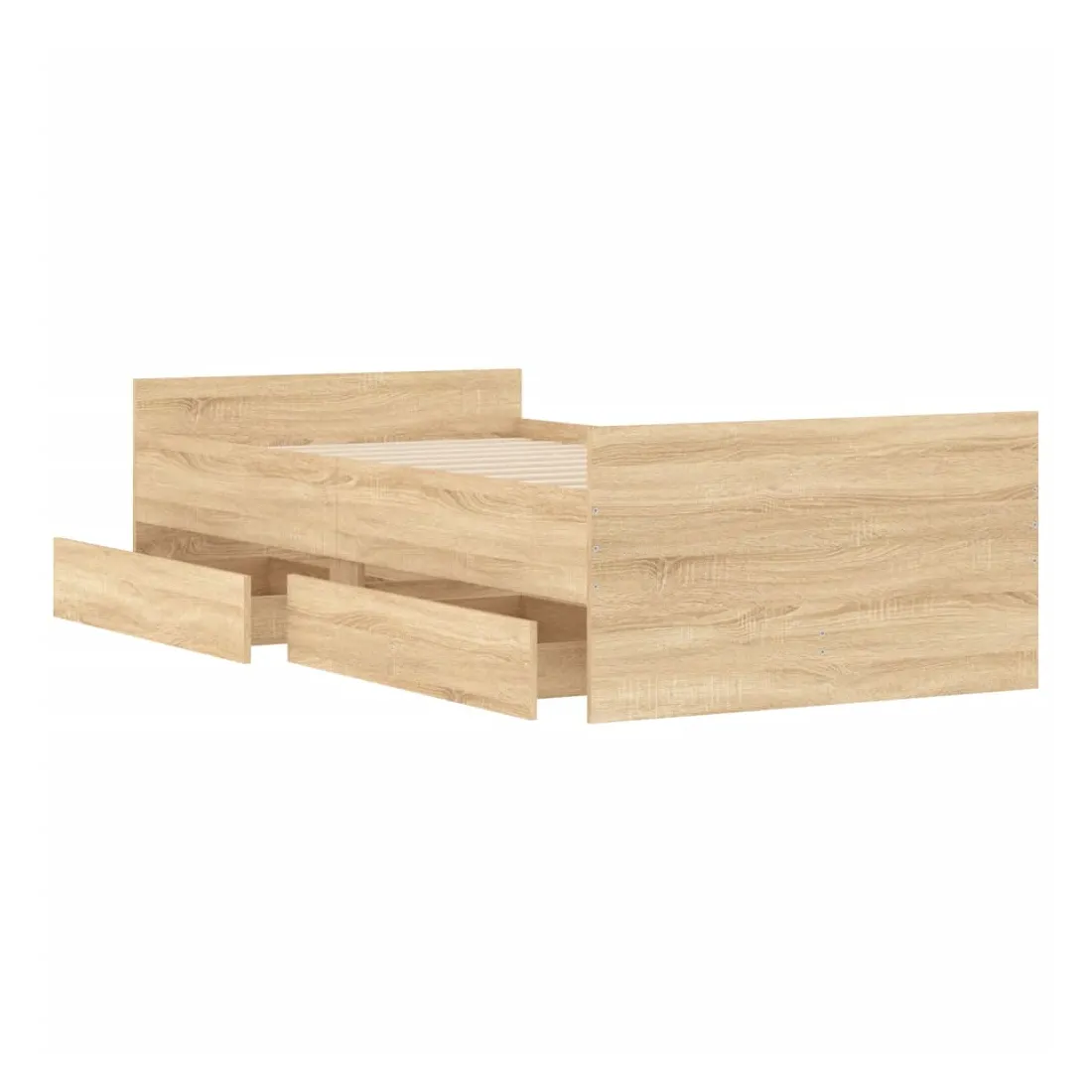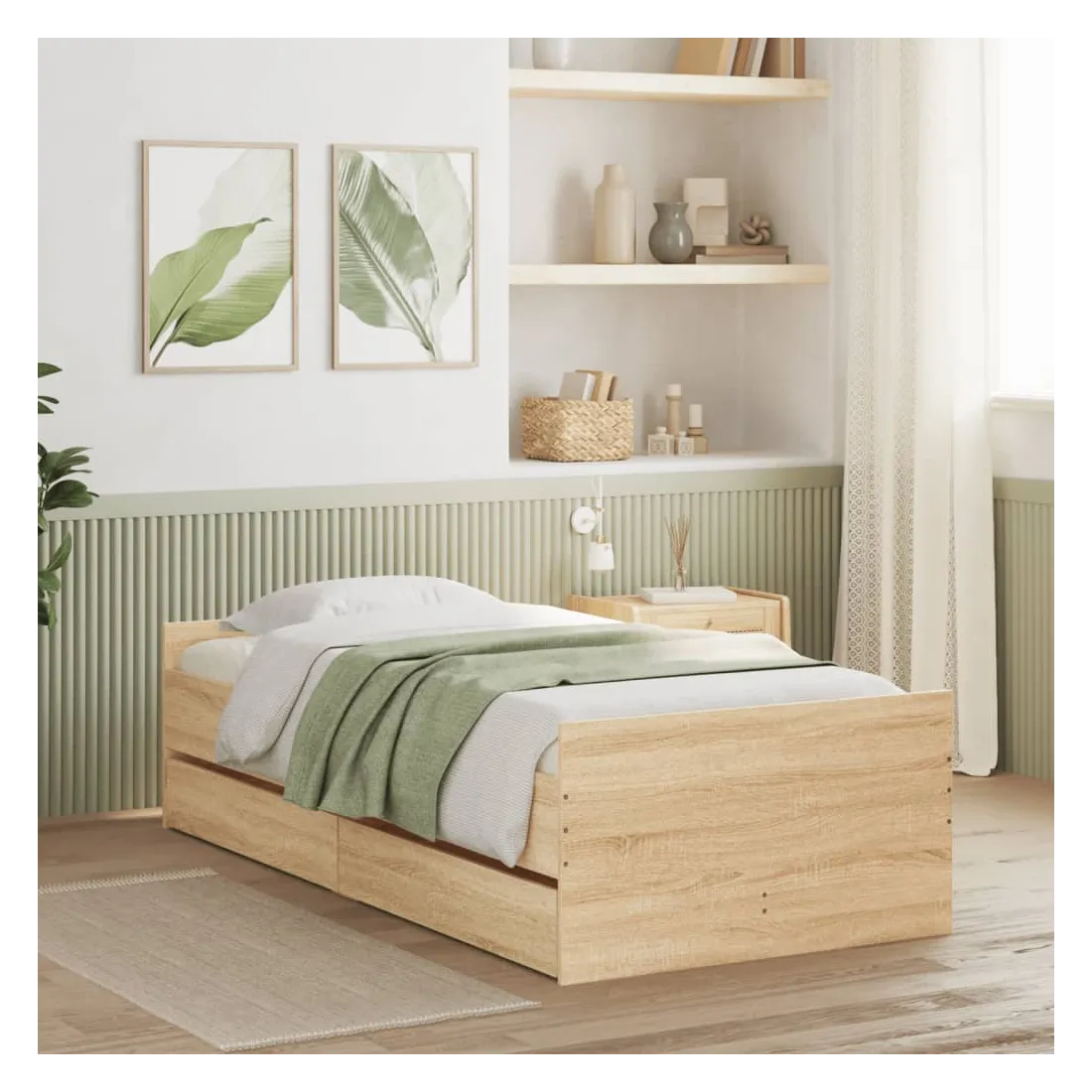 Ajoutez une touche moderne à votre chambre à coucher avec ce cadre de lit avec tiroirs ! Il apportera une touche pratique et décorative à votre espace de vie. Matériau durable : le cadre de lit est fabriquée en bois d'ingénierie. Le bois d'ingénierie est d'une qualité exceptionnelle avec une surface lisse et présente également de la résistance, de la stabilité et de la résistance à l'humidité.Lattes robustes : les lattes de contreplaqué assurent une bonne répartition du poids, garantissant que le matelas reste en place à chaque torsion de votre corps pendant le sommeil.Fonction de rangement : les tiroirs de lit inclus offrent suffisamment d'espace de rangement pour ranger vos articles essentiels, gardant votre pièce propre et bien rangée. Bon à savoir :Un matelas n'est pas inclus avec ce lit. Nous offrons une sélection variée de matelas. Vous pouvez consulter notre boutique pour trouver un matelas assorti.