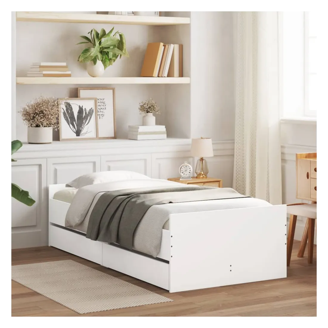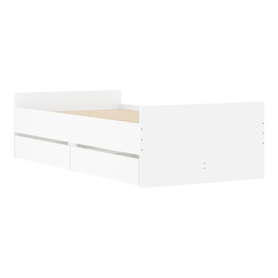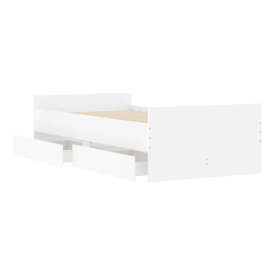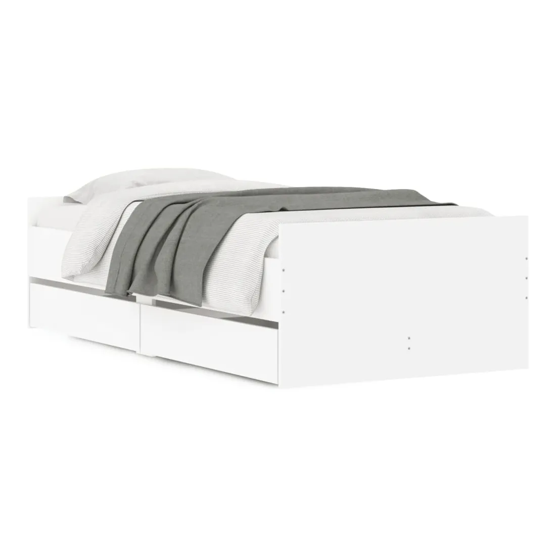 Ajoutez une touche moderne à votre chambre à coucher avec ce cadre de lit avec tiroirs ! Il apportera une touche pratique et décorative à votre espace de vie. Matériau durable : le cadre de lit est fabriquée en bois d'ingénierie. Le bois d'ingénierie est d'une qualité exceptionnelle avec une surface lisse et présente également de la résistance, de la stabilité et de la résistance à l'humidité.Lattes robustes : les lattes de contreplaqué assurent une bonne répartition du poids, garantissant que le matelas reste en place à chaque torsion de votre corps pendant le sommeil.Fonction de rangement : les tiroirs de lit inclus offrent suffisamment d'espace de rangement pour ranger vos articles essentiels, gardant votre pièce propre et bien rangée. Bon à savoir :Un matelas n'est pas inclus avec ce lit. Nous offrons une sélection variée de matelas. Vous pouvez consulter notre boutique pour trouver un matelas assorti.